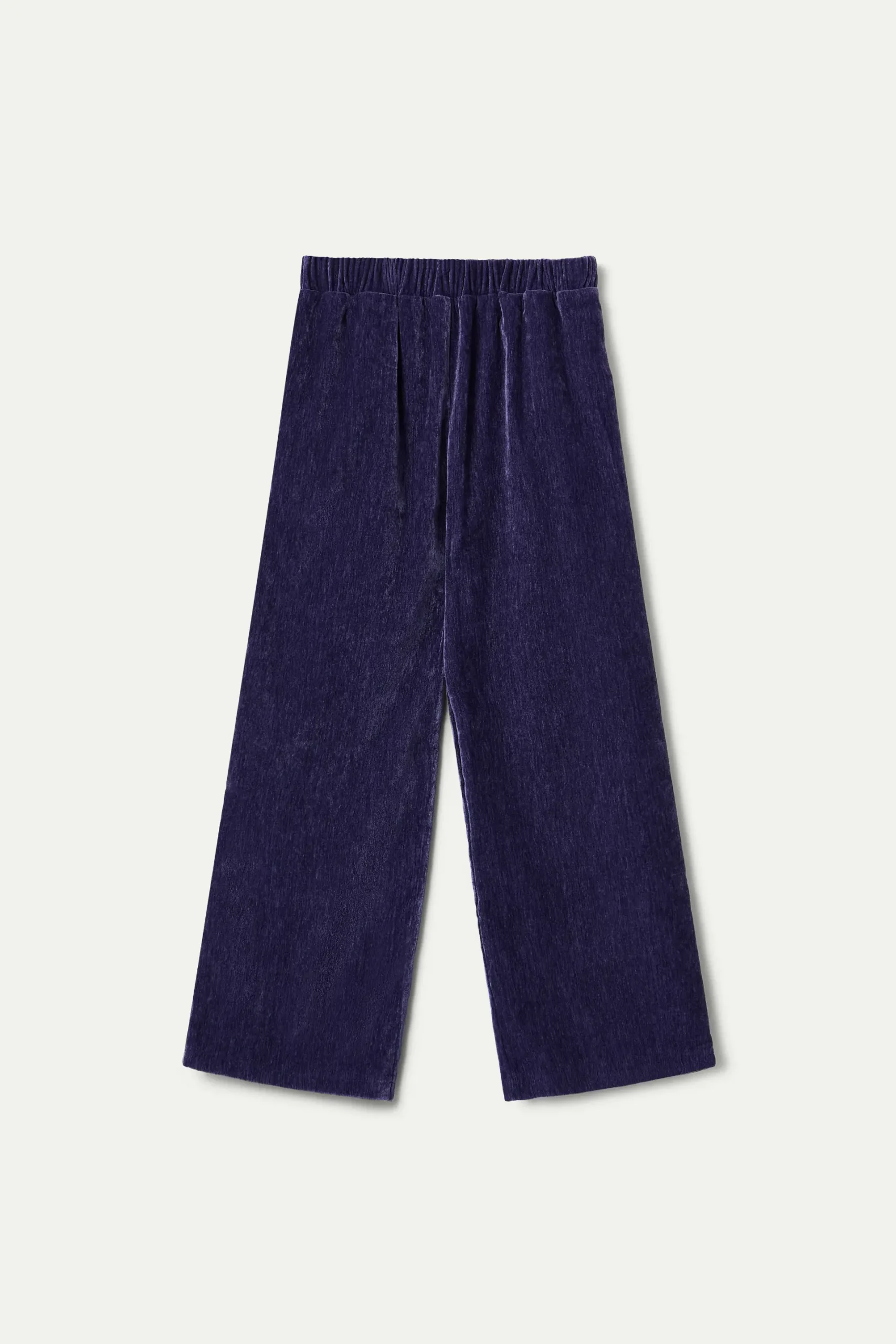 Pantalón de niña ancho en color azul marino con cintura elástica, bolsillos laterales. Efecto aterciopelado, calentito y cómodo.