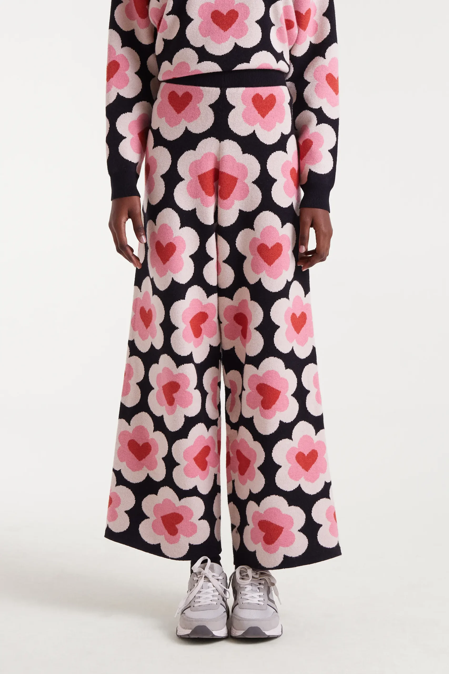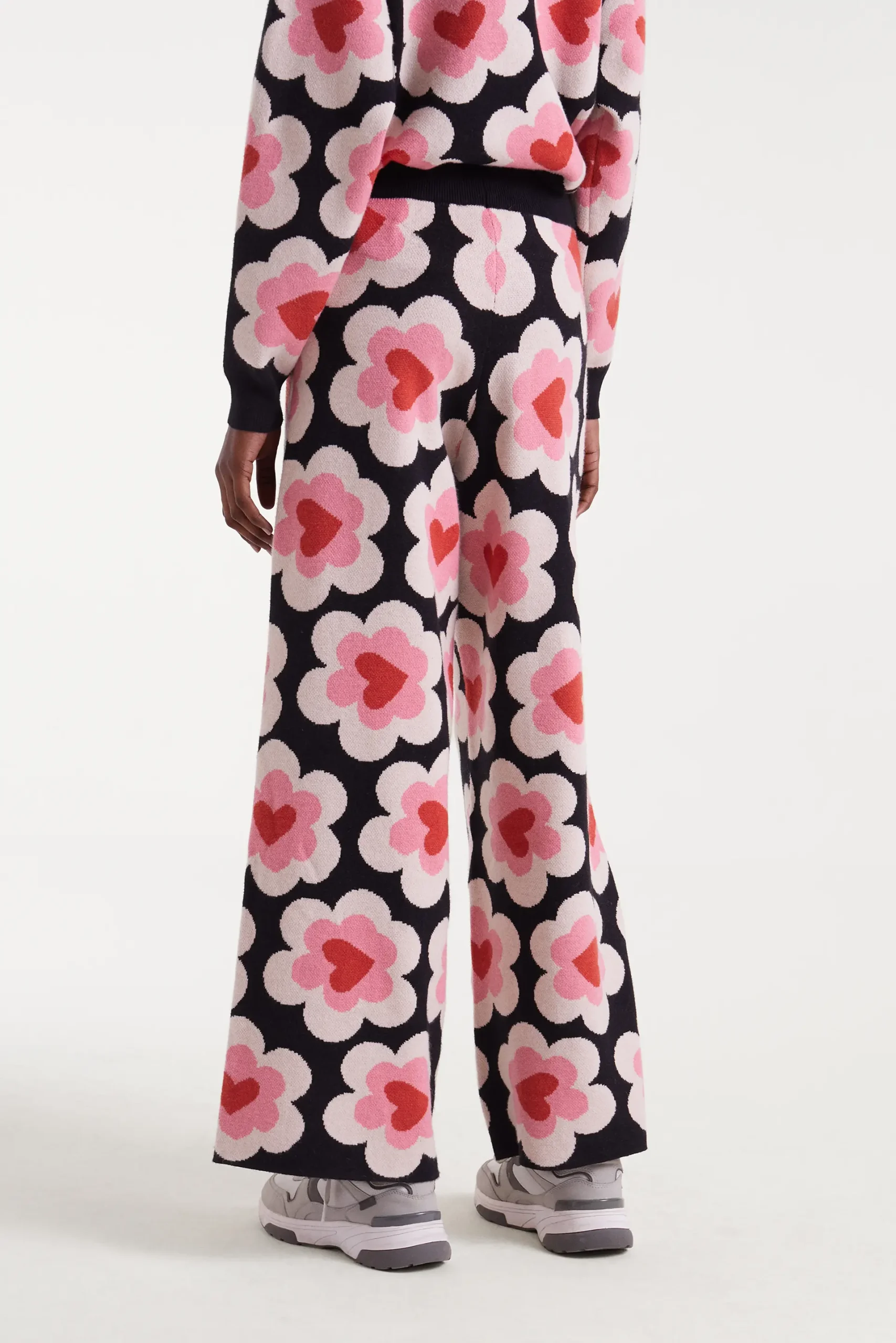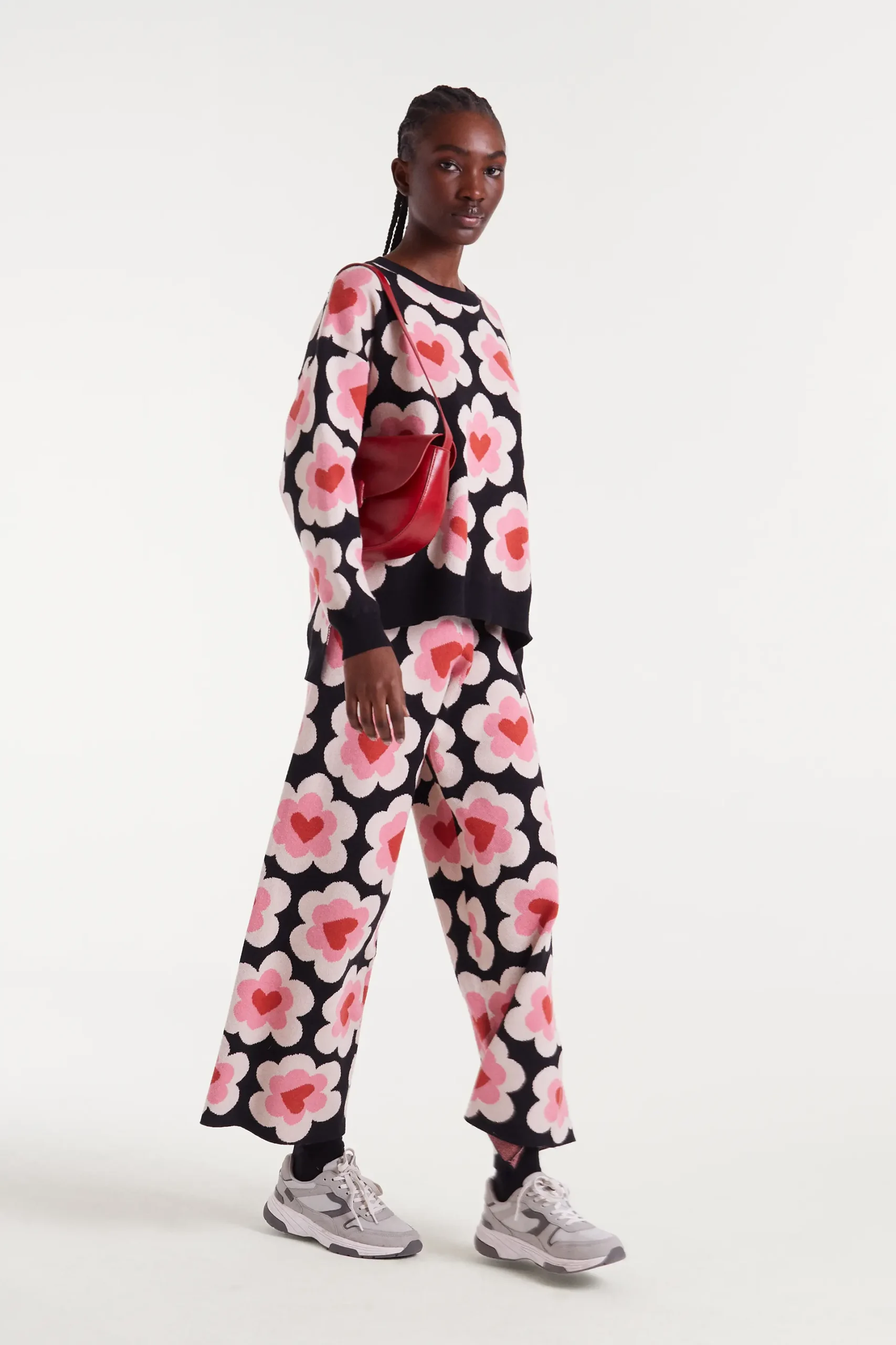 Pantalón de punto jacquard con estampado SweetHeart. Con cintura elástica de tiro medio y pernera recta. La modelo mide 178 cm y lleva la talla S.