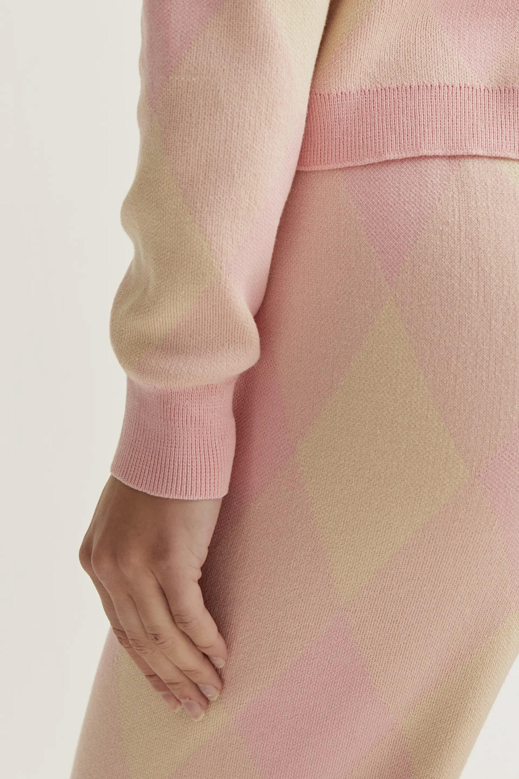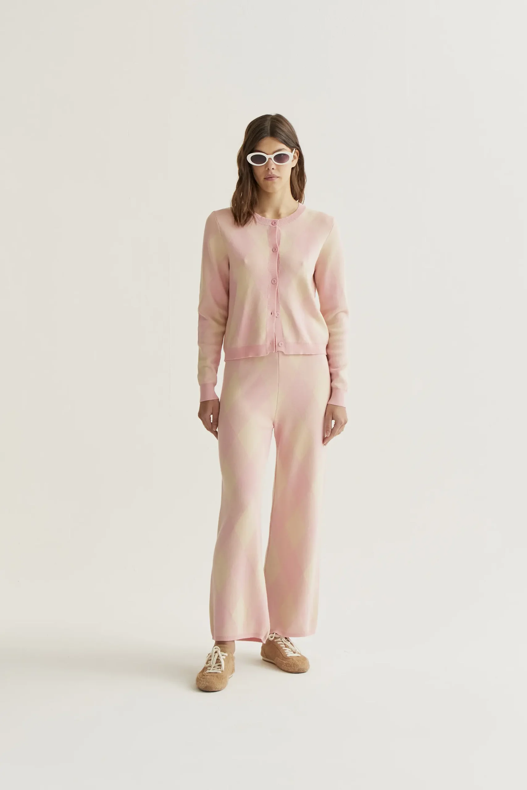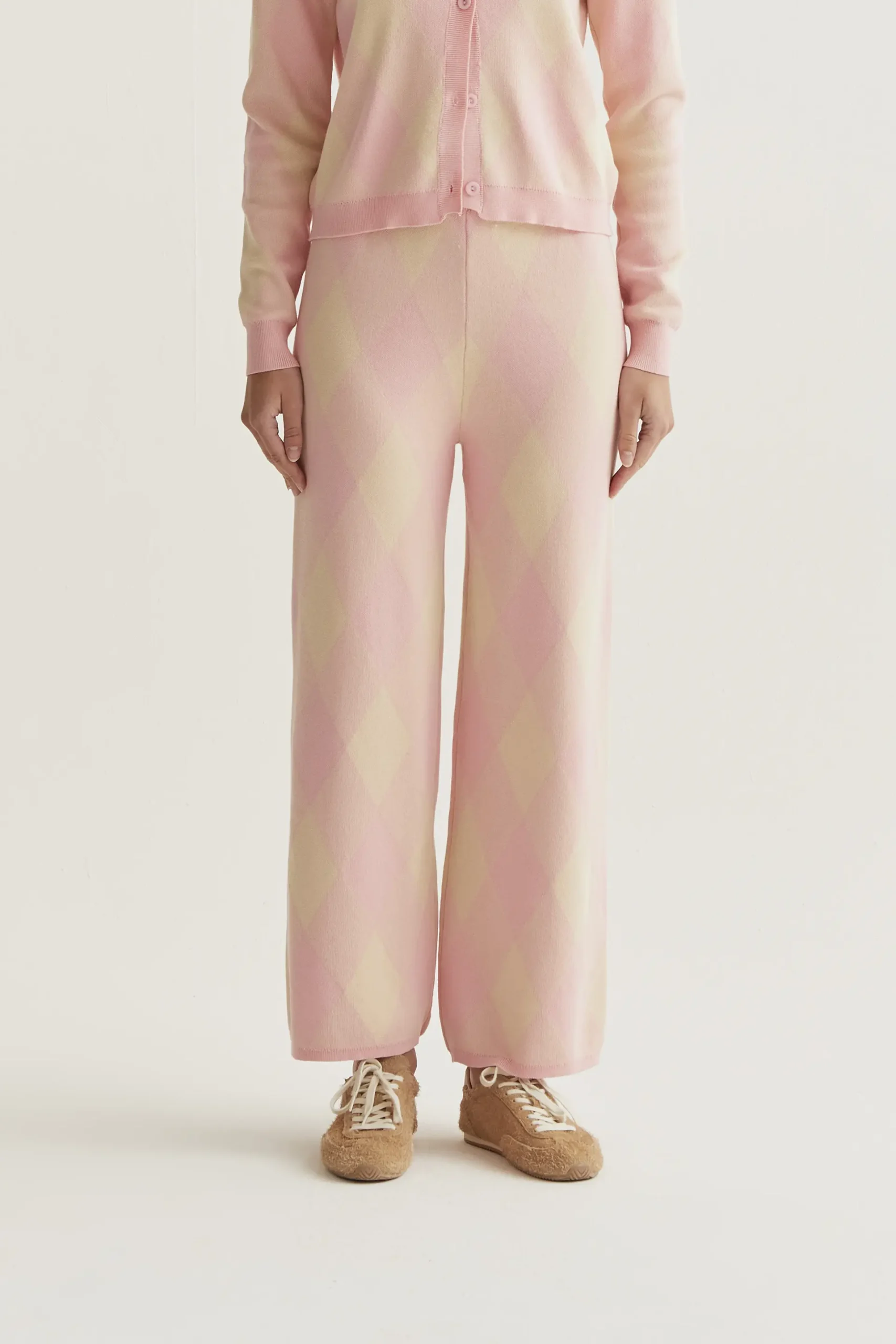 Pantalón punto con estampado rombos rosa