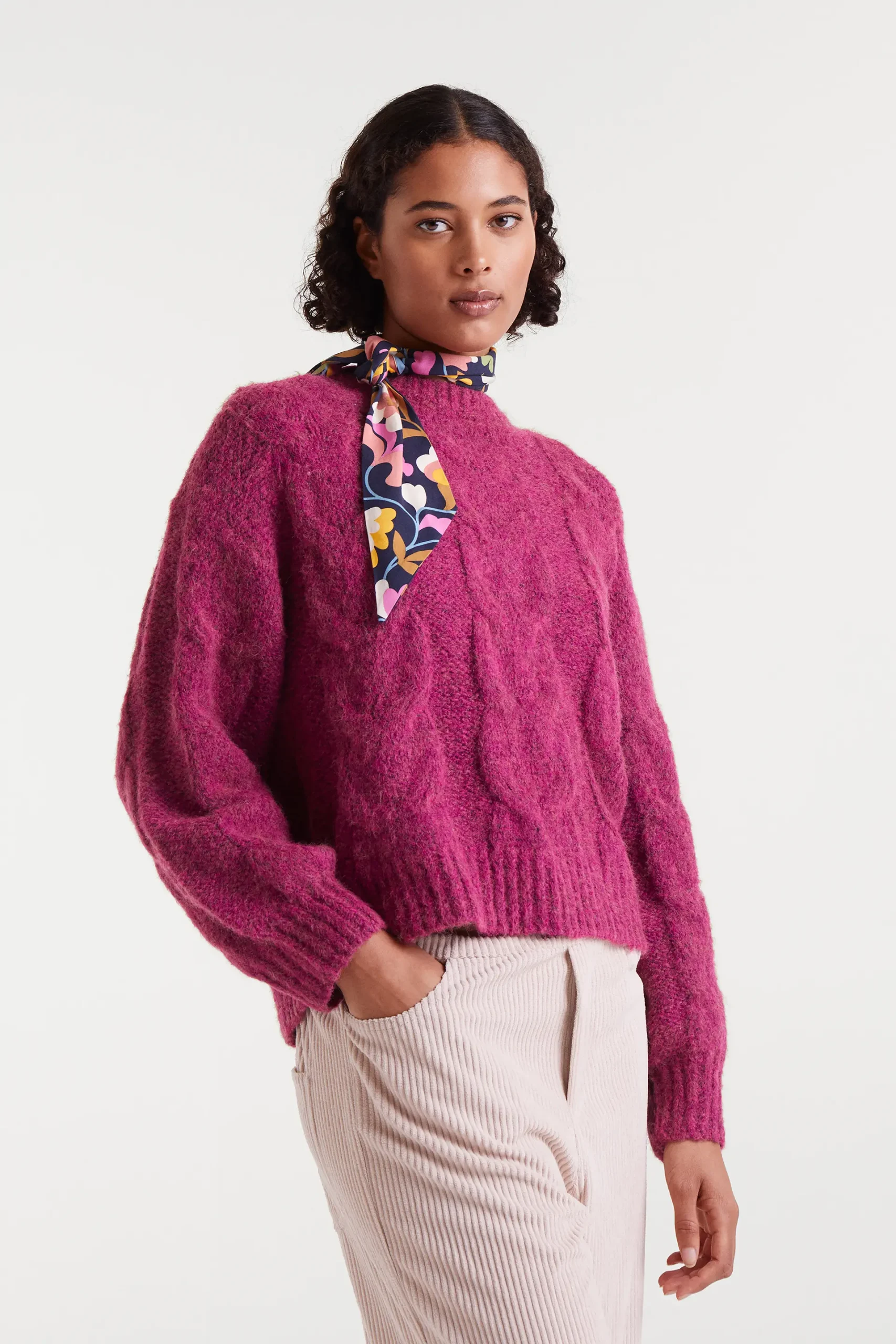 Pañuelo de tejido crepé ligero con estampado Baboushka. Talla única.