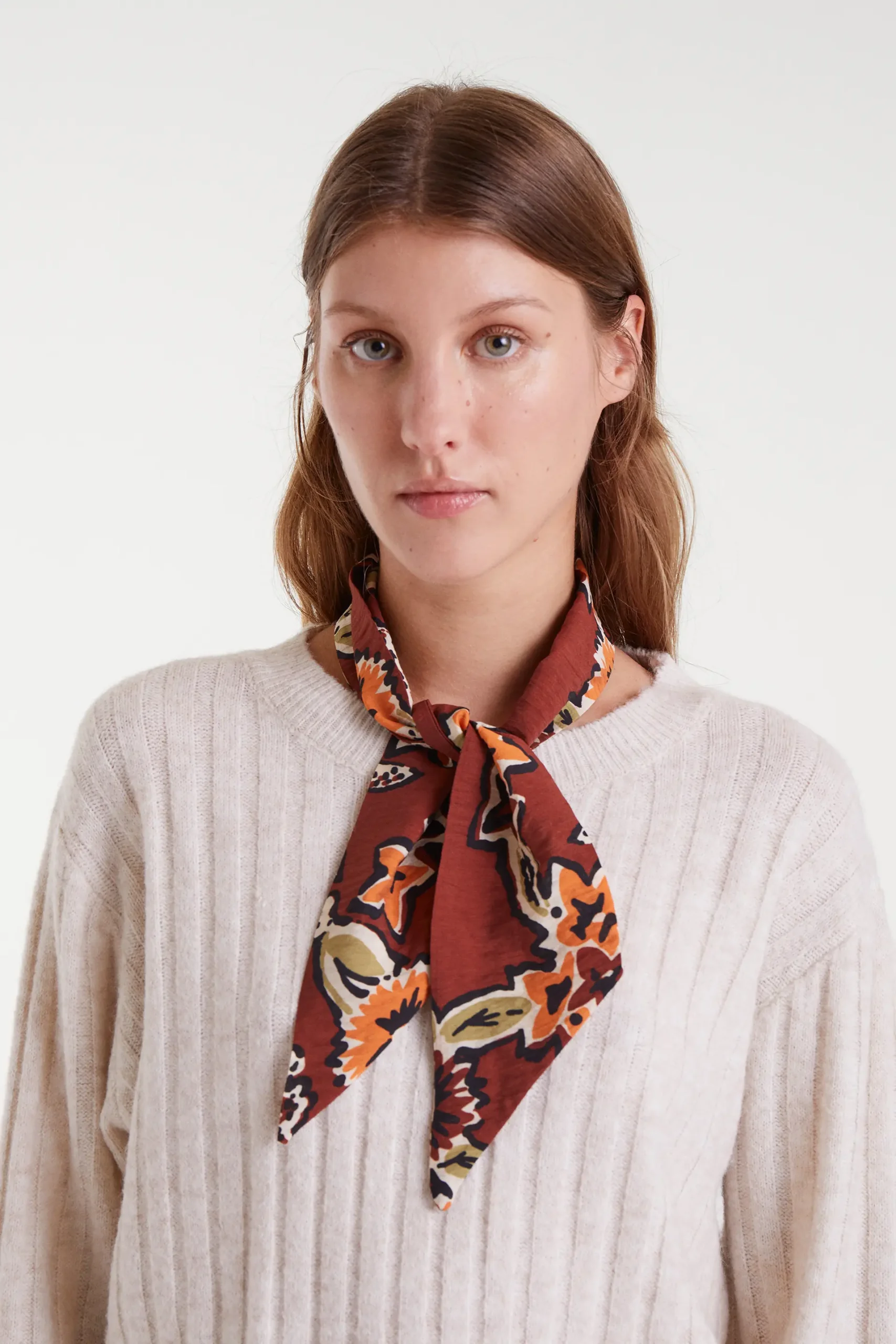 Pañuelo de tejido crepé ligero con estampado Daisy. Talla única.