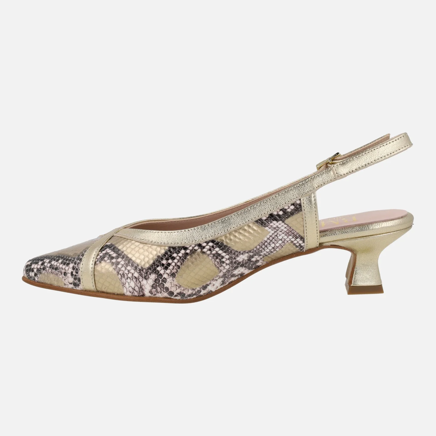 Salones destalonados en print serpiente y metal oro
