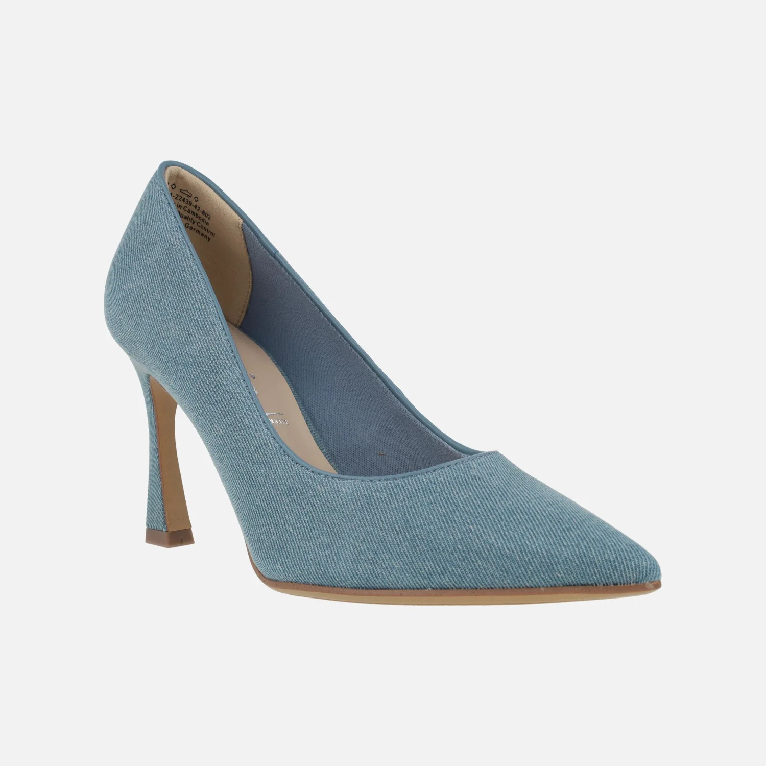 Zapatos corte salón para mujer de la marca Tamaris, modelo 1-22439-42 802 Denim. Salones de horma afilada, elaboradas en tejido vaquero, tan en tendencia esta nueva temporada. Interior mixto de tejido y sintéticos. Tacones finos, de 9 cms de altura.