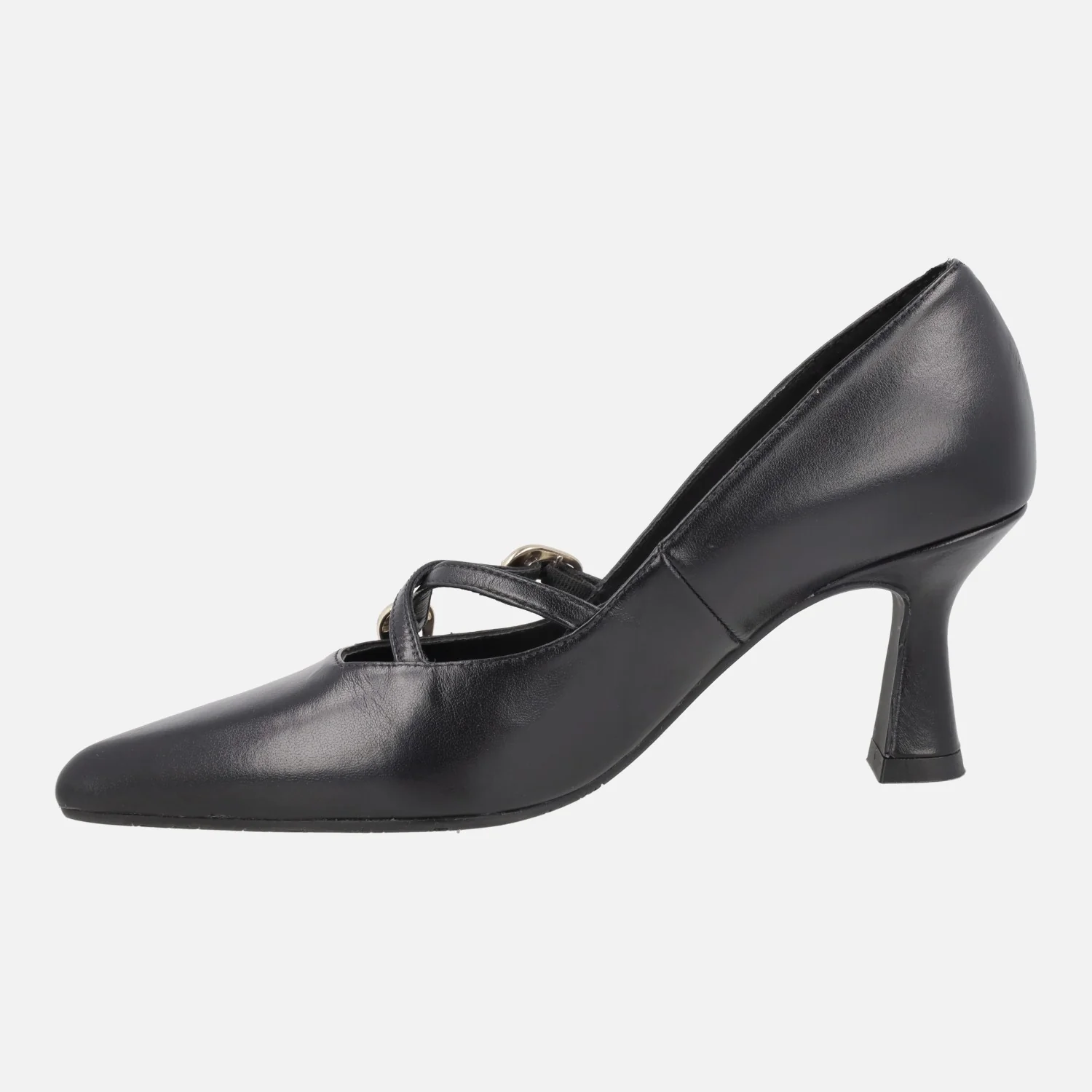 Salones negros de piel Gumer con tiras cruzadas y hebillas