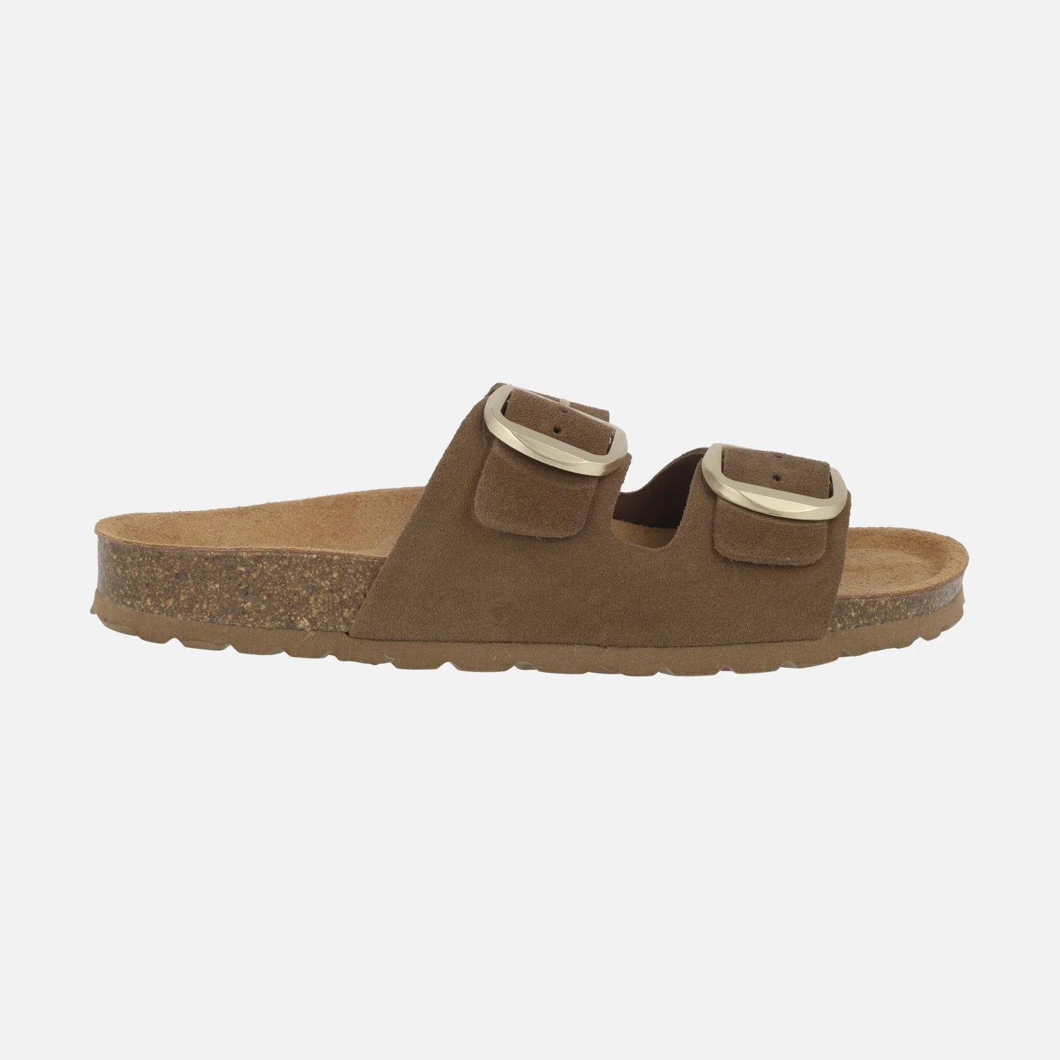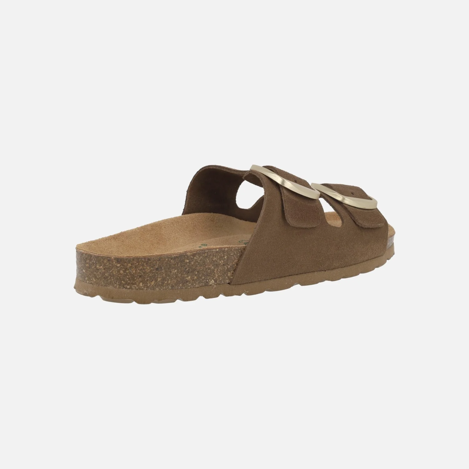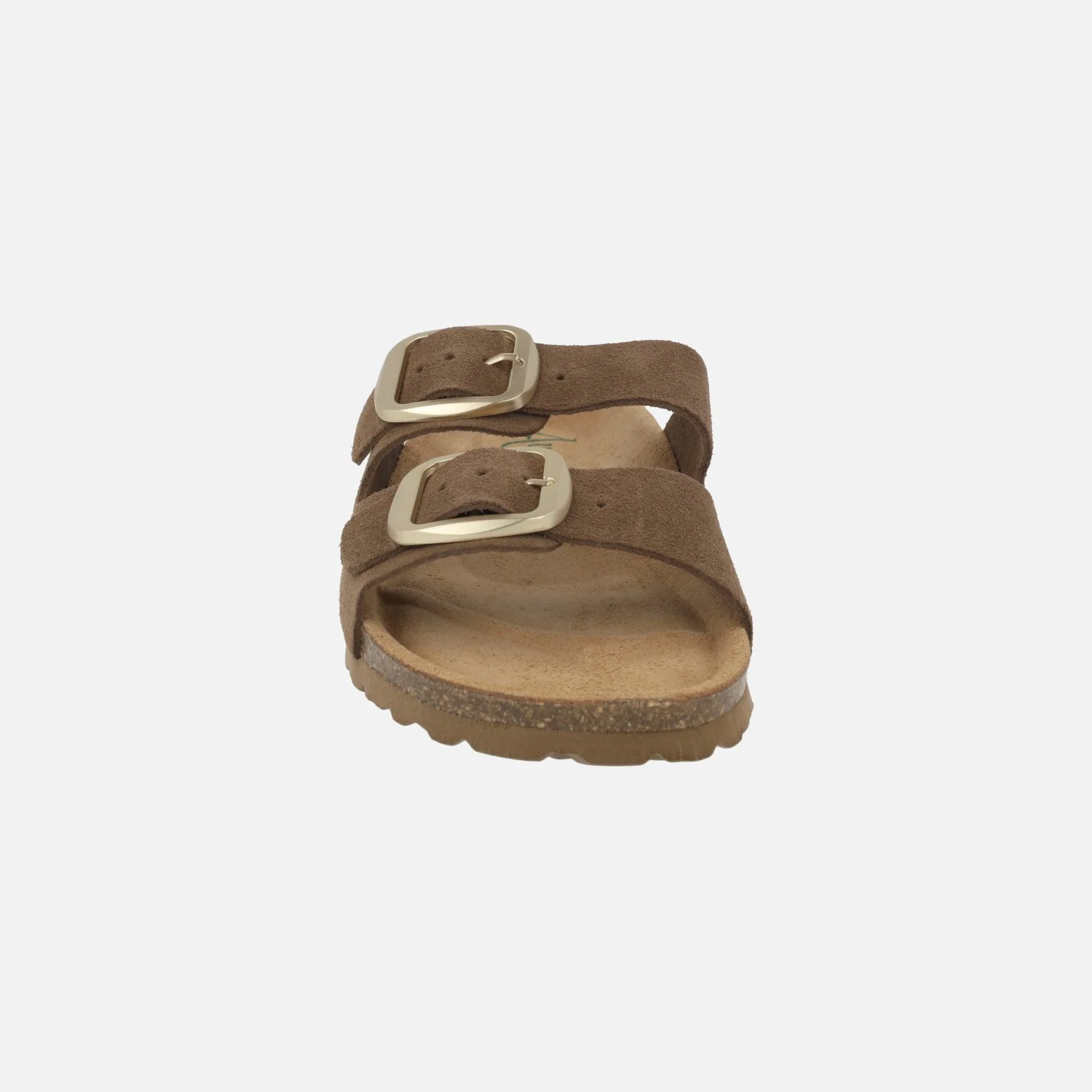 Sandalias para mujer de la marca Autenti modelo 16318 Marron. Sandalias estilo bio elaboradas en piel serraje marrón. Hebillas doradas ajustables. Interiores forrados de piel. Suela sintética, entresuela de corcho. Altura aproximada 2,5 cm.