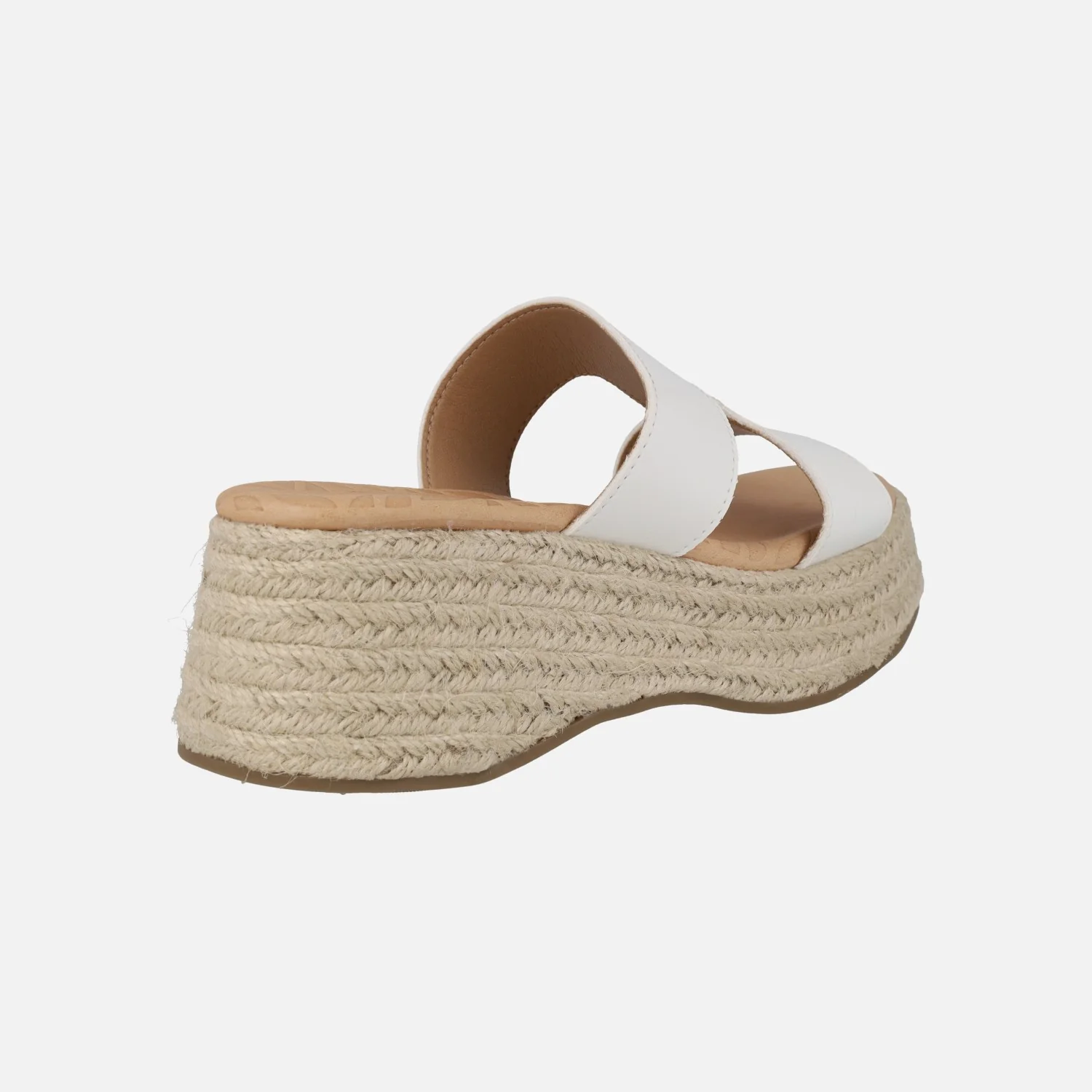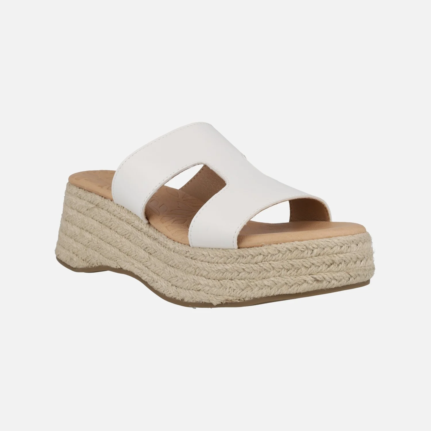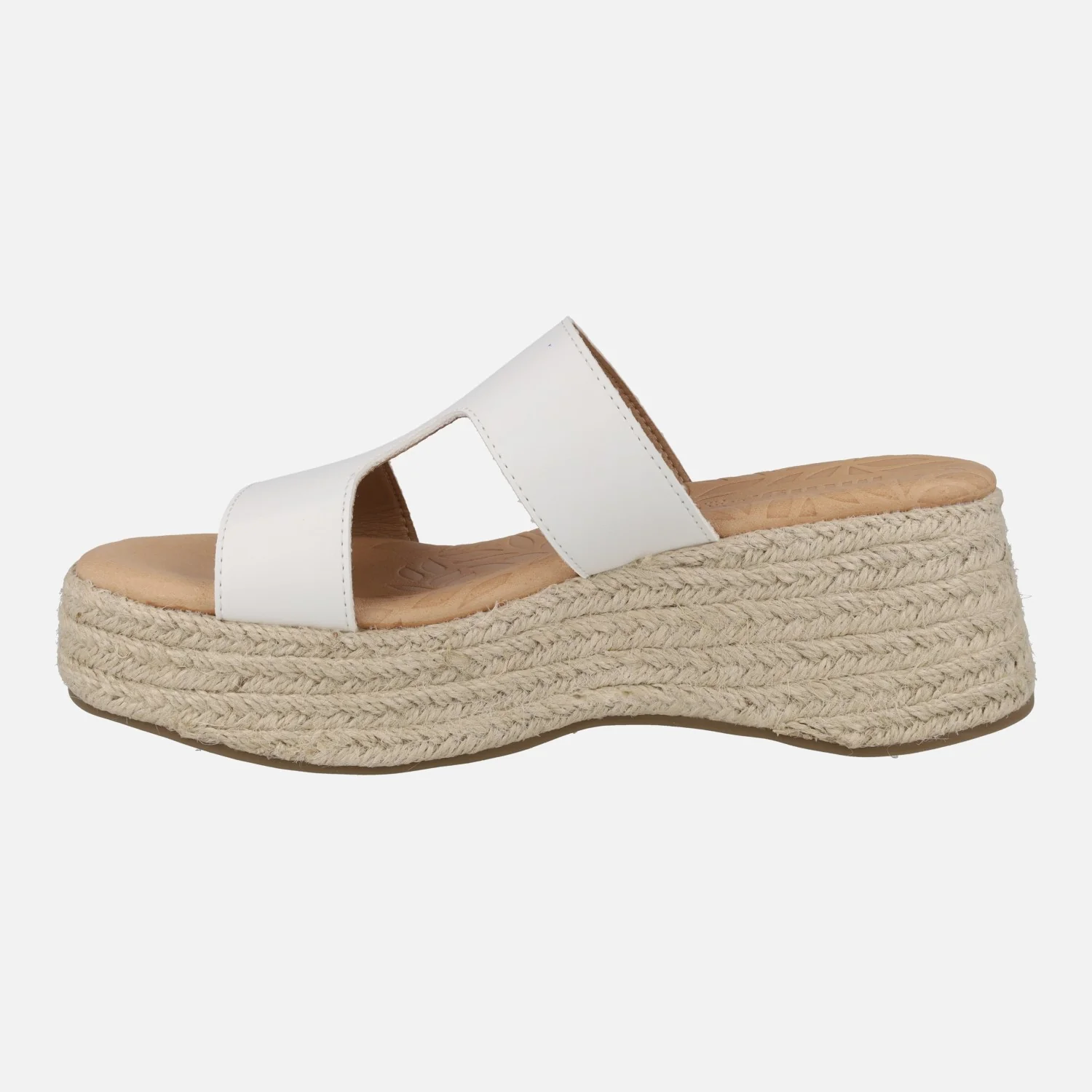 Sandalias para mujer de la marca Mustang modelo 51649 World Blanco. Sandalias elaboradas en materiales sintéticos, con plataforma de yute color natural. Planta de piel, forro sintético. Altura trasera 6 cms (4 cms parte delantera).