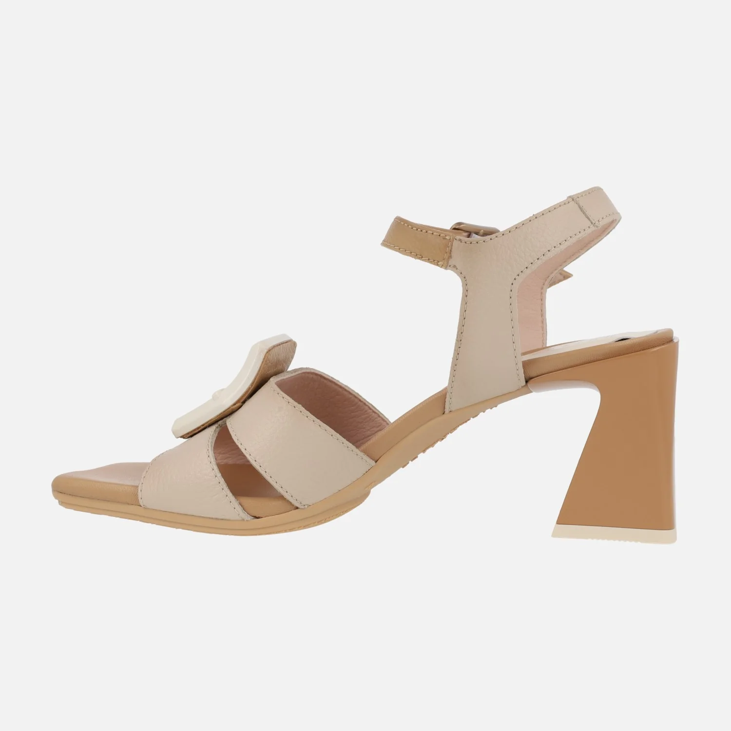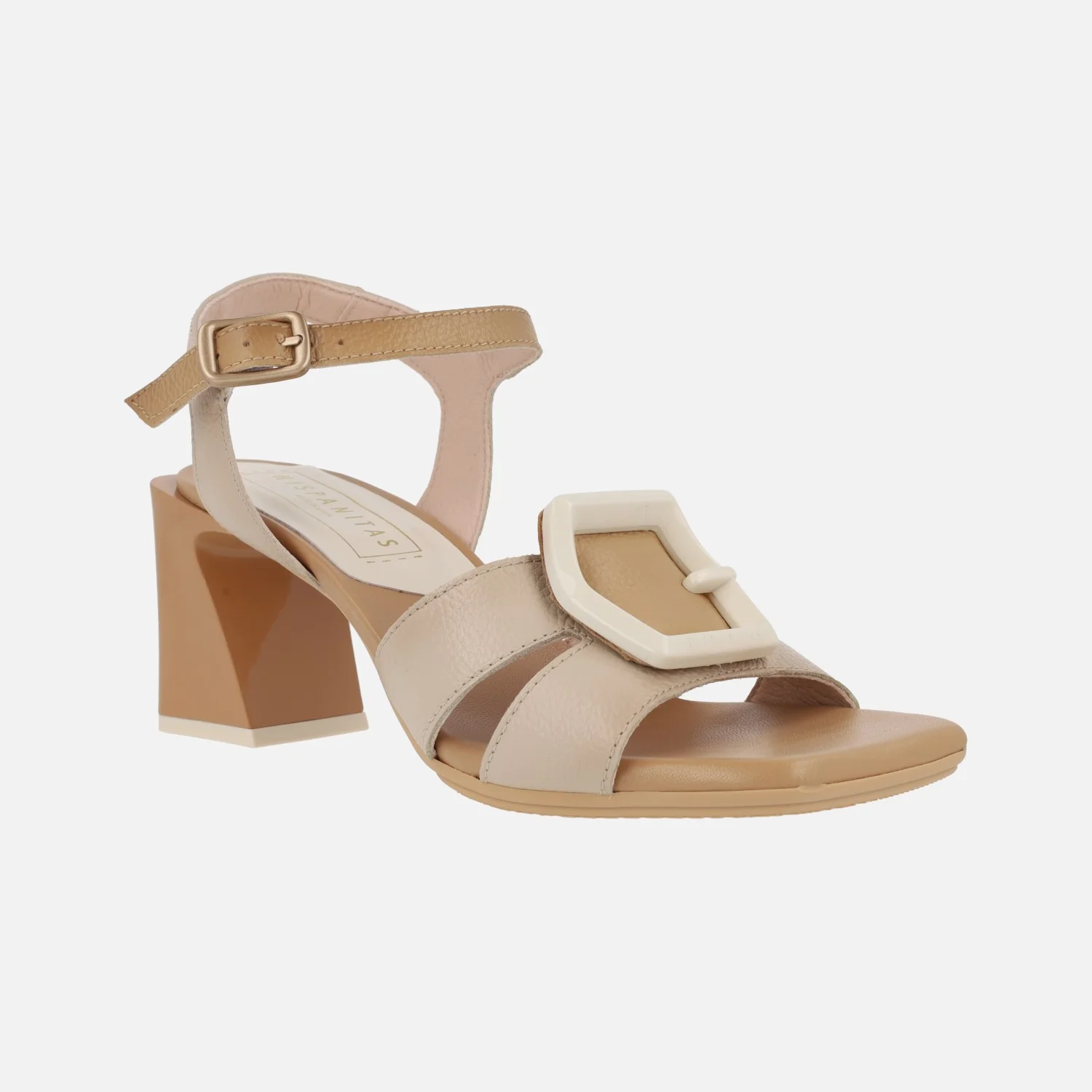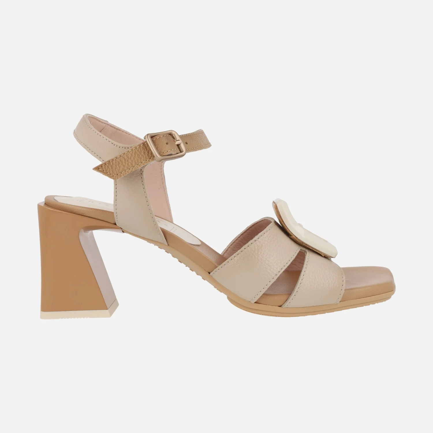 Preciosas y elegantes sandalias para mujer de la marca Hispanitas, modelo chv243272, disponibles en tres combinaciones: fucsia/naranja/rojo coral , camel/beige y azul marino/celeste. Sandalias de tacón con exteriores en piel, tira al tobillo con cierre de hebilla. Adorno de hebilla en pasta en el empeine. Interior mixto de piel y tejido. Tacones de 7 cms de altura.