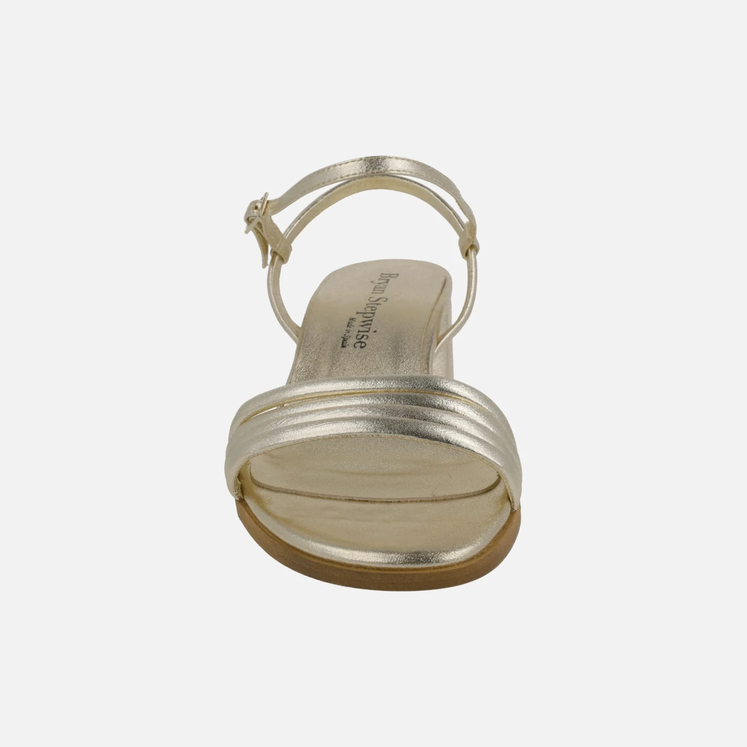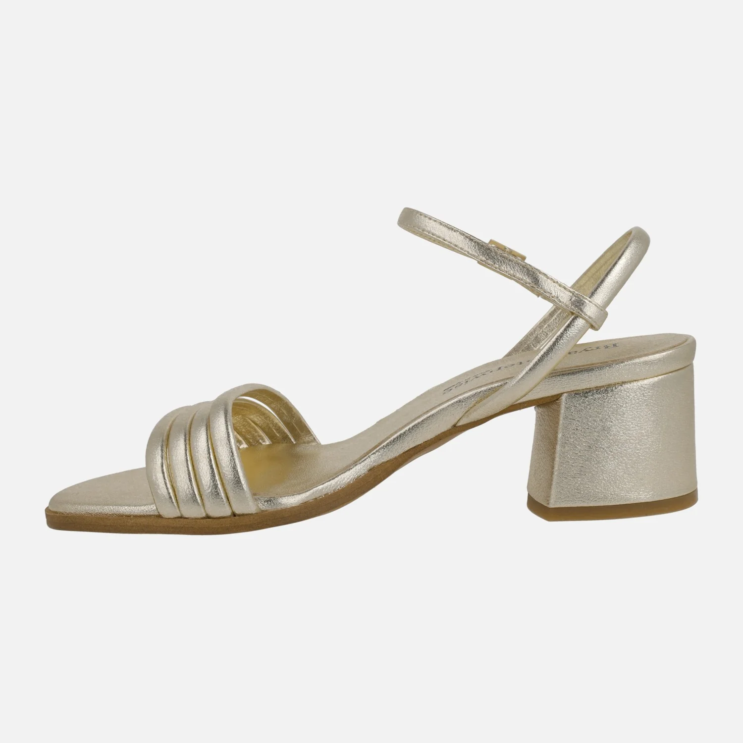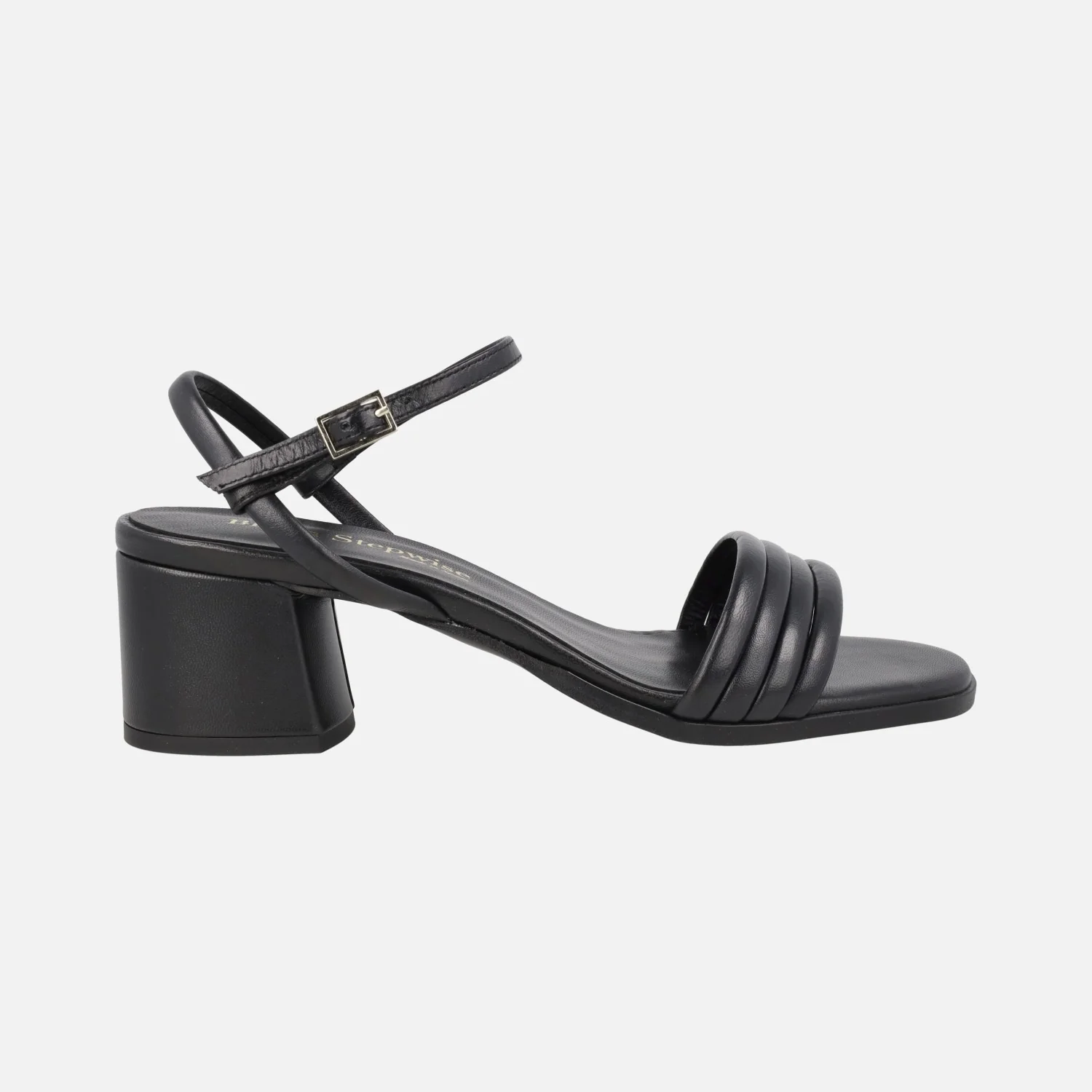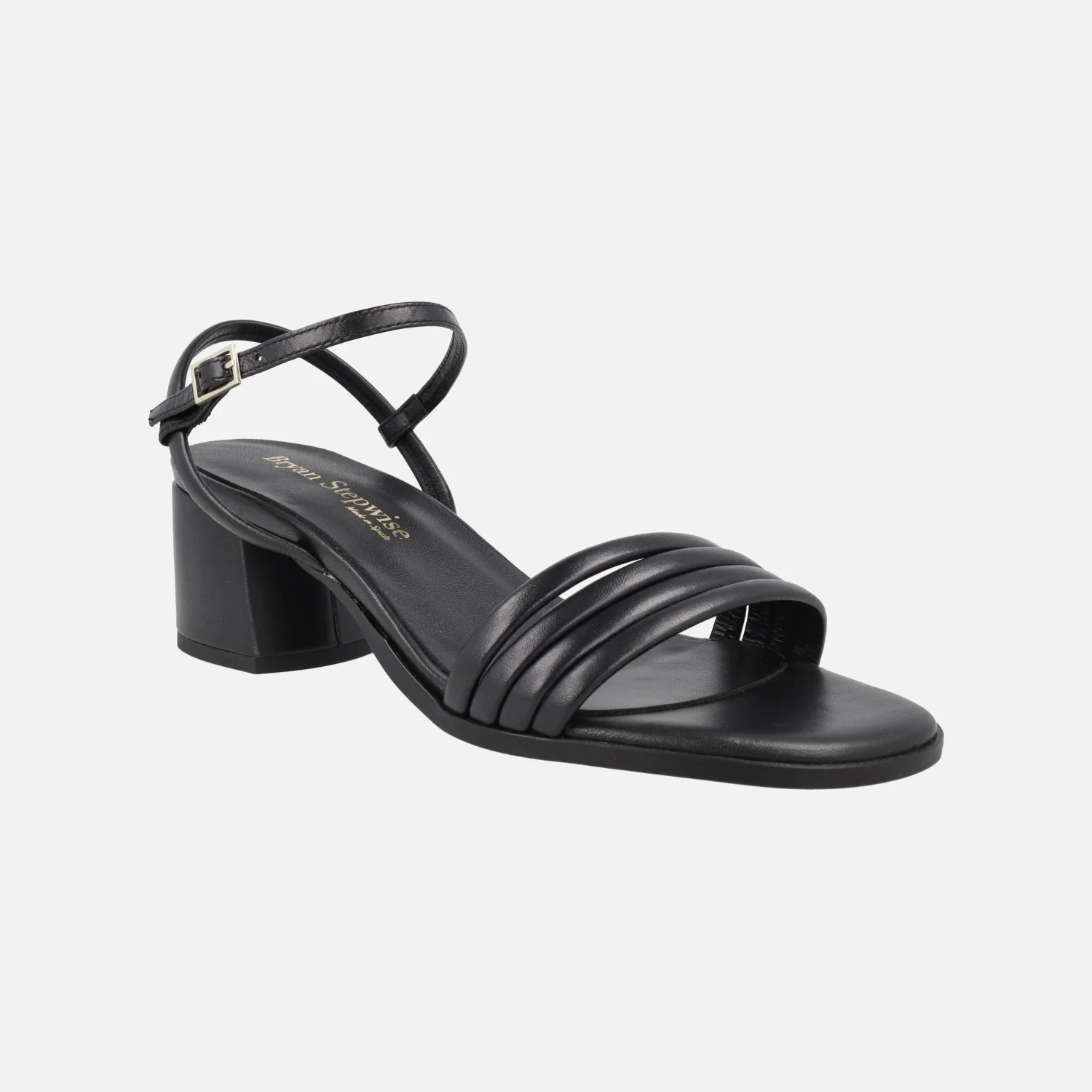 Sandalias de tacón para mujer de la marca Bryan Stepwise, modelo 2612 en piel DESERT (oro claro) y en piel negra. Sandalias con cuatro tiras delanteras de piel, una tira al talón y otra al empeine con cierre de hebilla. Forro y planta de piel. Tacones anchos, de 6 cms de altura. Made in Spain.