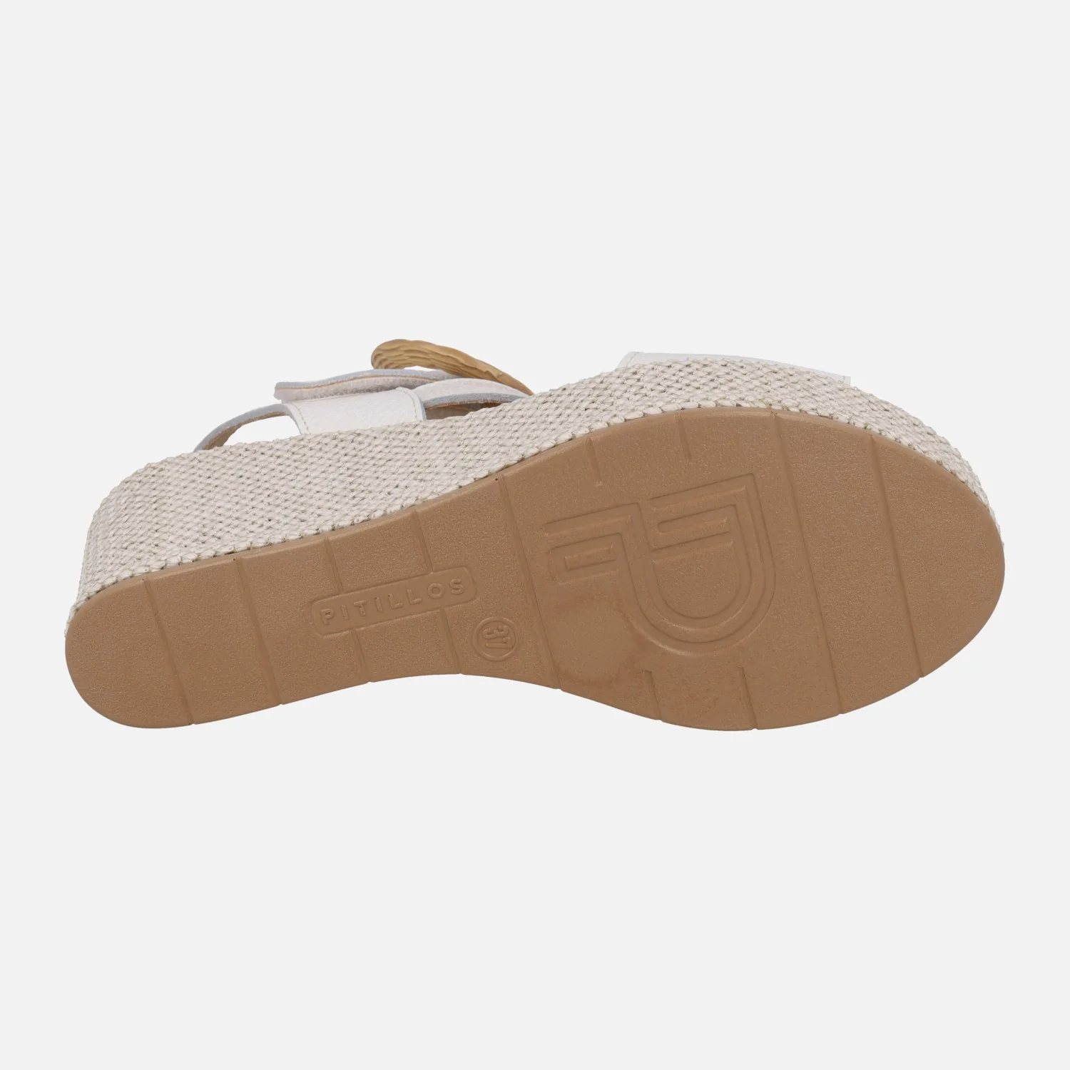 Sandalias de piel para mujer marca Pitillos modelo 11271 Cuero. Sandalias de cuña alta, elaboradas en piel con cierre de velcro, la hebilla circular es un adorno. Interior textil con planta de piel. Cuña de 7 cm de altura trasera, forrada de rafia (3,5 cm plataforma delantera).