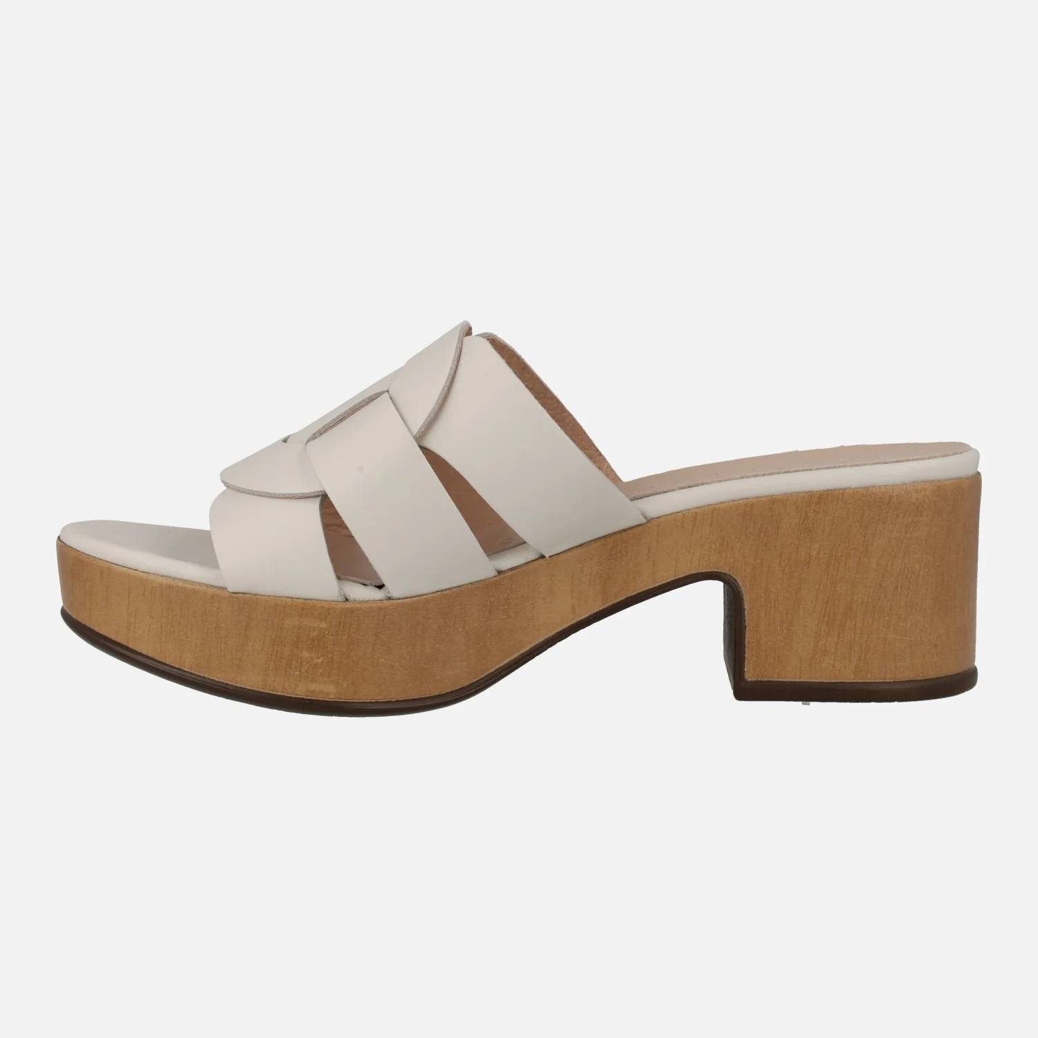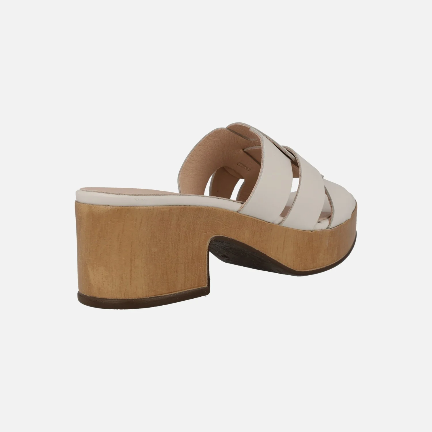 Sandalias de piel Wonders Santander D-8840 P Iseo Off. Sandalias de tiras elaboradas en piel color blanco roto, con forro y planta de piel. Tacones y plataforma de poliuretano, muy ligero, con acabado imitando madera. Tacones de aproximadamente 6 cms de altura (3 cms plataforma delantera). Made in Spain.