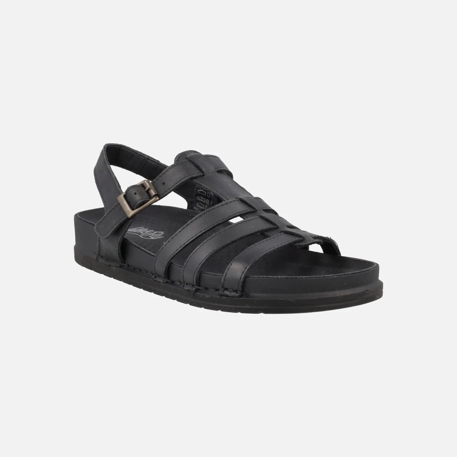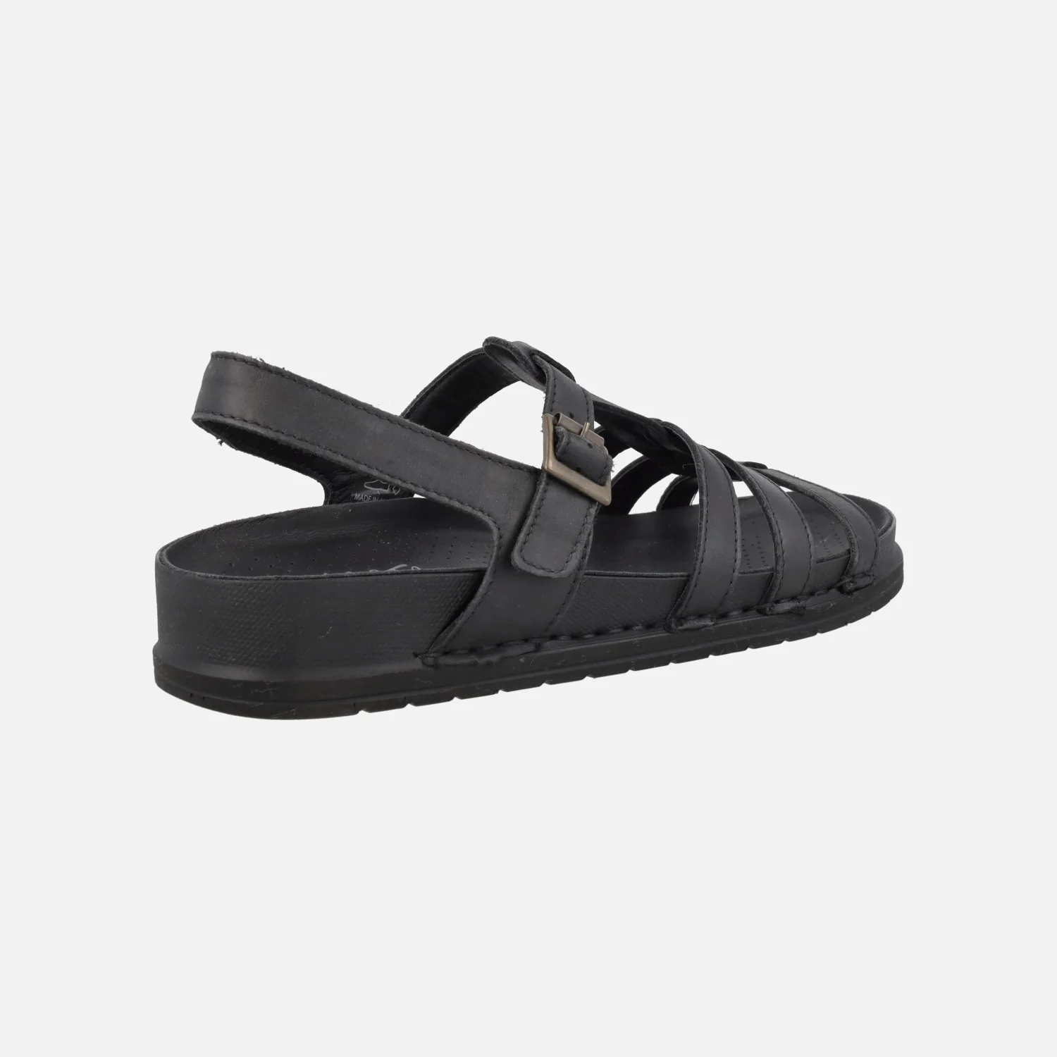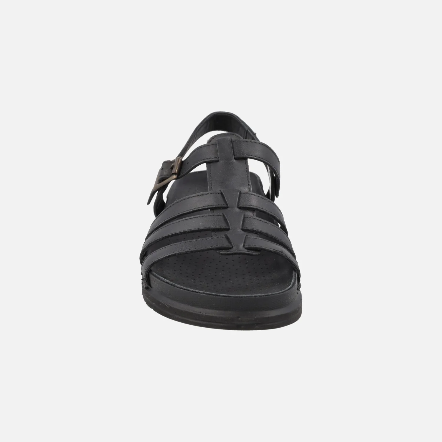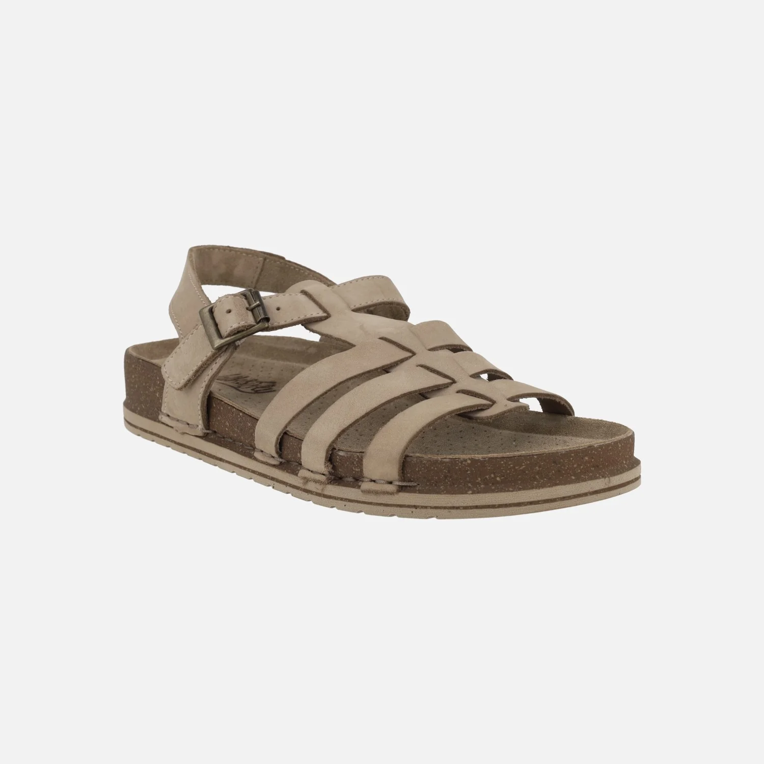 Sandalias de piel estilo cangrejeras de la marca Walk & Fly, modelo 7447 500, disponibles en piel negra y en nobuck canapa (beige taupe). Sandalias con cierre de hebilla ajustable al tobillo. Interiores forrados de piel. Piso de goma, con una altura trasera de 3 cm, 1,5 cm en la parte delantera. Planta BIO.