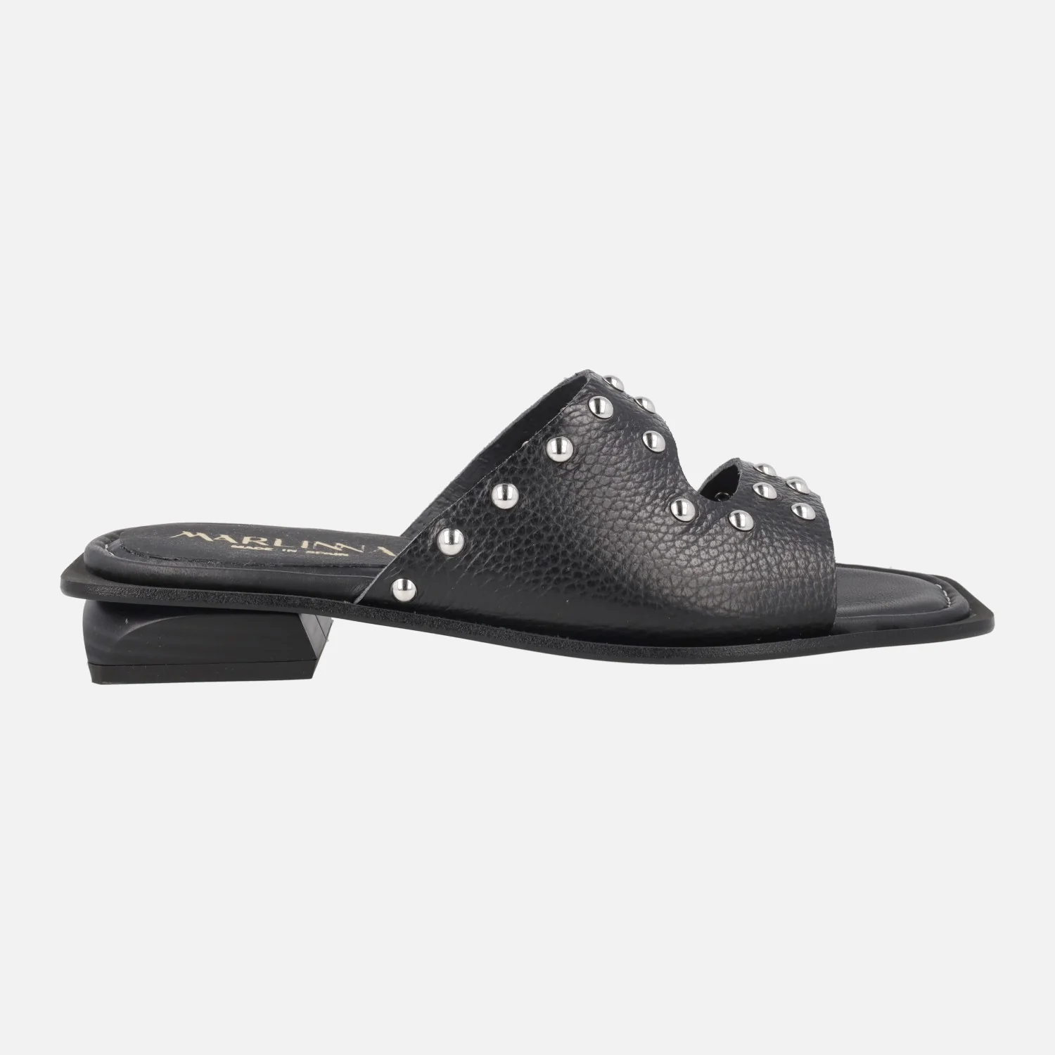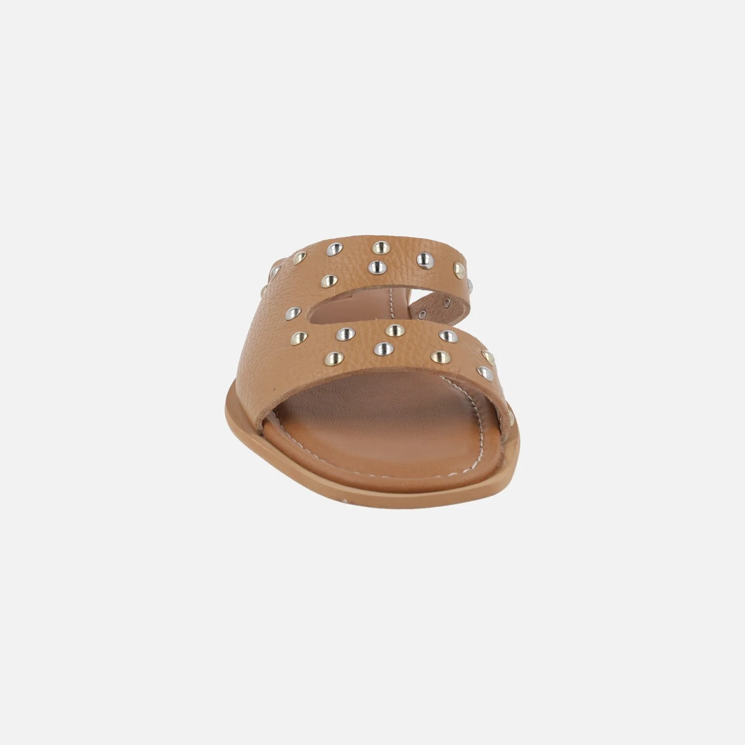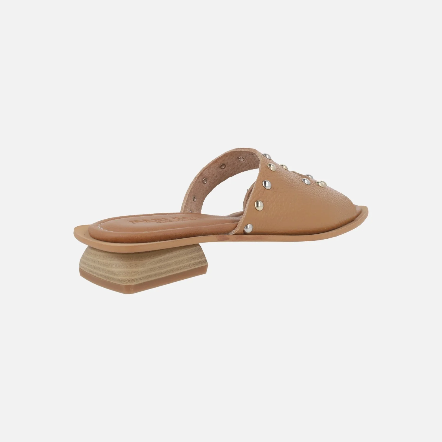 Elegantes sandalias de piel para mujer de la marca Lince, modelo 55151, disponibles en camel y en negro. Sandalias de piel grabada, con detalle de tachas metálicas. Interiores forrados de piel. Suela sintética con tacones bajos, de 2 cm de altura. Made in Spain.