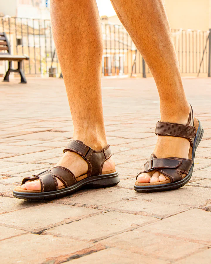 Sandalias para hombre de la marca Panama jack modelo Sanders Basics, disponibles en C4 Napa grass cuero y C1 napa grass marrón. Sandalias de piel con forro interior de tejido lycra. Cierre ajustable con velcros. Plantillas anatómicas. Piso de poliuretano, muy ligero. Made in Spain.