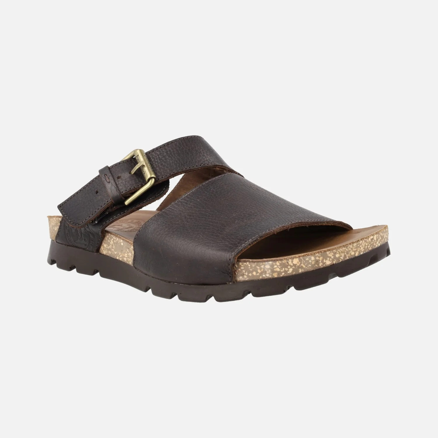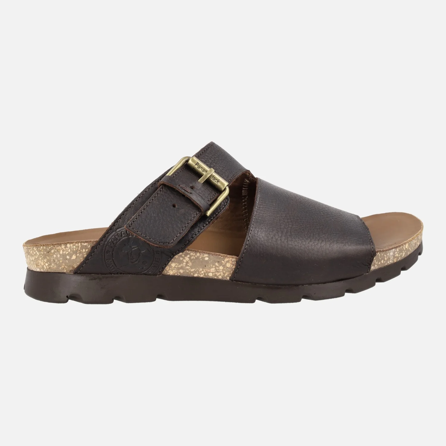 Sandalias para hombre Panama jack Saturno, disponibles en c5 napa grass marron y c6 napa grass negro. Sandalias elaboradas en piel engrasada, con detalle de hebilla. Forro y planta de piel. Entresuela de corcho. Piso de poliuretano, muy ligero y resistente. Made in Spain.