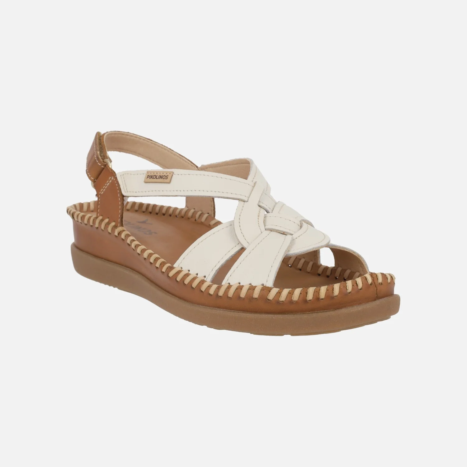Preciosas sandalias para mujer de la marca Pikolinos, modelo Cadaques W8K-1839C2 Nata. Sandalias elaboradas en piel combinando color nata (hielo) y cuero. Tira al talón con cierre ajustable de velcro. Interiores en piel y tejido. Cuña de aproximadamente 4 cm de altura en la parte trasera (2,5 cm parte delantera).