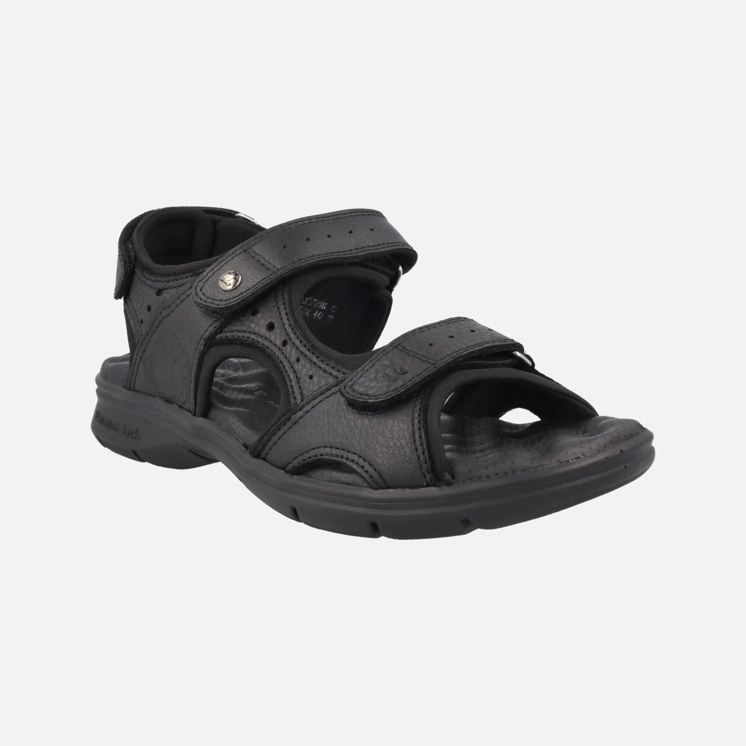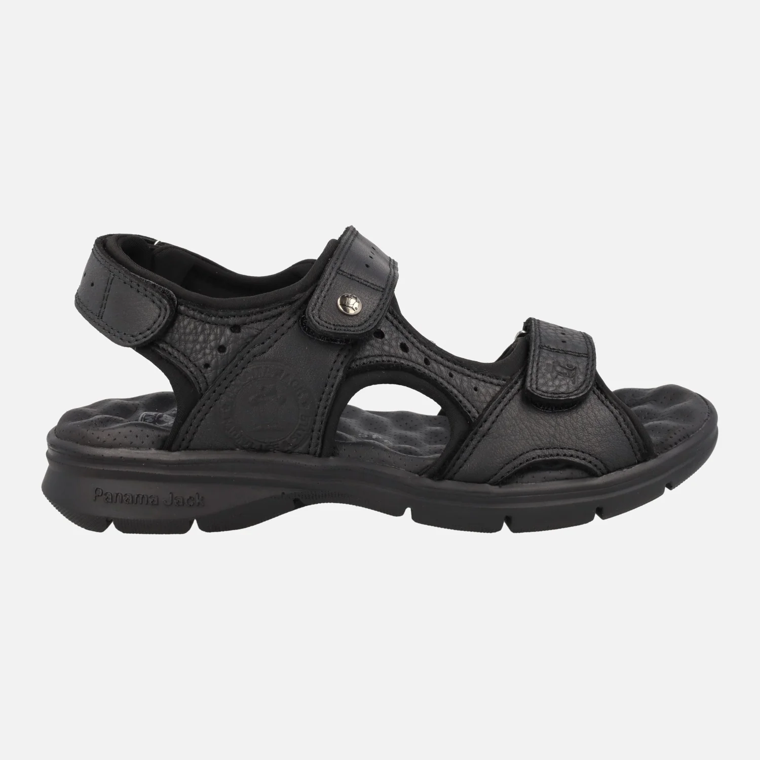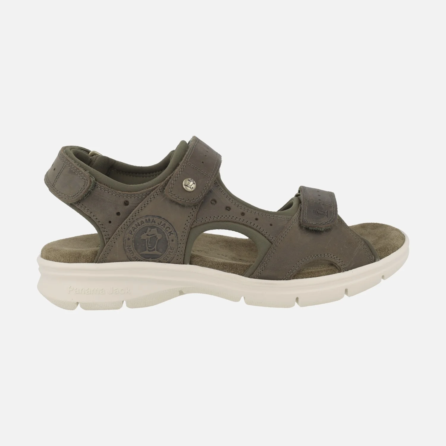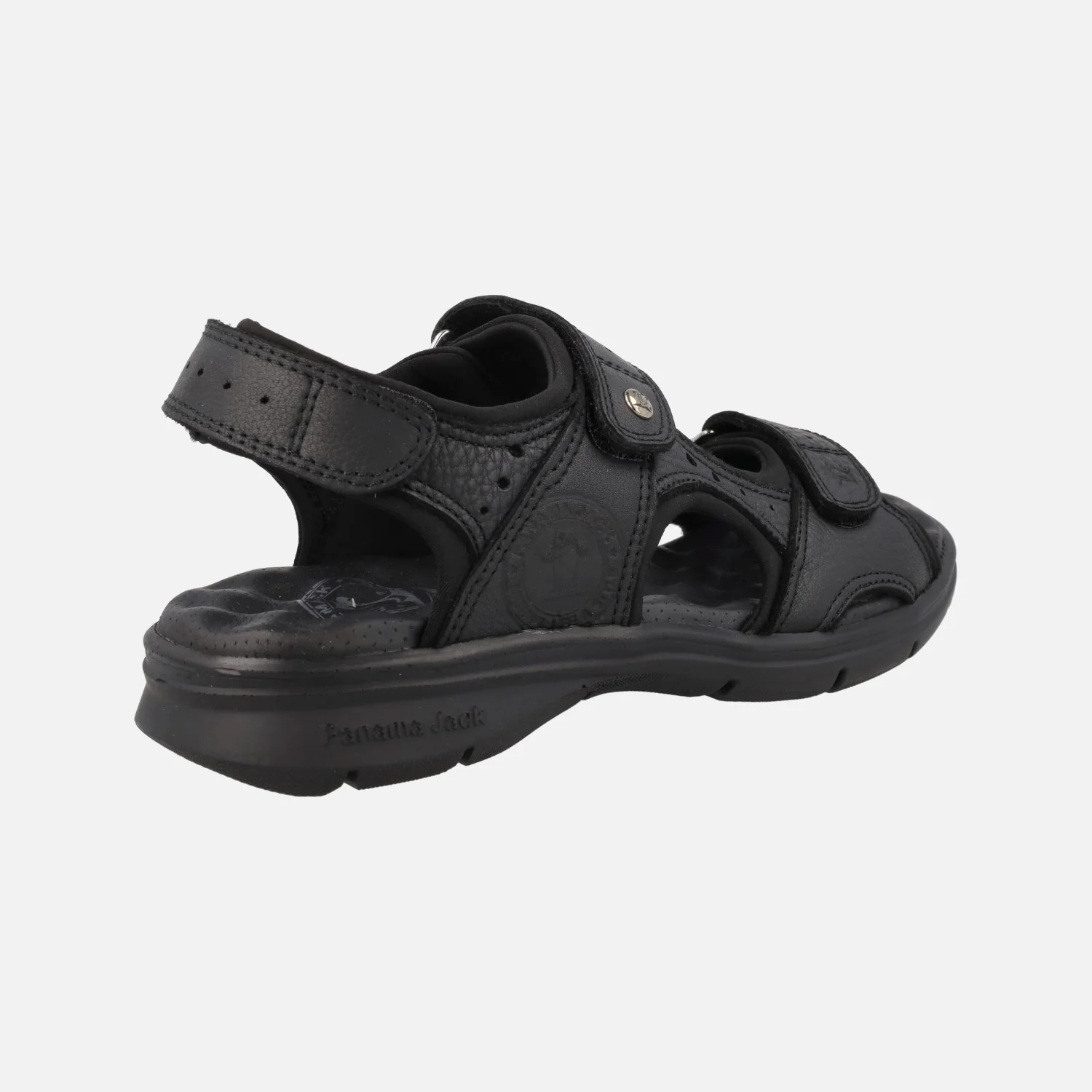 Sandalias de piel para hombre de la marca Panama jack modelo Salton, disponibles c36 negro y c39 kaki. Sandalias de piel con cierre de velcro ajustable en tiras delanteras y trasera. Forro interior en tejido lycra. Plantillas anatómicas. Suela de poliuretano, muy ligera. Made in Spain.