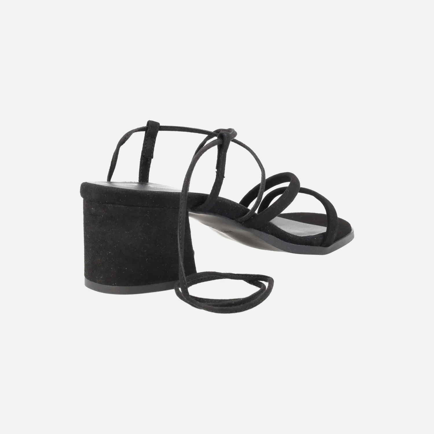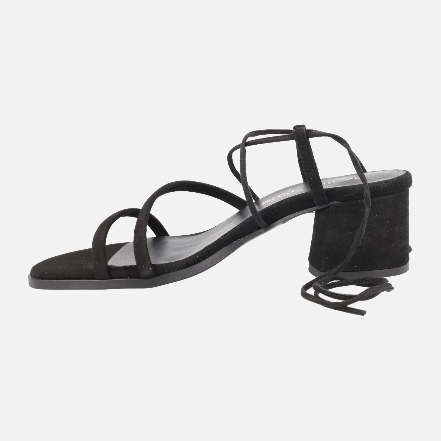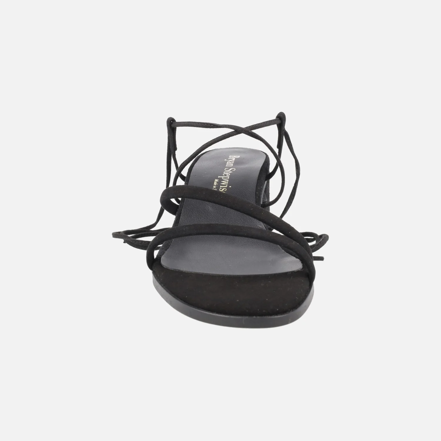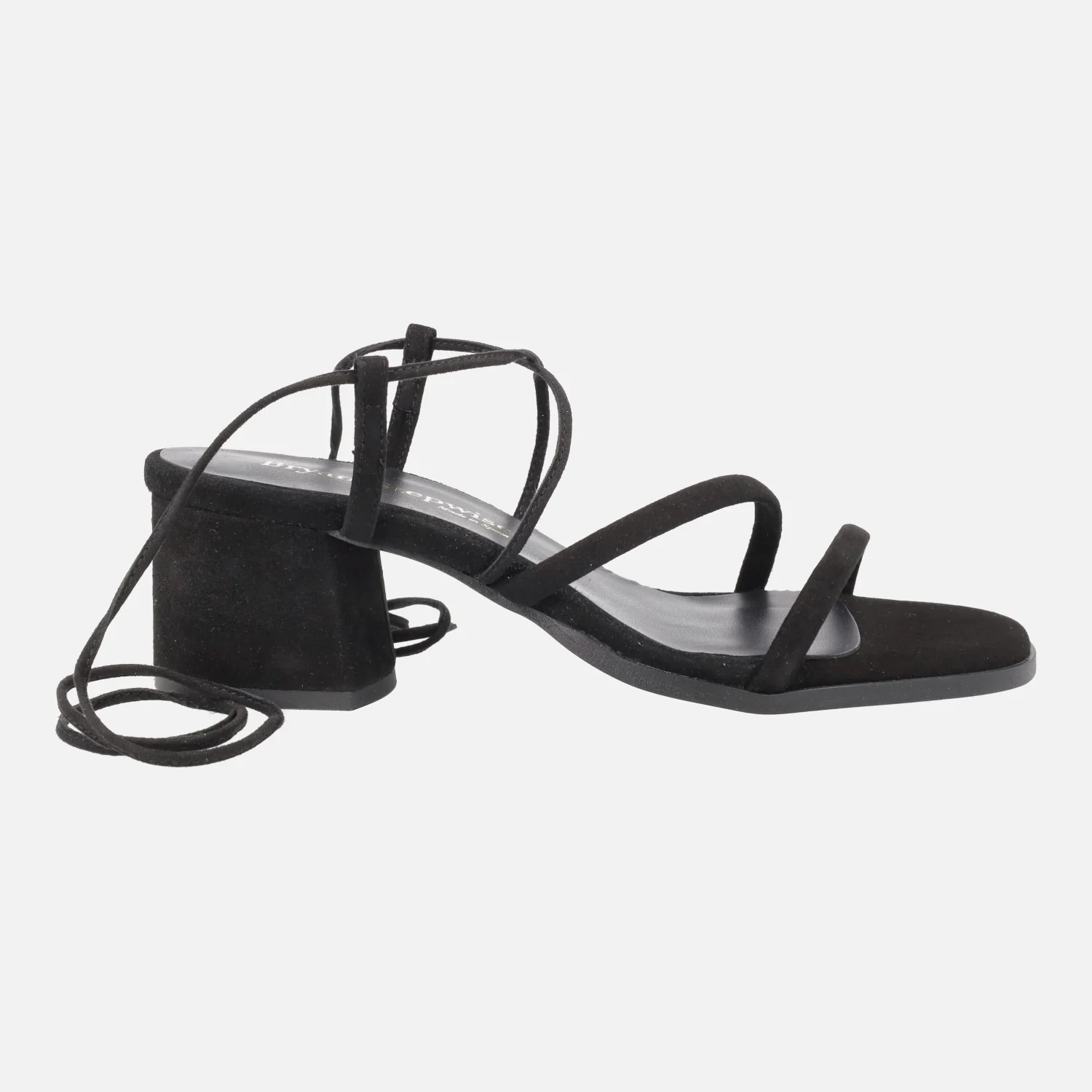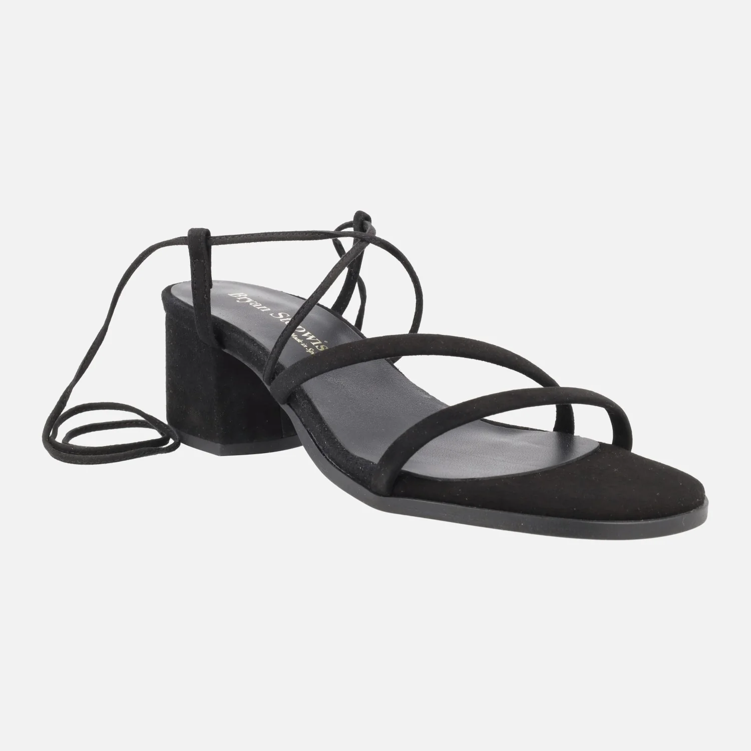 Sandalias de tacón para mujer de la marca Bryan Stepwise, modelo Grecia 2605, disponibles en ante negro y en ante lincoln (camel). Sandalias con dos tiras delanteras y cintas en ante para atar a la pierna o tobillo. Planta y forro de piel. Tacones forrados, de 6 cms de altura. Made in Spain.