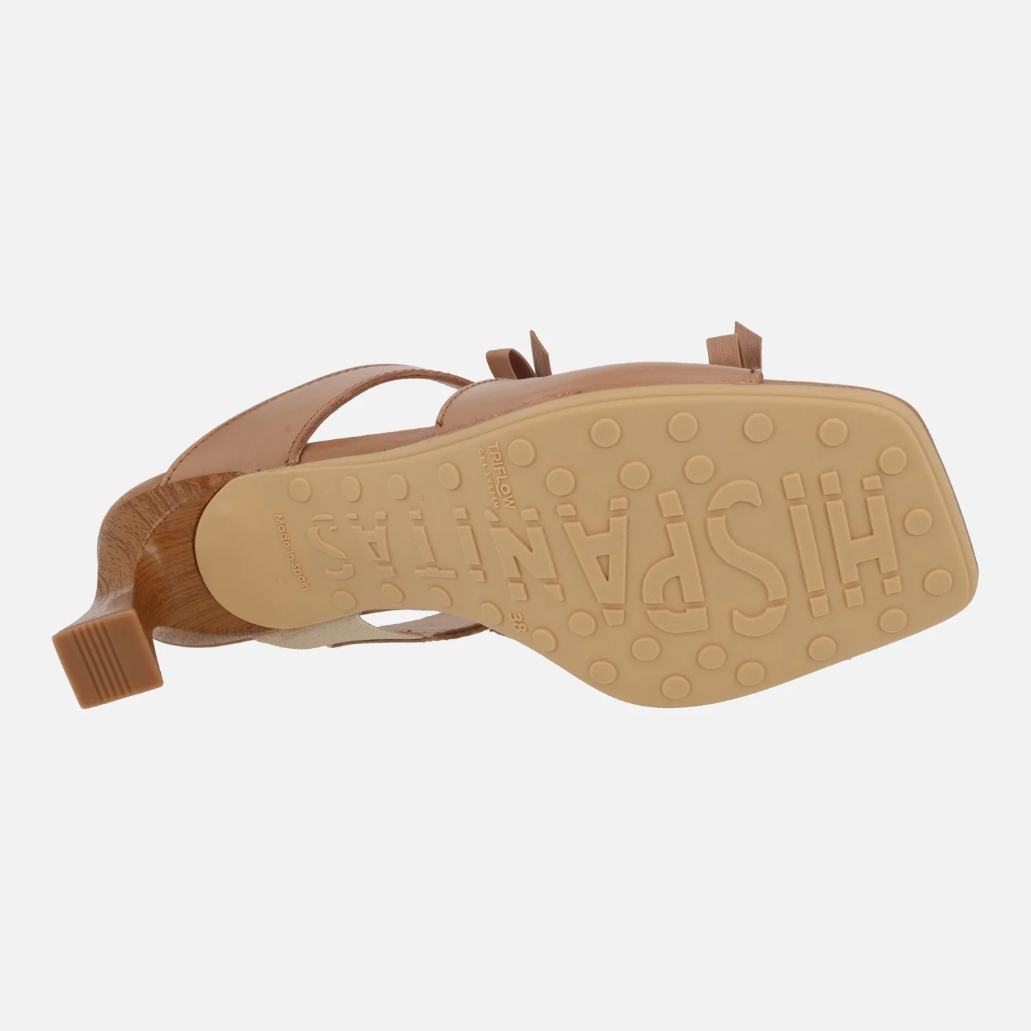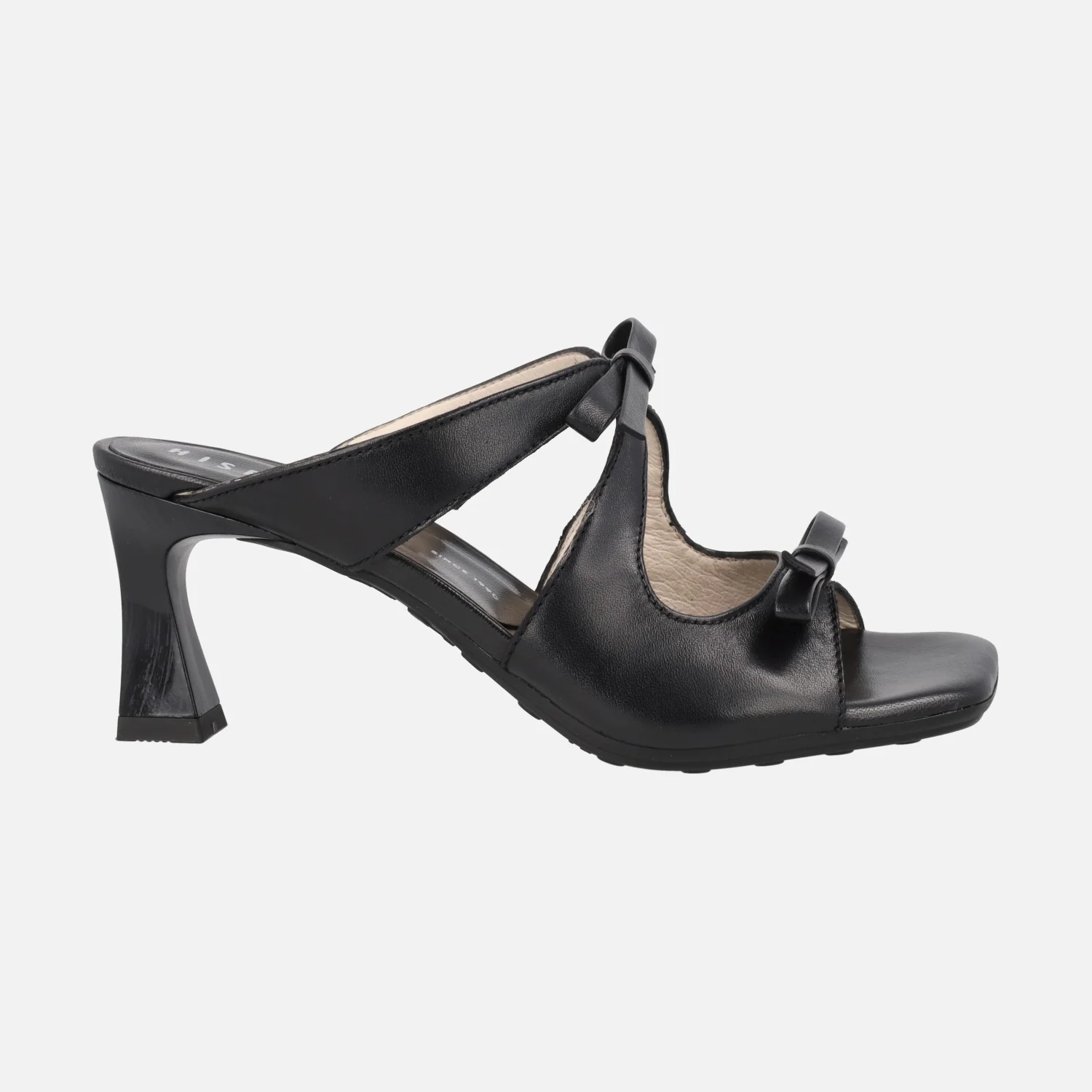 Preciosas sandalias estilo mules de la marca española Hispanitas, modelo HV264701 Rosa, disponibles en color almond (camel) y en color negro. Sandalias de piel, destalonadas, con adorno de lazos en la parte delantera. Interiores forrados en piel y microfibra. Tacones de aproximadamente 7cm de altura (altura total con la planta 8 cm). Suela sintética (poliuretano termoplástico). Tecnología TRIFLOW de triple almohadillado, para un gran confort a la hora de caminar.