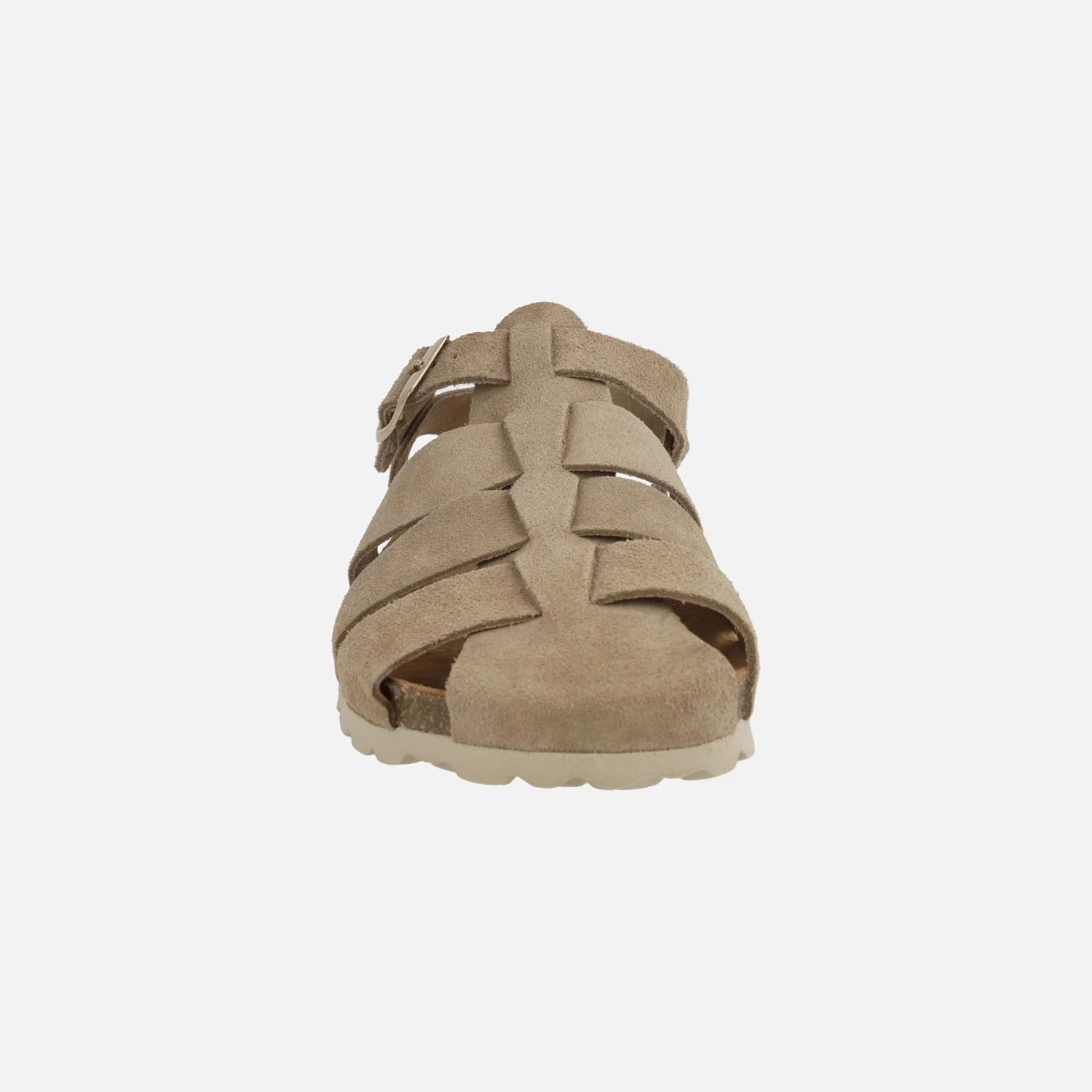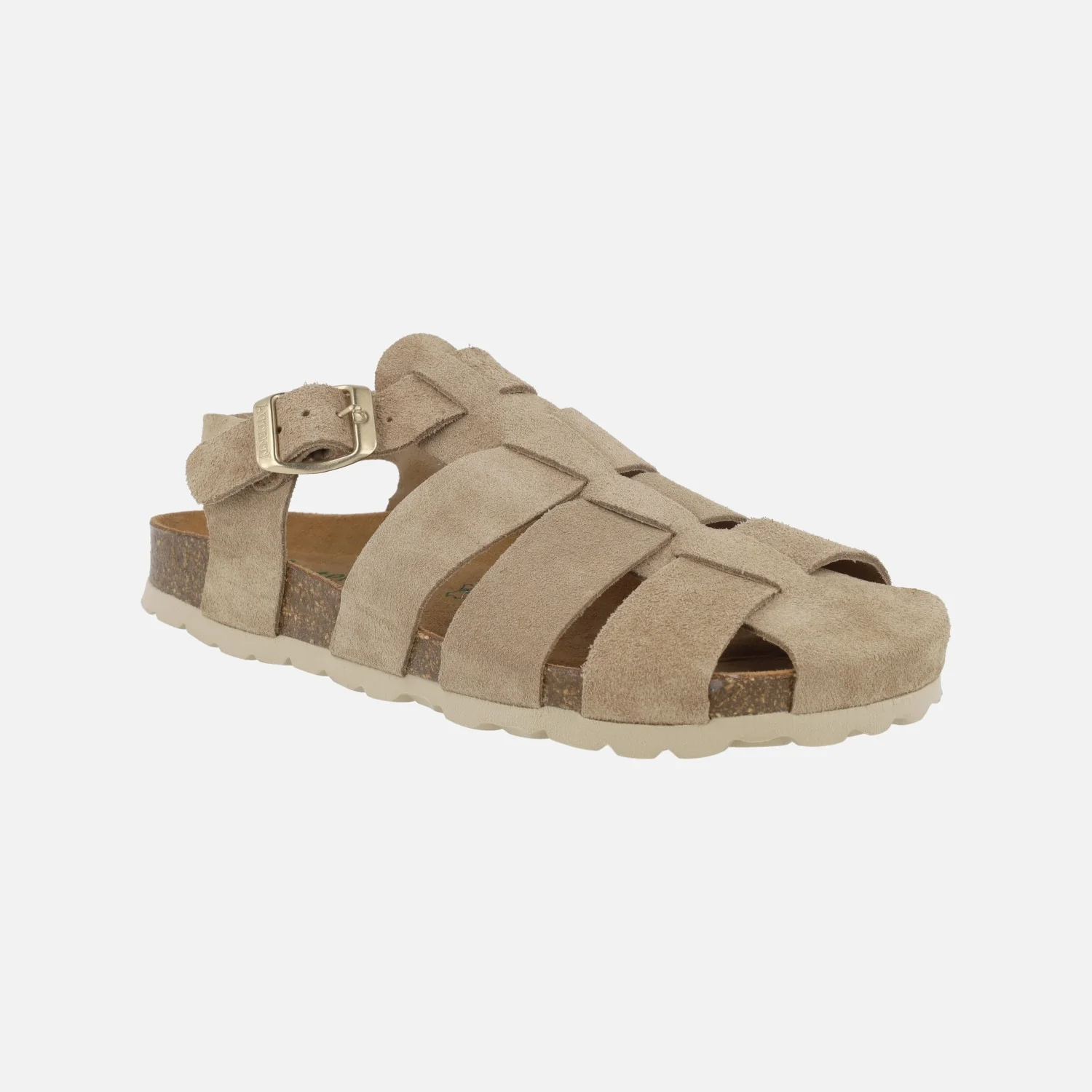 Sandalias estilo cangrejeras bio en serraje taupe modelo 15465 Topo de la marca Autenti. Sandalias elaboradas en piel serraje color taupe, con cierre de hebilla ajustable en metal dorado. Interiores en piel. Piso sintético. Altura trasera 2,5 cm, 1,5 cm en la parte delantera.