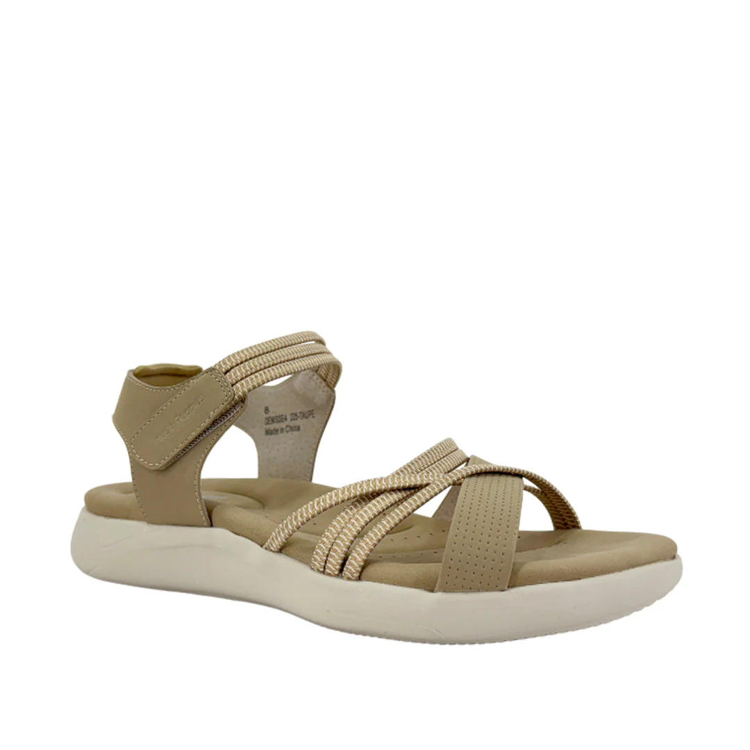 Las sandalias flats Denisse 4 para mujer en color taupe están elaboradas en cuero suave y cuentan con una plantilla Bounce™ combinada con una talonera personalizada impresa en 3D, que ofrece una amortiguación superior y duradera para una comodidad excepcional durante todo el día.
