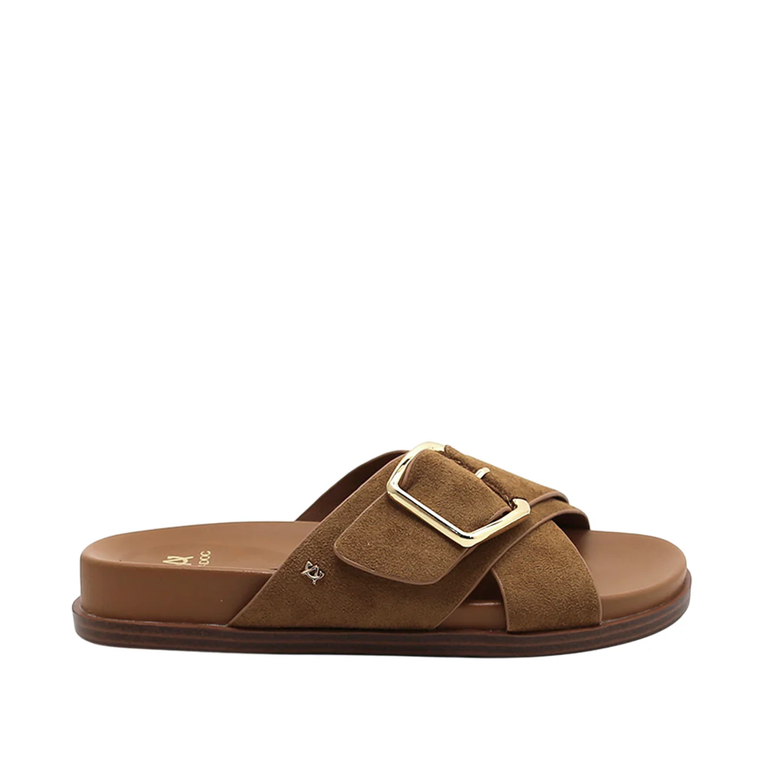 Sandalias flats Isha para mujer color arena, material sintético. Paleta neutra y diseño cómodo pensados para acompañar todo el día.