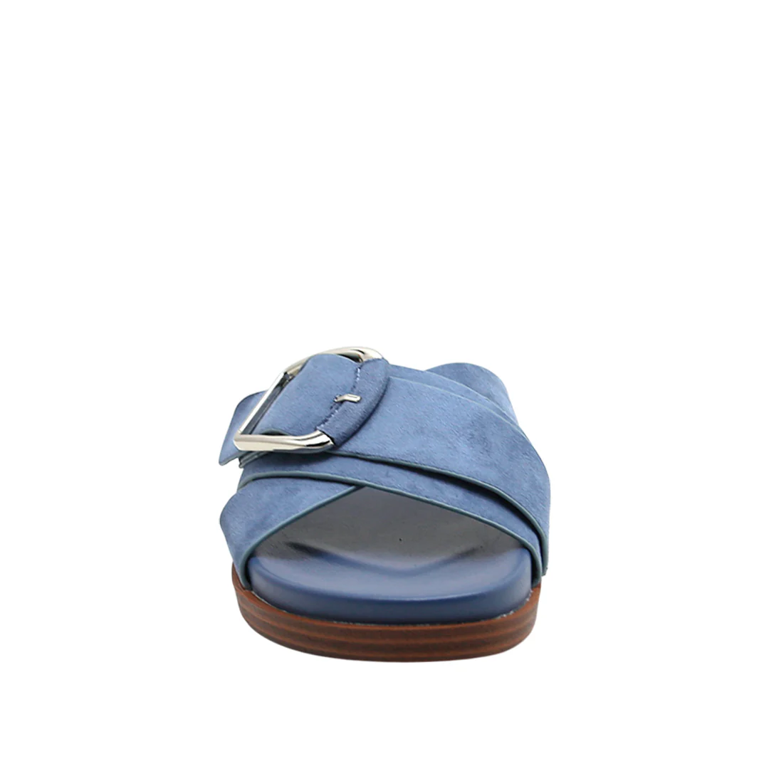 Sandalias flats Isha para mujer color celeste, material sintético. Propuesta ligera con matiz fresco que suma carácter sin recargar.