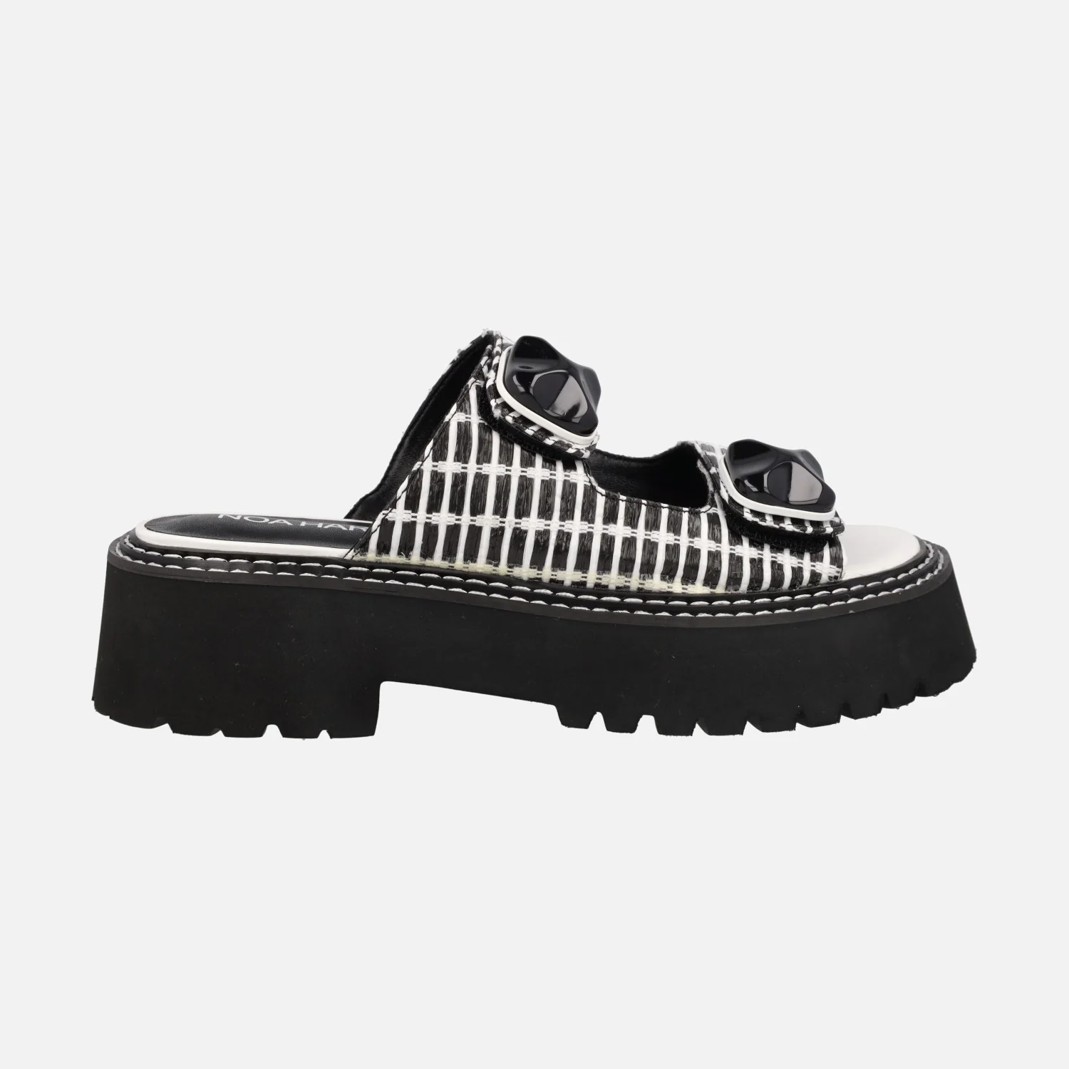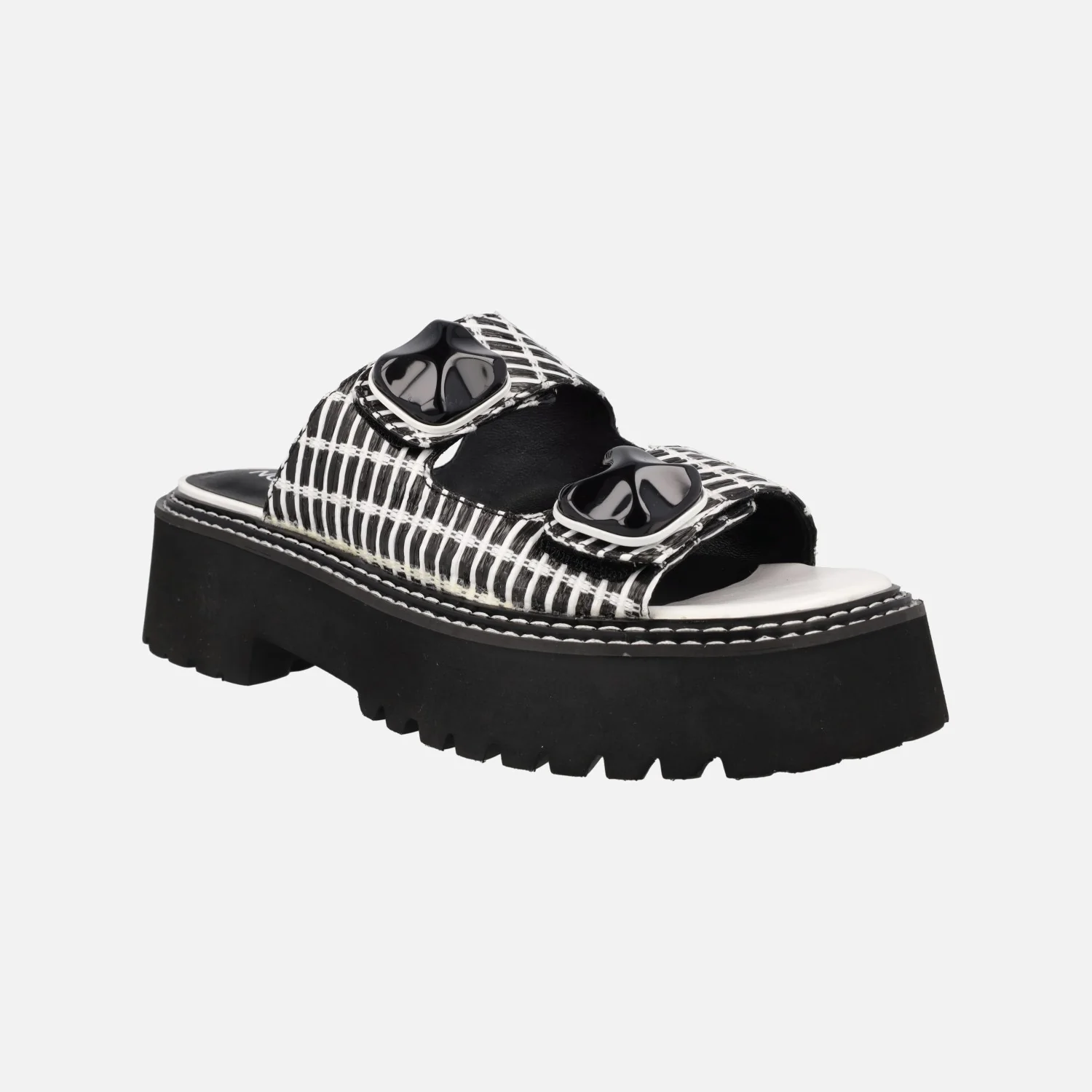 Sandalias Heaven en combinado de rafia bicolor blanco y negro