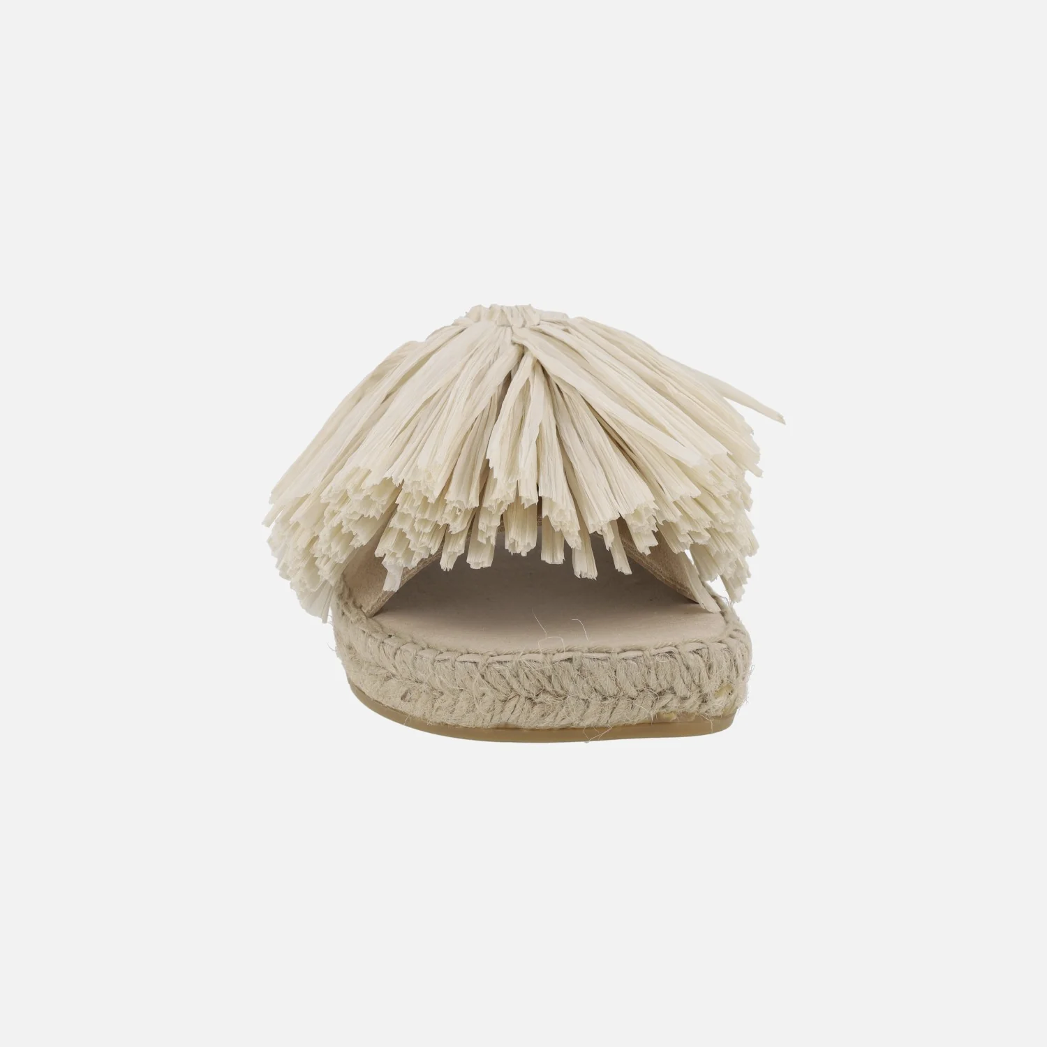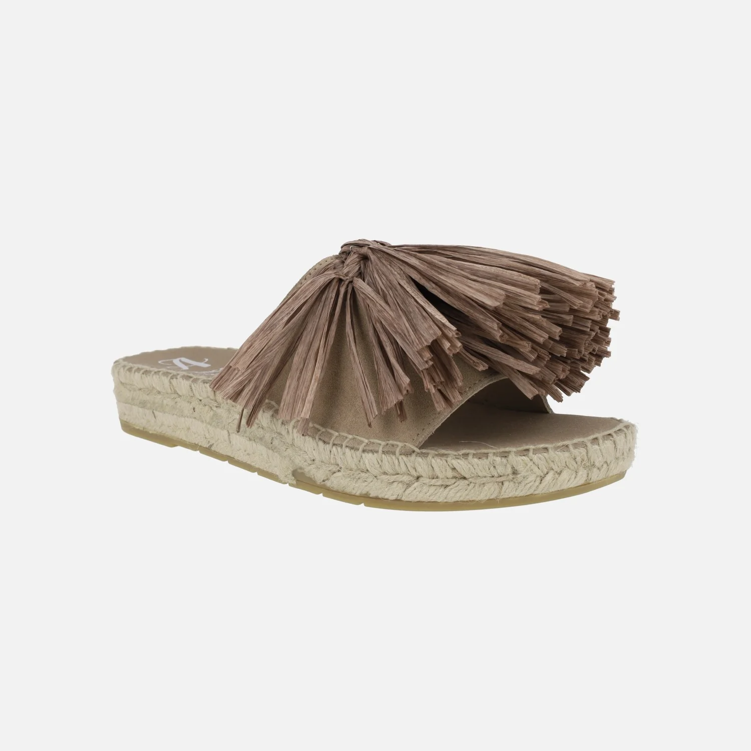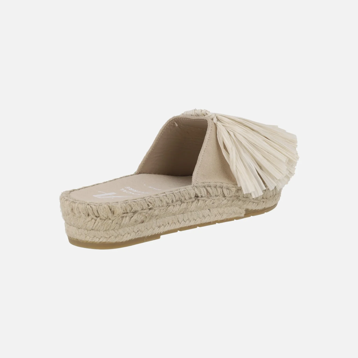 Sandalias planas de esparto de la marca Juncal Aguirre modelo Ibiza 2012, disponibles en beige o en tostado (marrón). Sandalias con pala elaborada en piel serraje y adorno de rafia. Interior mixto en piel y tejido. Entre suela de esparto y suela de goma. Altura aproximadamente 3 cms. Made in Spain.