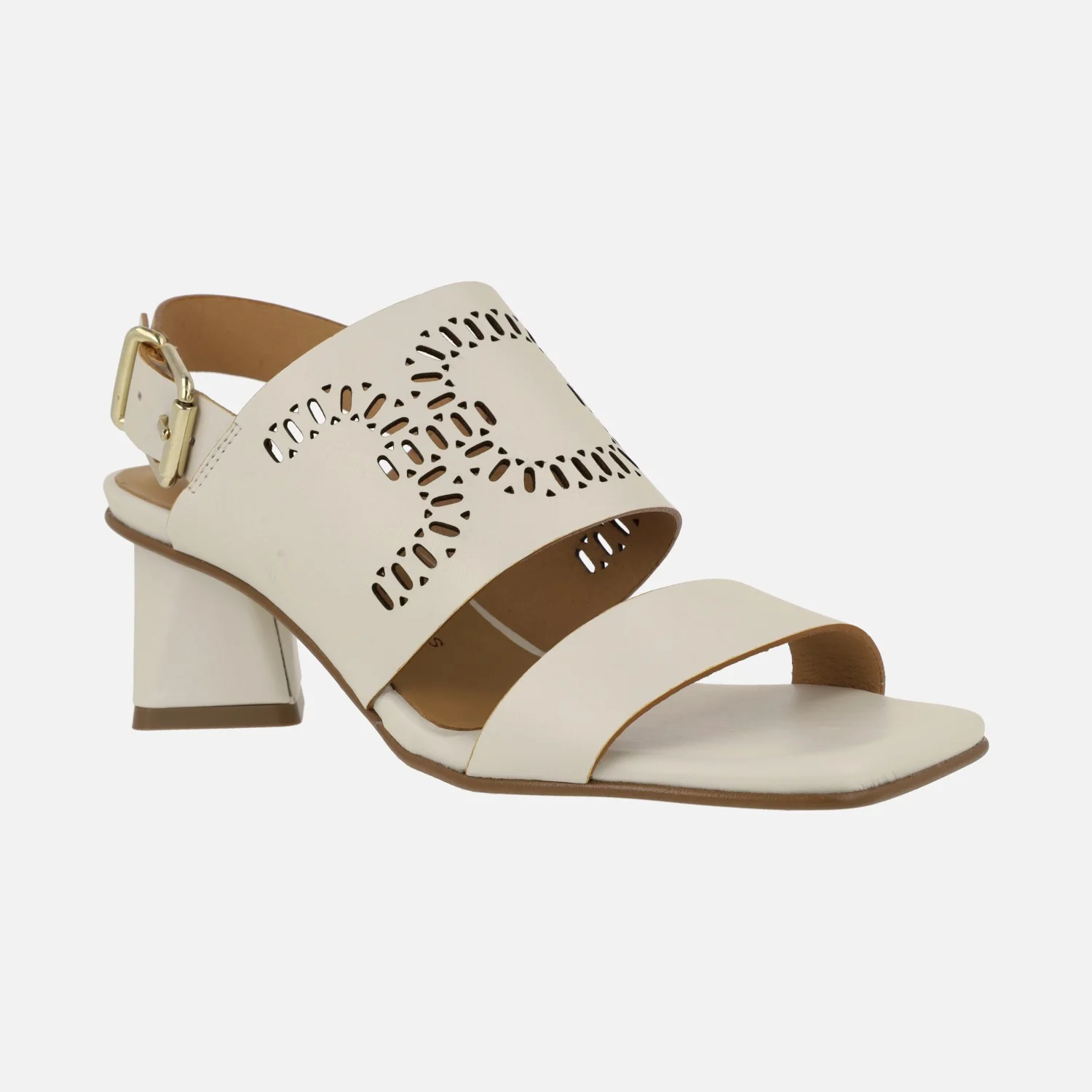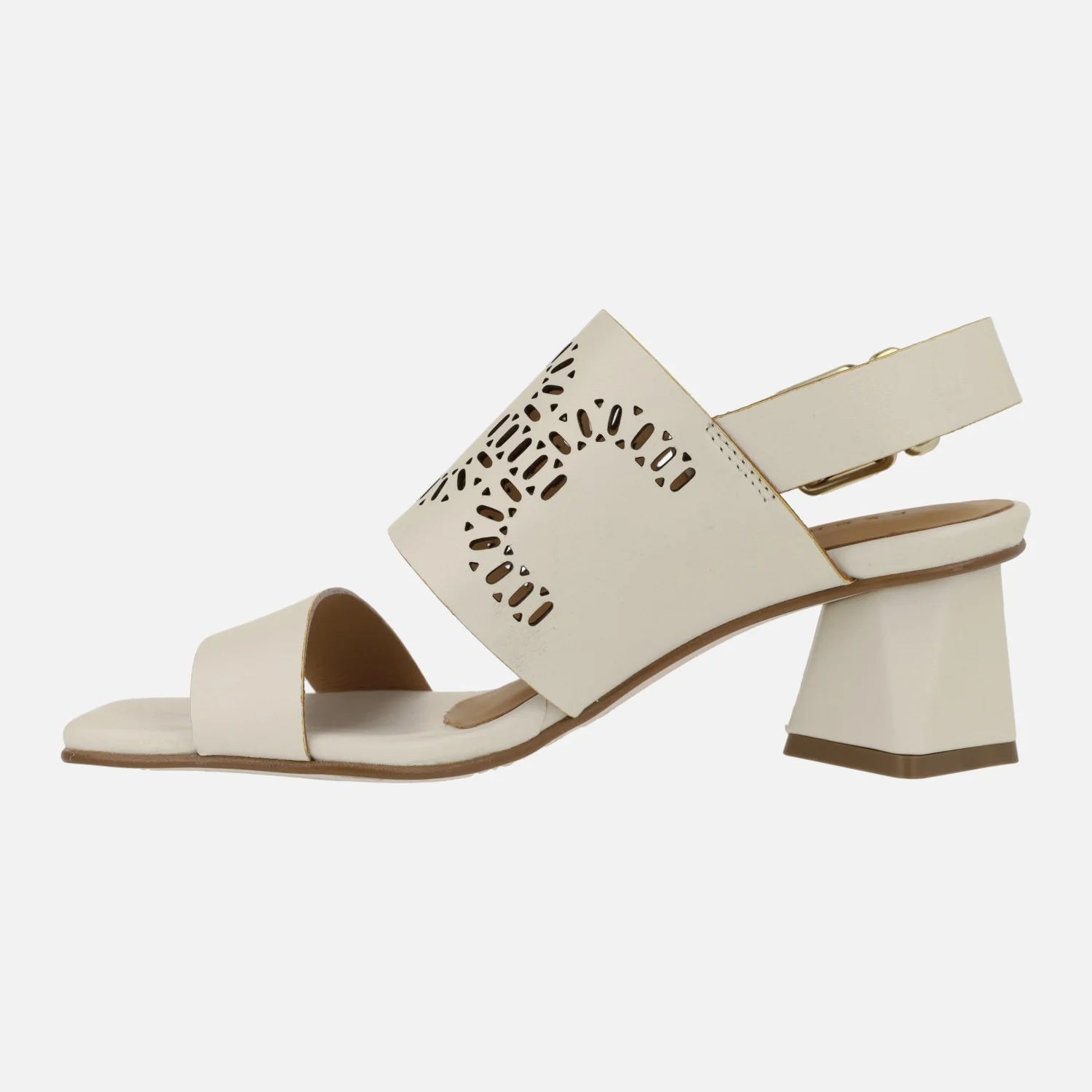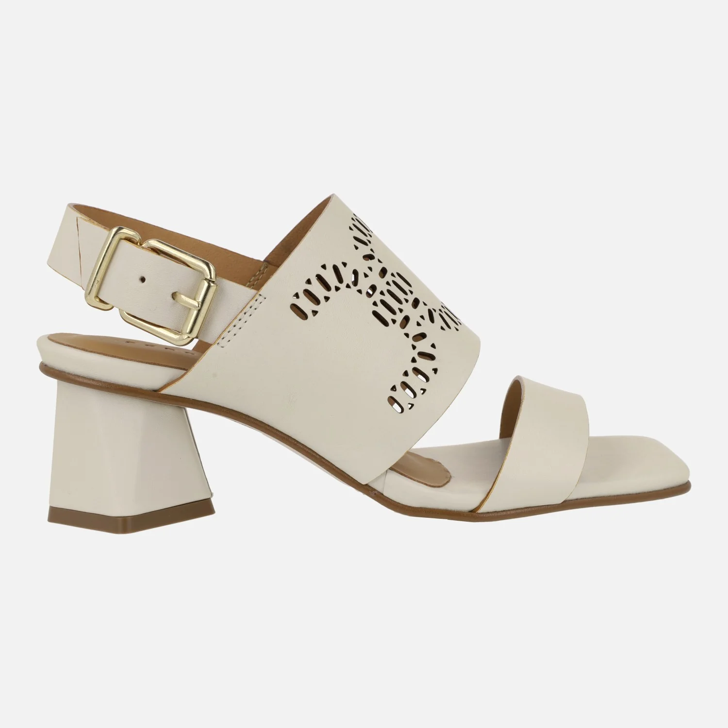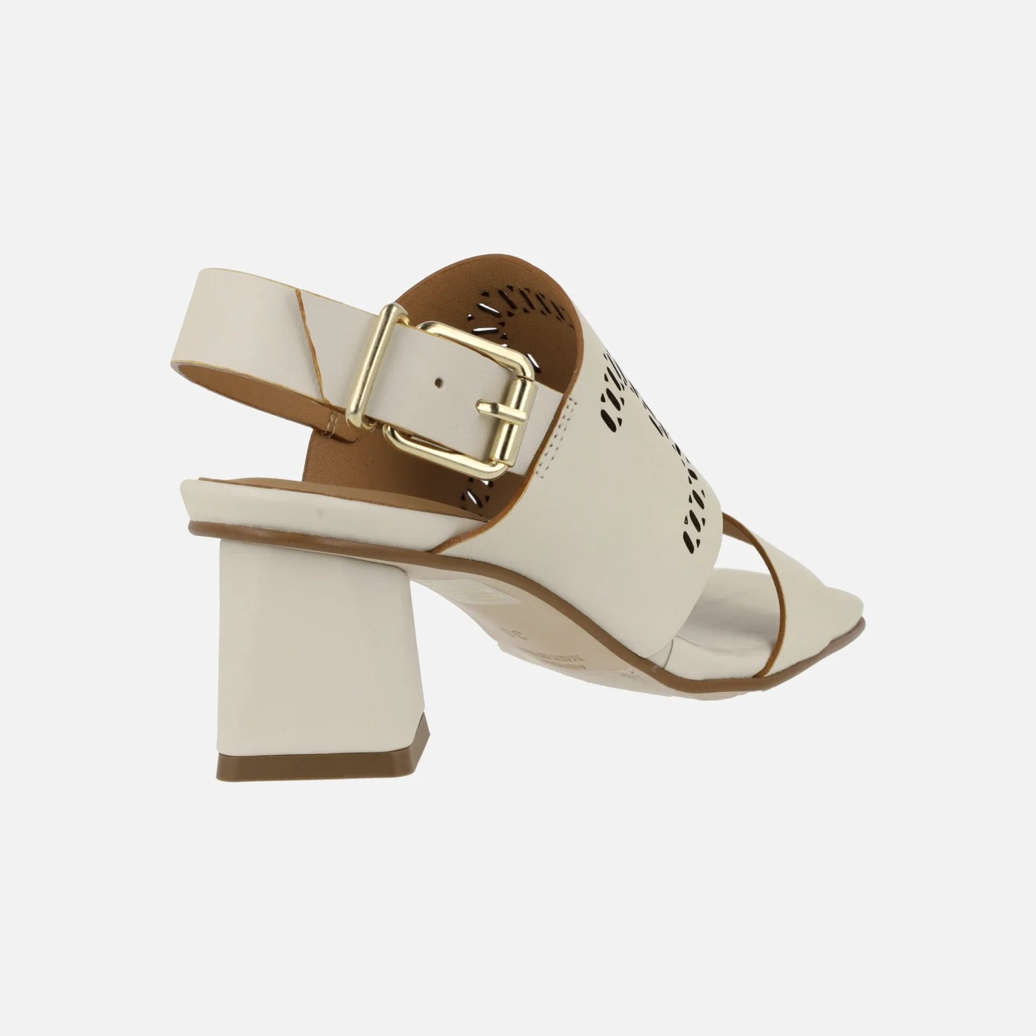 Sandalias Manarola en piel hielo con troquelado y tacones geométricos