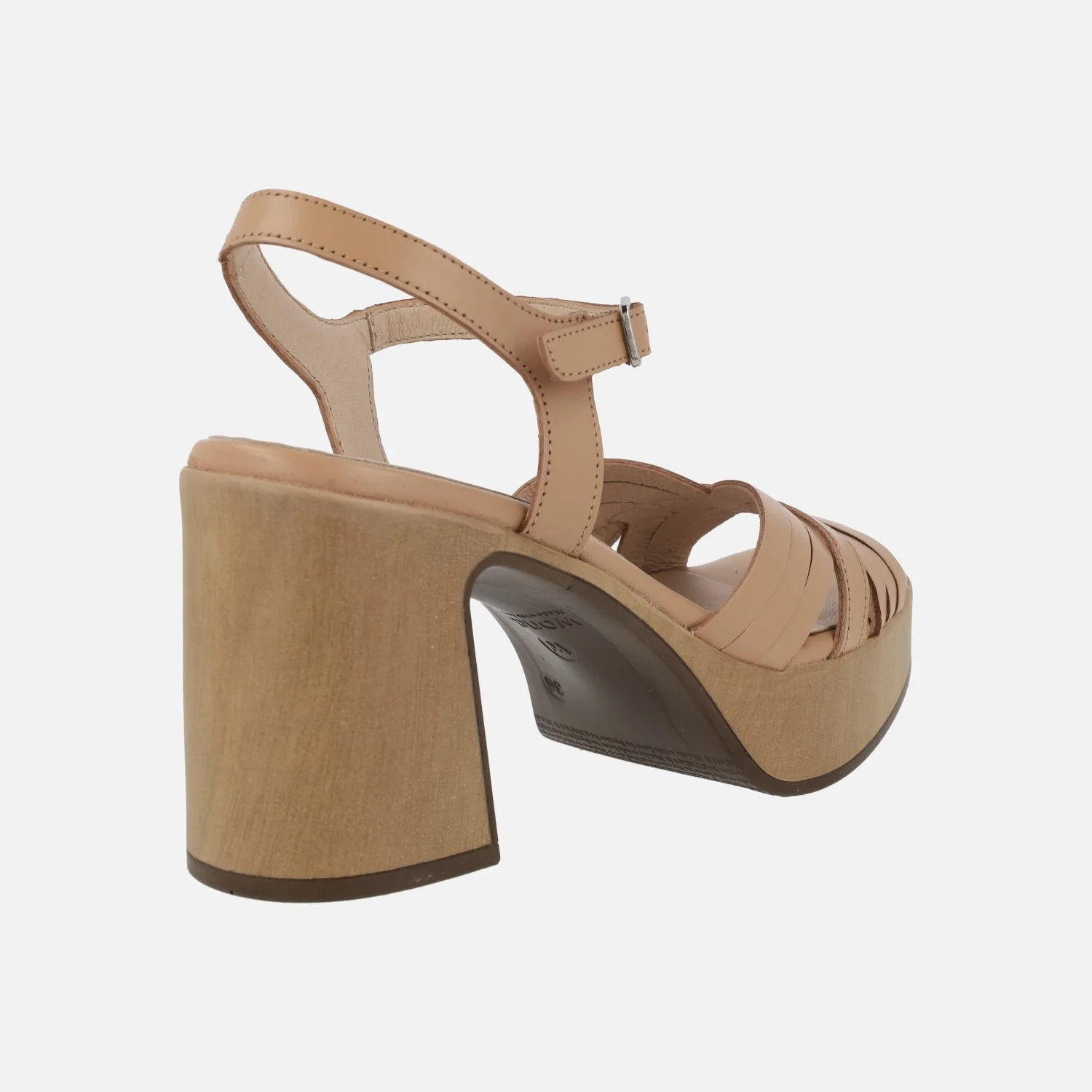 Sandalias de piel Marisol modelo L-1401 Sand. Sandalias con parte delantera de tiras y pulsera al tobillo con cierre de hebilla. Interiores de piel. Tacón alto y plataforma imitando madera, con una altura de 8,5 cms de tacón y plataforma de 3,5 cms. Wonders, made with love in Spain.