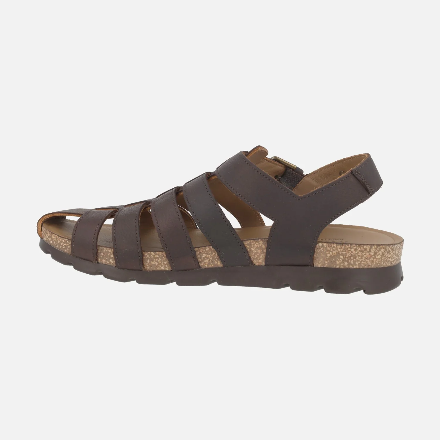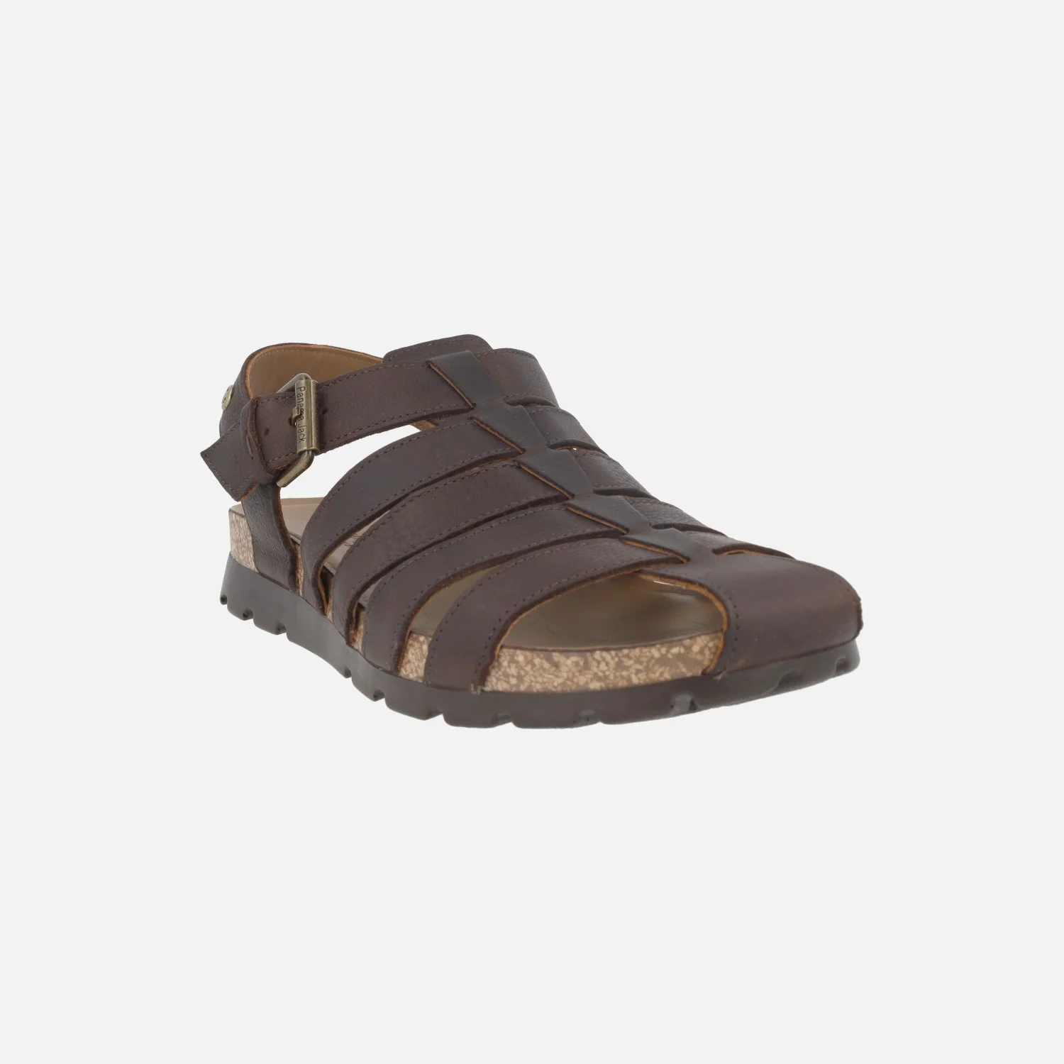 Sandalias de piel para hombre Panama jack modelo Sebas C2 en napa grass marrón Waterproof. Sandalias de estilo cangrejeras, elaboradas en piel engrasada marrón. Compuesta por distintas tiras, cierra con hebilla ajustable al tobillo. Interiores en piel. Suela de corcho y poliuretano. Made in Spain.