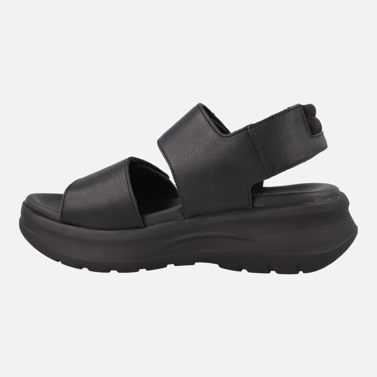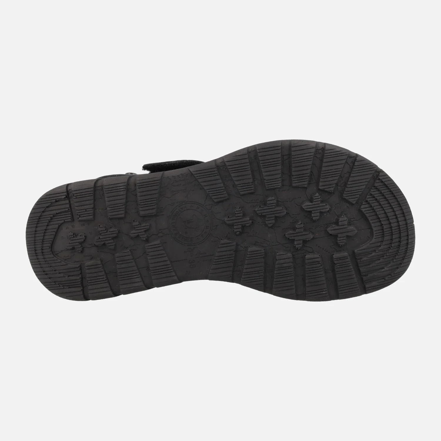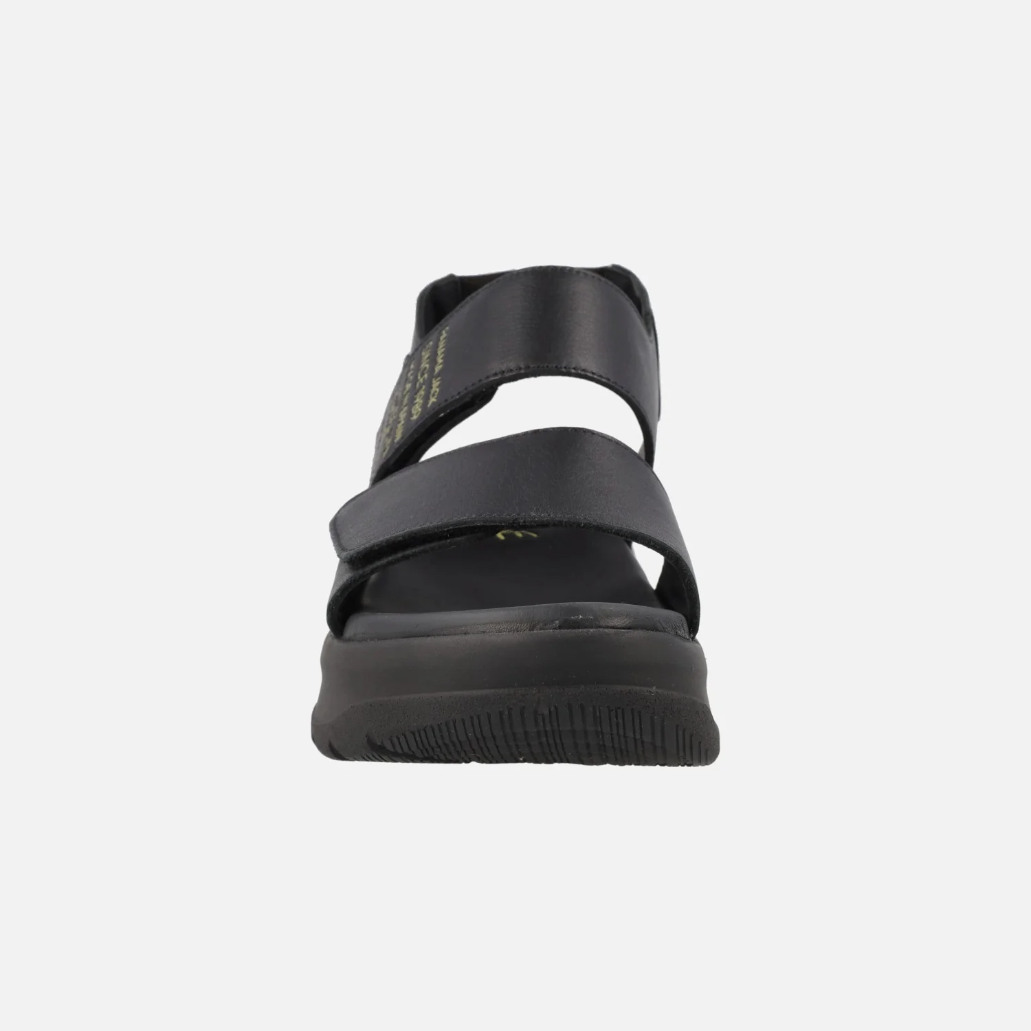Sandalias Panama jack para mujer con cierre de velcros Noah B1 Napa Negro Black. Sandalias de piel con cierre de velcros, elaboradas en napa negra. Detalle de letras en amarillo en la tira del empeine. Planta anatómica, muy confortable. Piso de poliuretano, ligero y resistente, de aproximadamente 6 cms de altura trasera (4 cms parte delantera). Made in Spain.