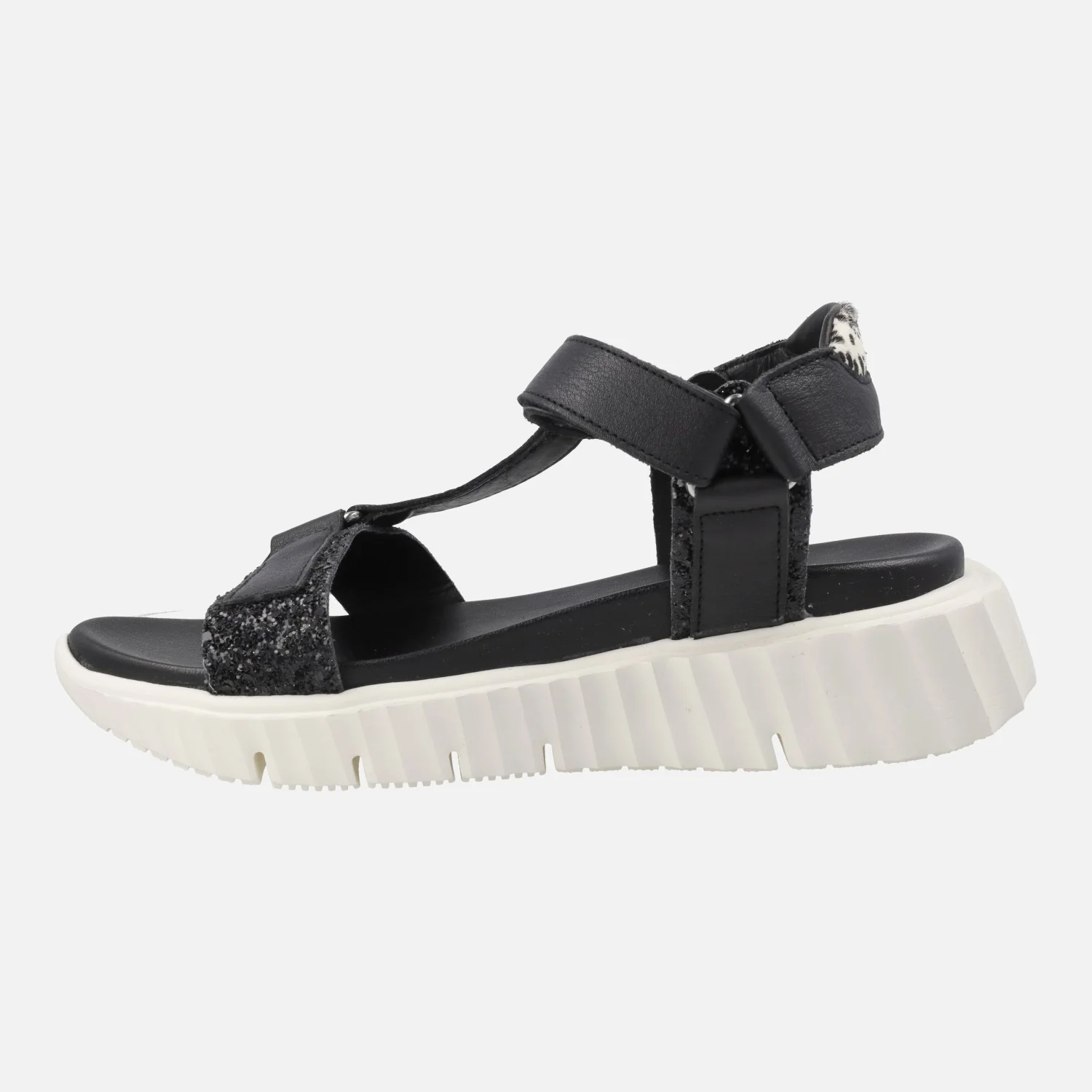 Sandalias negras en combinado de piel y glitter con cierre de velcro