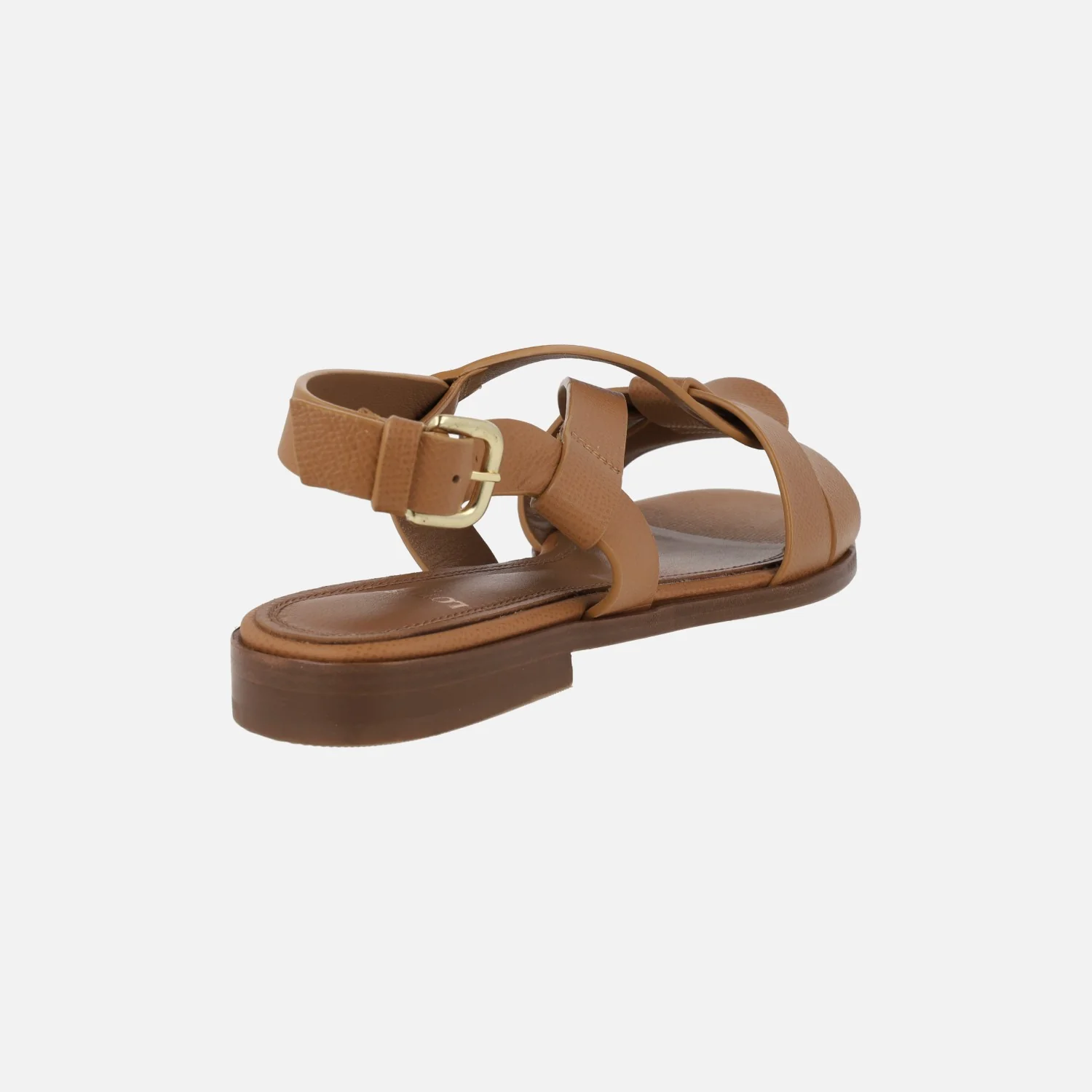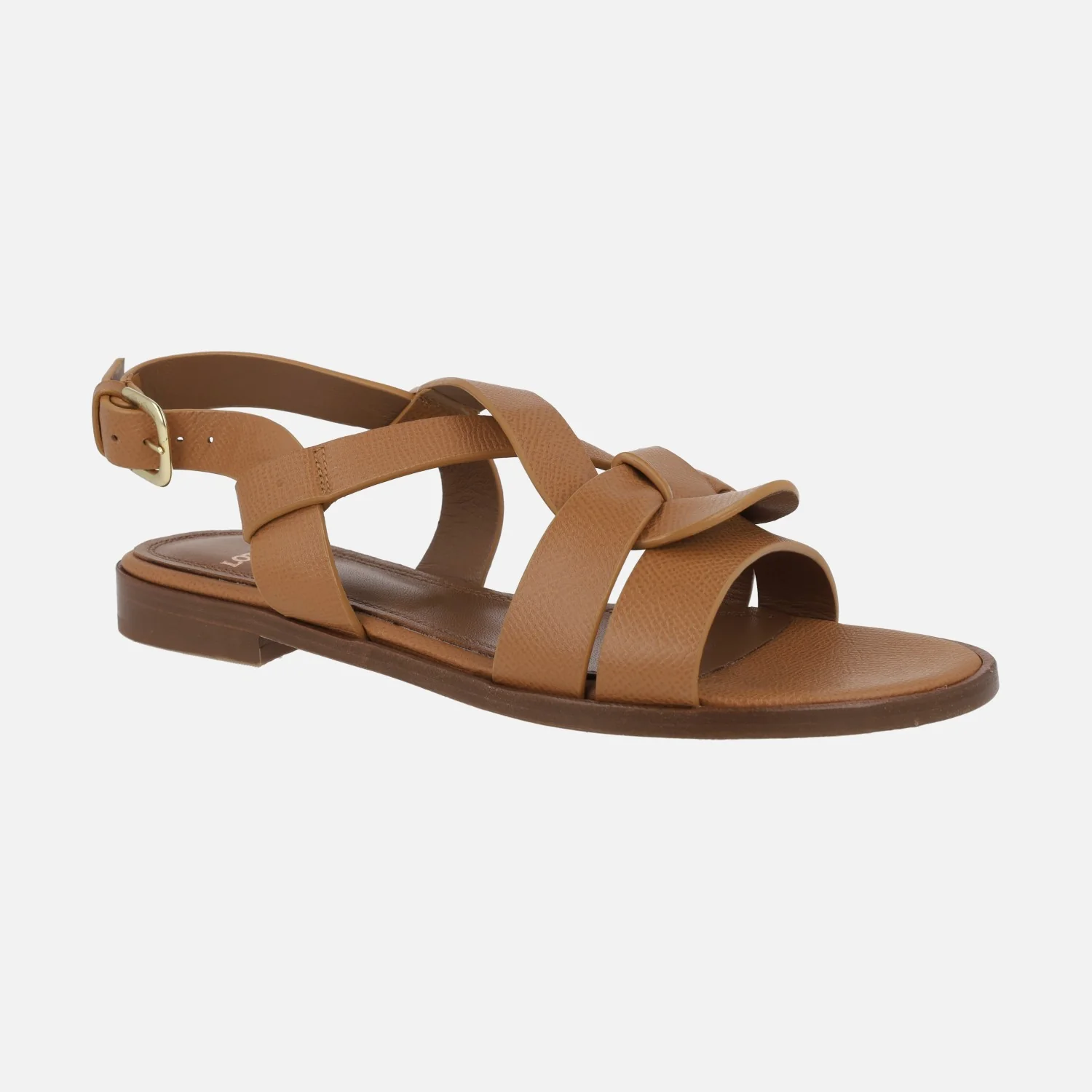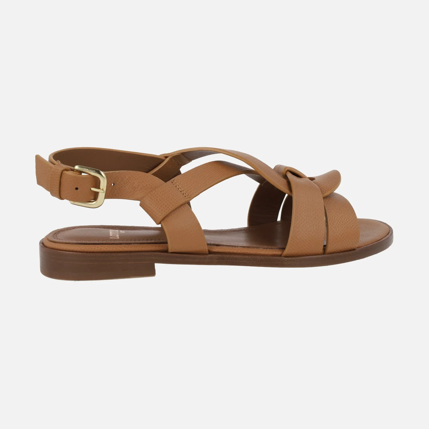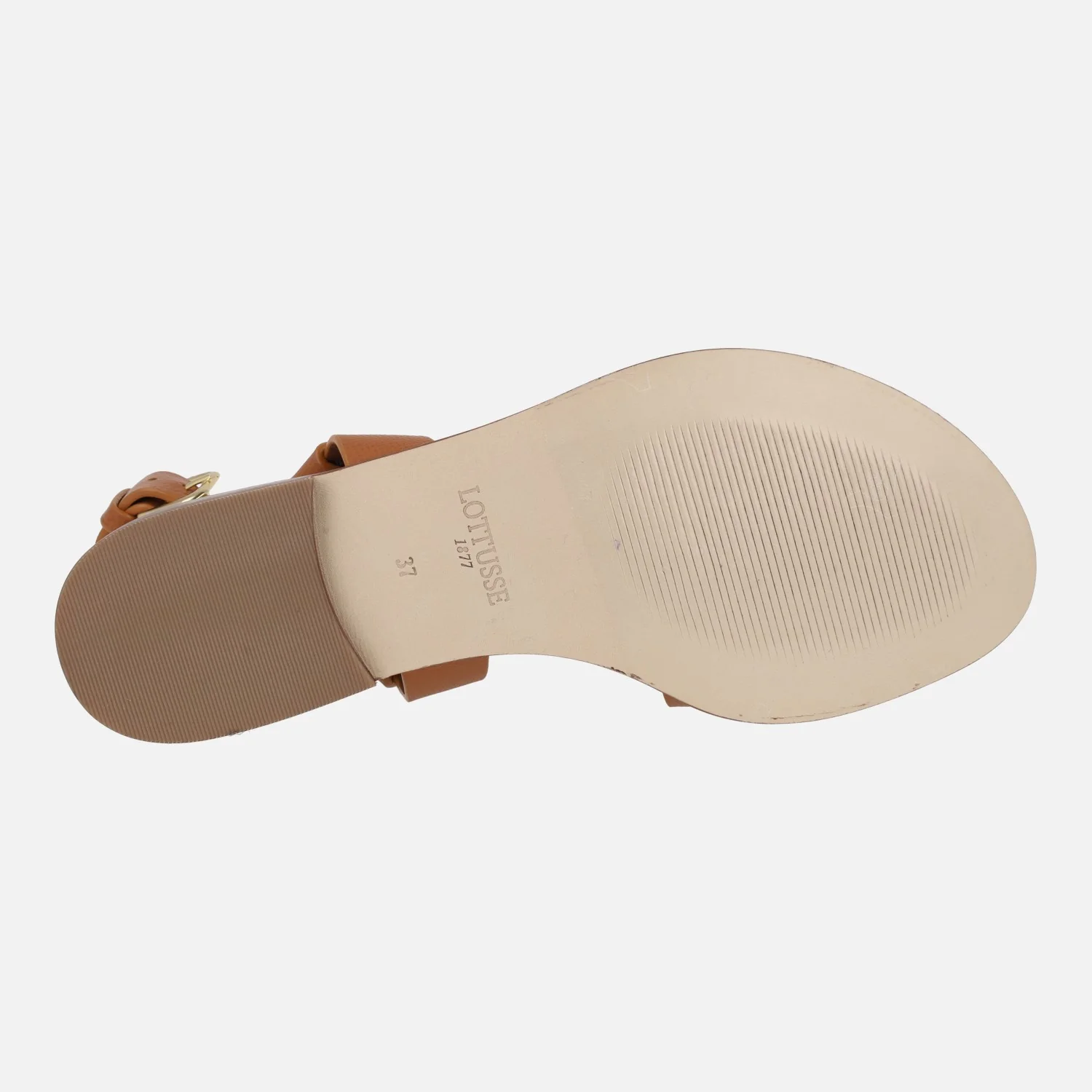Sandalias planas para mujer de la marca Lottusse modelo Nylo SS0651-006 Safian cuero. Sandalias de piel con tira al talón con cierre de hebilla. Forro y planta de piel. Suela de cuero con tacón bajo, de 2 cms de altura.