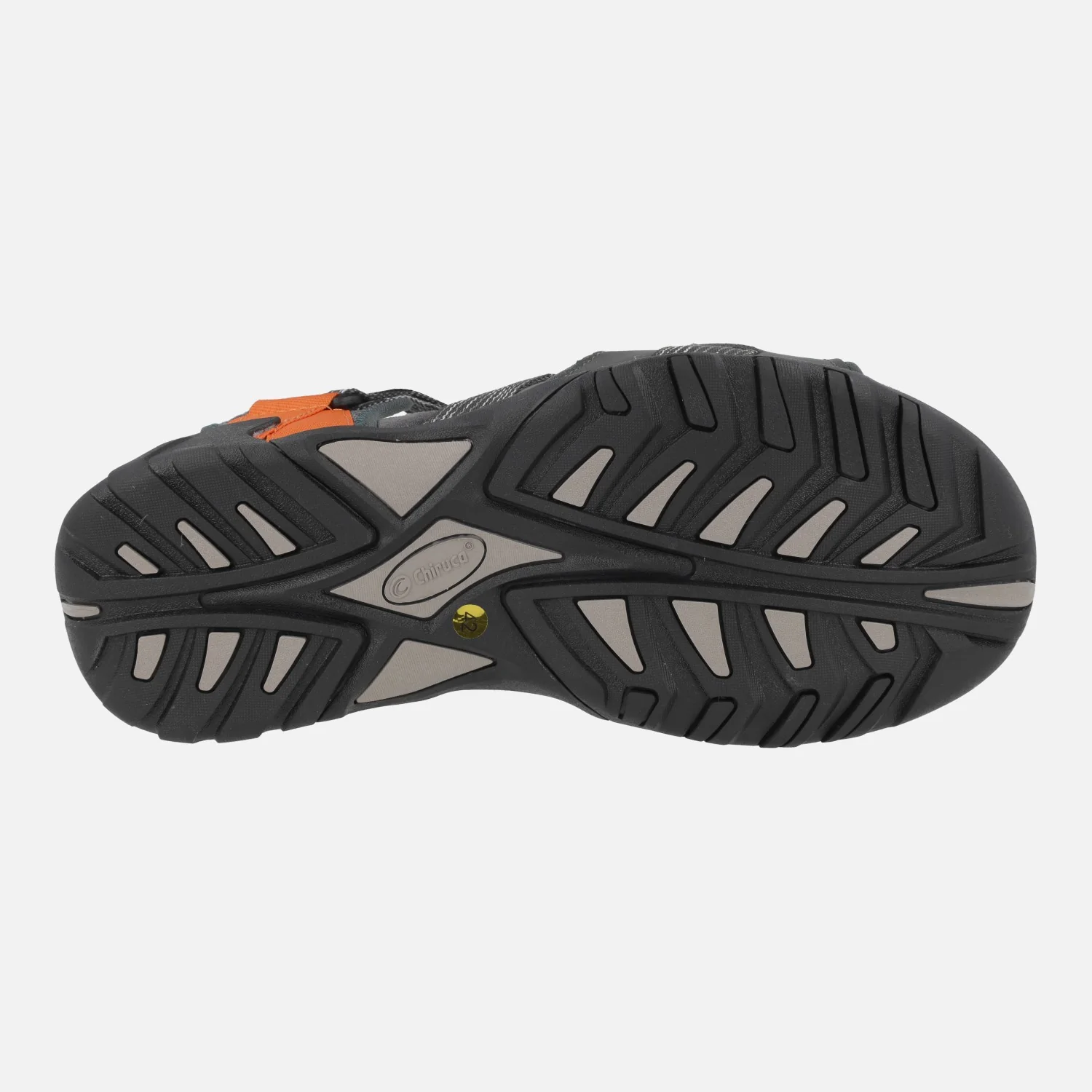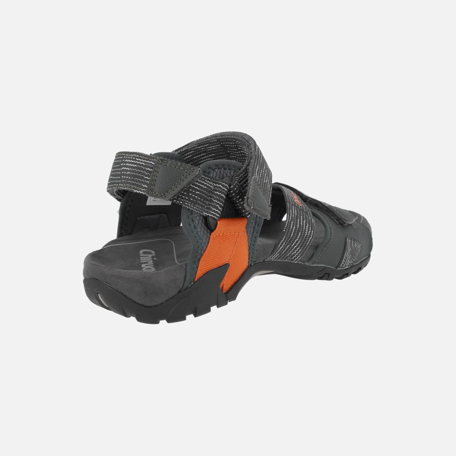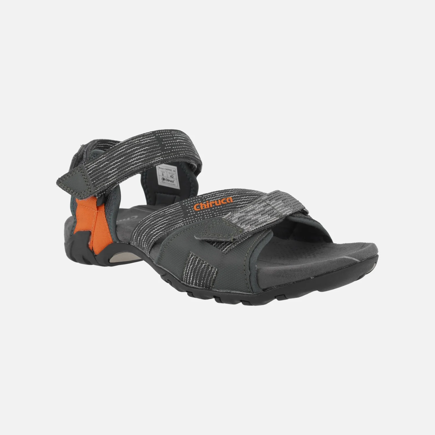Sandalias para hombre Chiruca Chipre 08, en combinado verde/gris/naranja. Sandalias elaboradas en materiales textiles, con cierre de velcros. Muy ligeras. Tienen entresuela de EVA y suela de caucho. Ideales para actividades de senderismo suave, para tus viajes y tus rutas de verano.