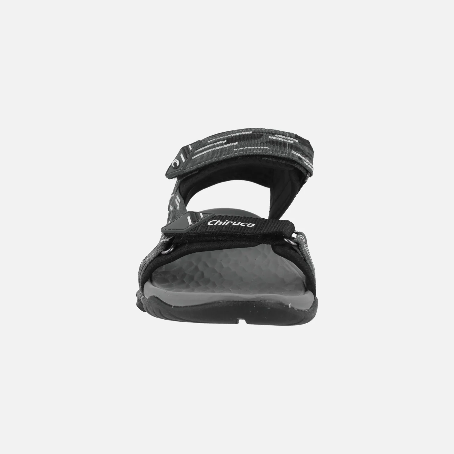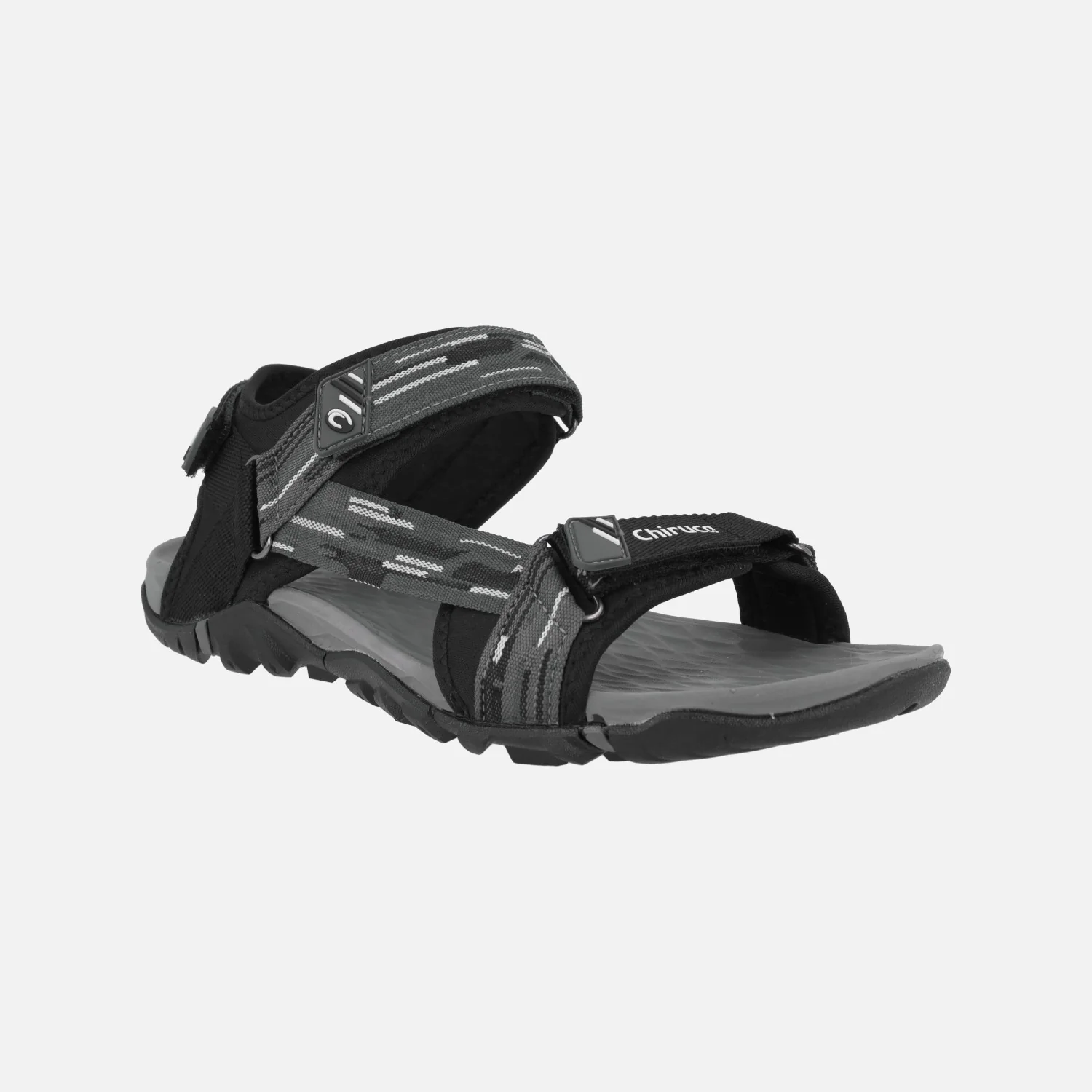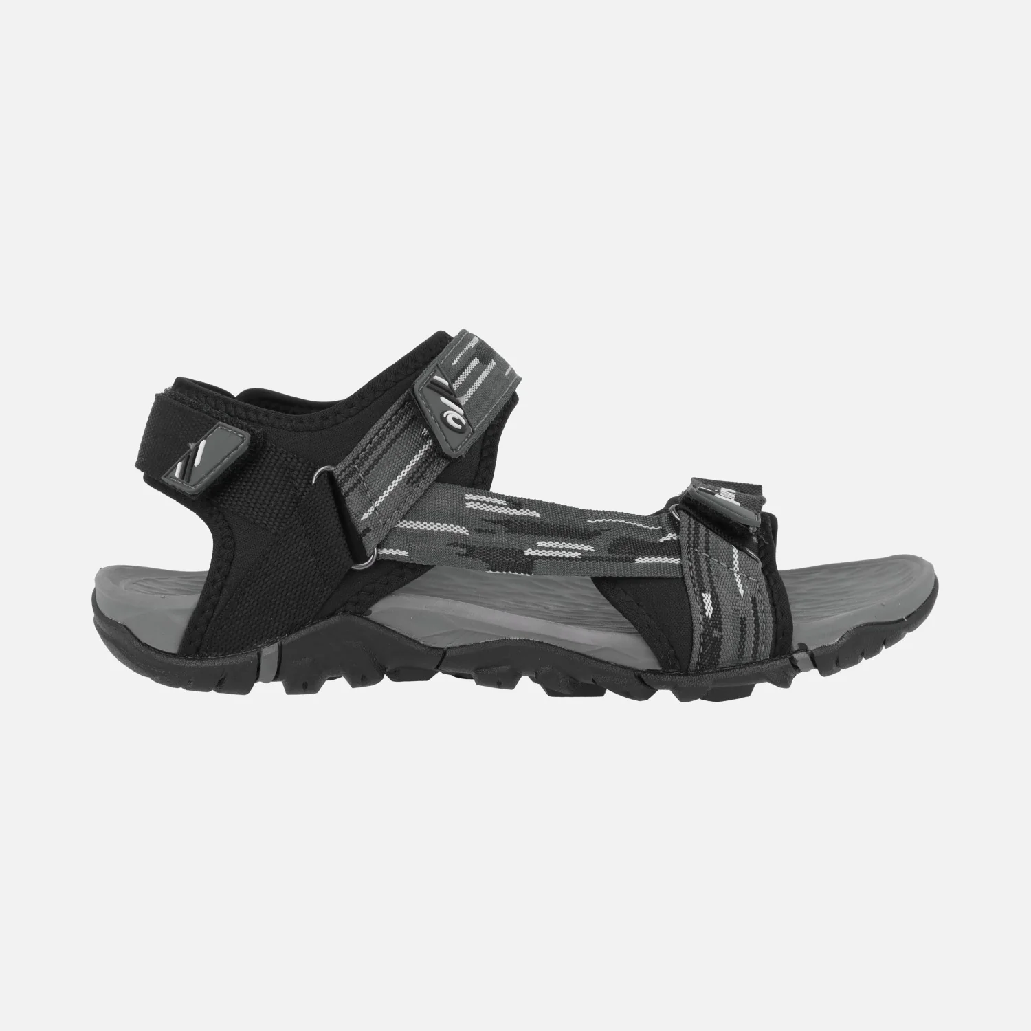 Sandalias deportivas para hombre Chiruca Dakar 23, en combinado negro y gris. Sandalias con corte textil, cierre de velcros en la parte delantera, trasera y empeine. Entresuela en EVA. Suela de caucho. Muy ligera y adherente, ideal para senderismo de baja intensidad.