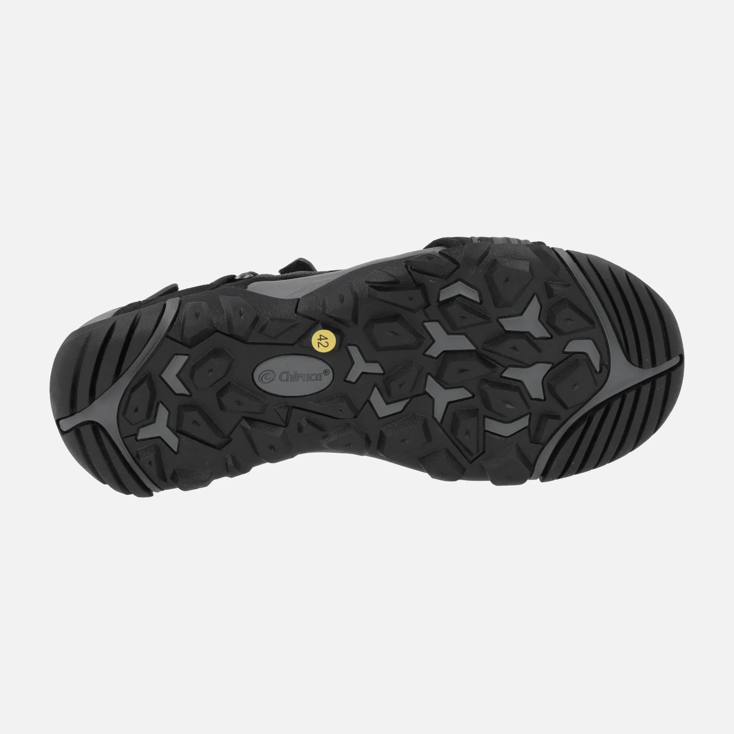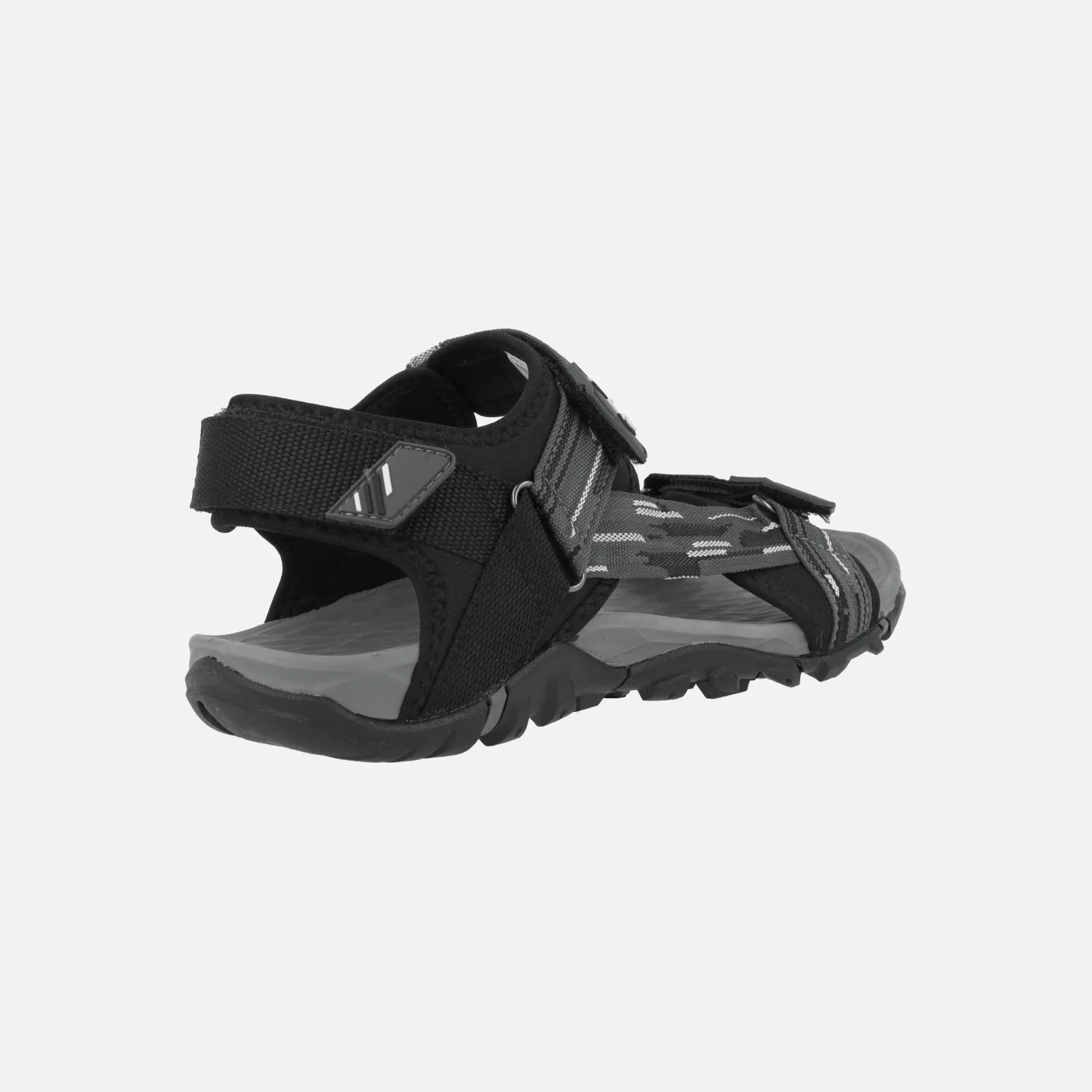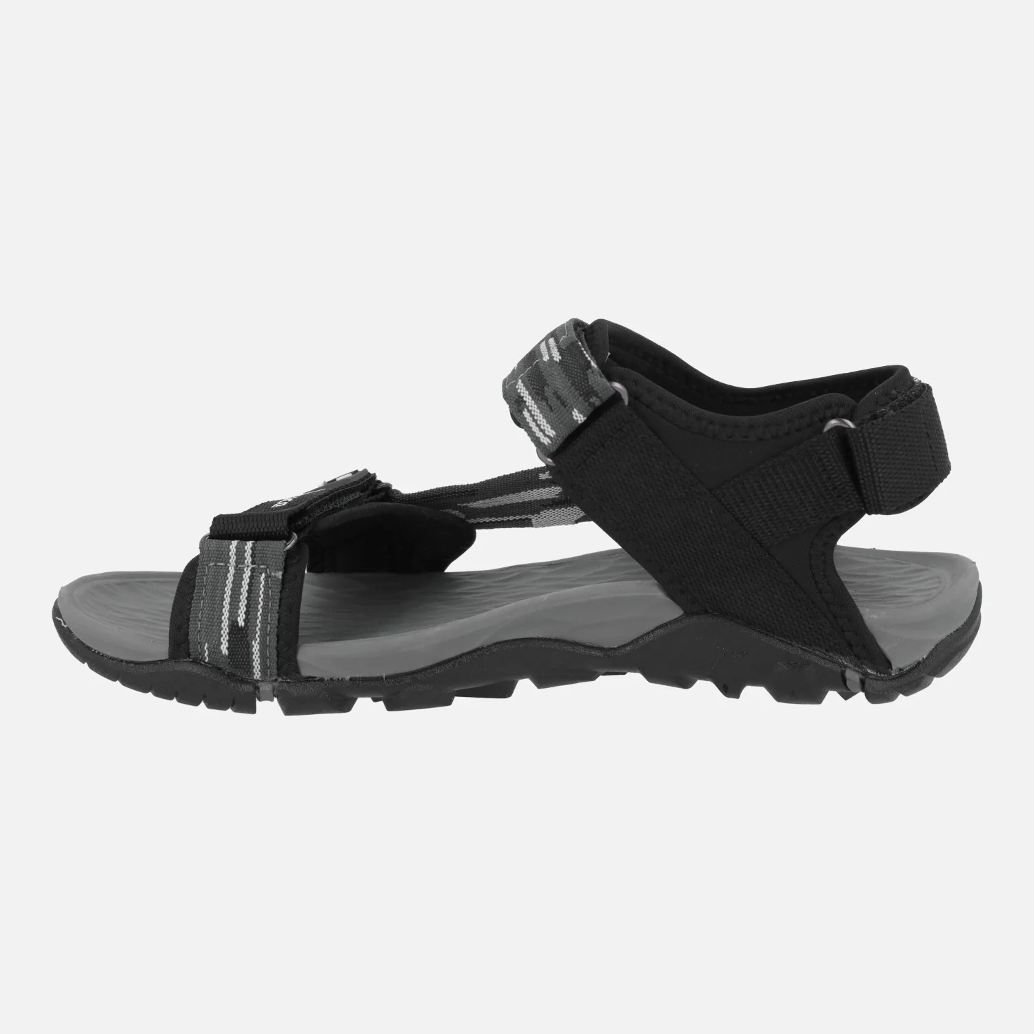 Sandalias deportivas para hombre Chiruca Dakar 23, en combinado negro y gris. Sandalias con corte textil, cierre de velcros en la parte delantera, trasera y empeine. Entresuela en EVA. Suela de caucho. Muy ligera y adherente, ideal para senderismo de baja intensidad.