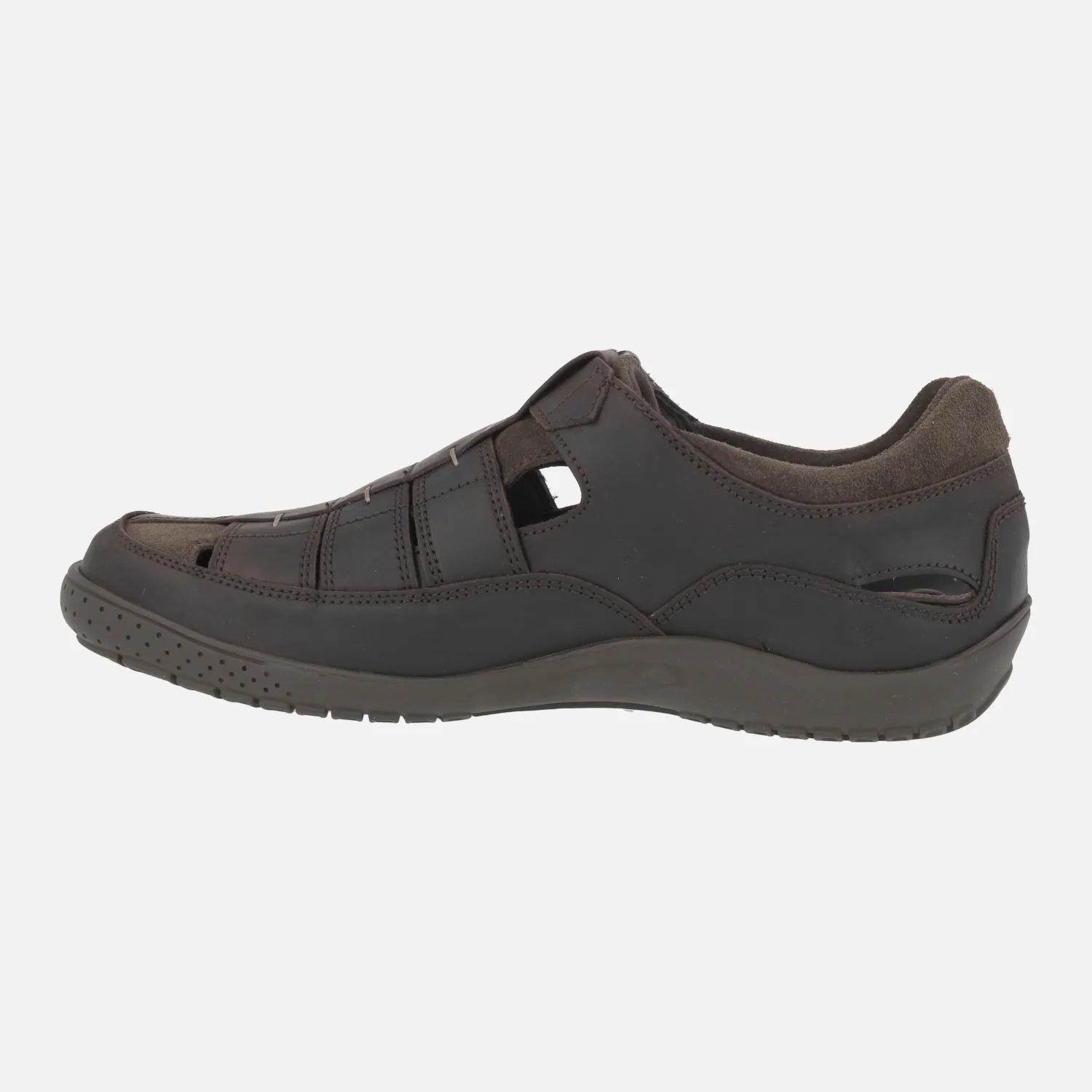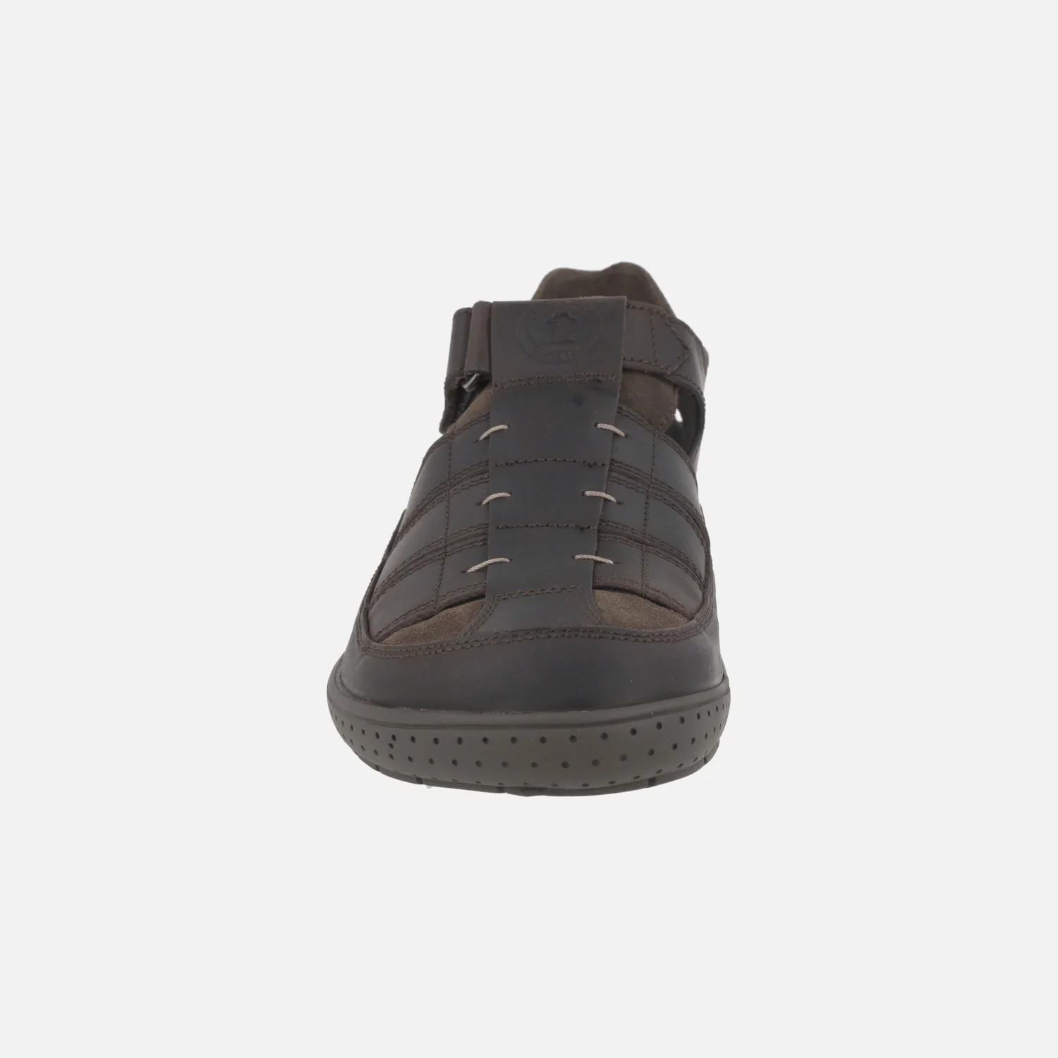 Sandalias cerradas para hombre Panama jack Meridian basics C1 Napa grass marrón. Zapatos semiabiertos para hombre, elaborados en piel engrasada marrón con detalle de piezas en serraje. Cierre de velcro. Interior en combinado de piel y tejido, con plantillas Softsystem (sistema de gran acolchado y amortiguación) y extraíbles. Suela de caucho natural. Made in Spain.