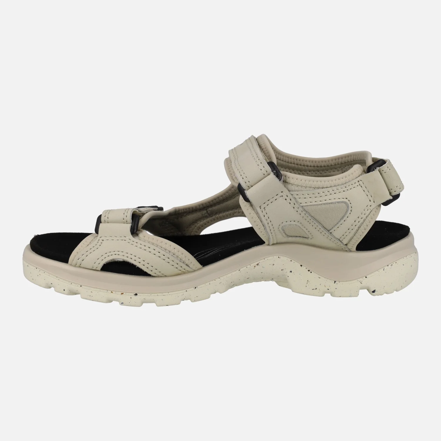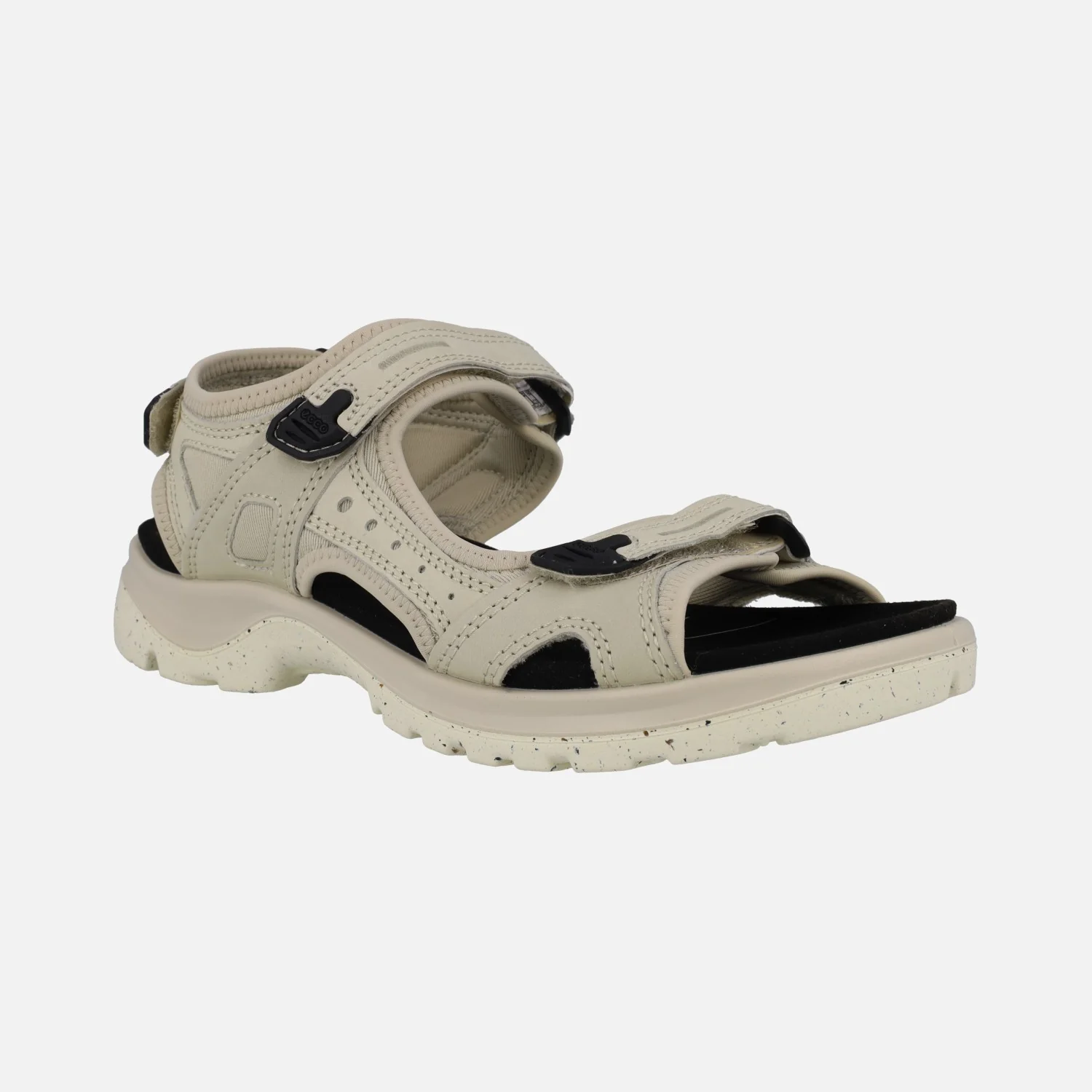 Sandalias para mujer Ecco Offroad Gravel Arch Beige. Sandalias ideales para caminar, muy ligeras y de gran sujeción. Elaboradas en piel nobuck color beige combinado con tejido . Cierre de velcro ajustable. Interior textil. Piso de caucho de gran agarre y tracción, con una altura aproximada de 3,5 cms en la parte trasera.