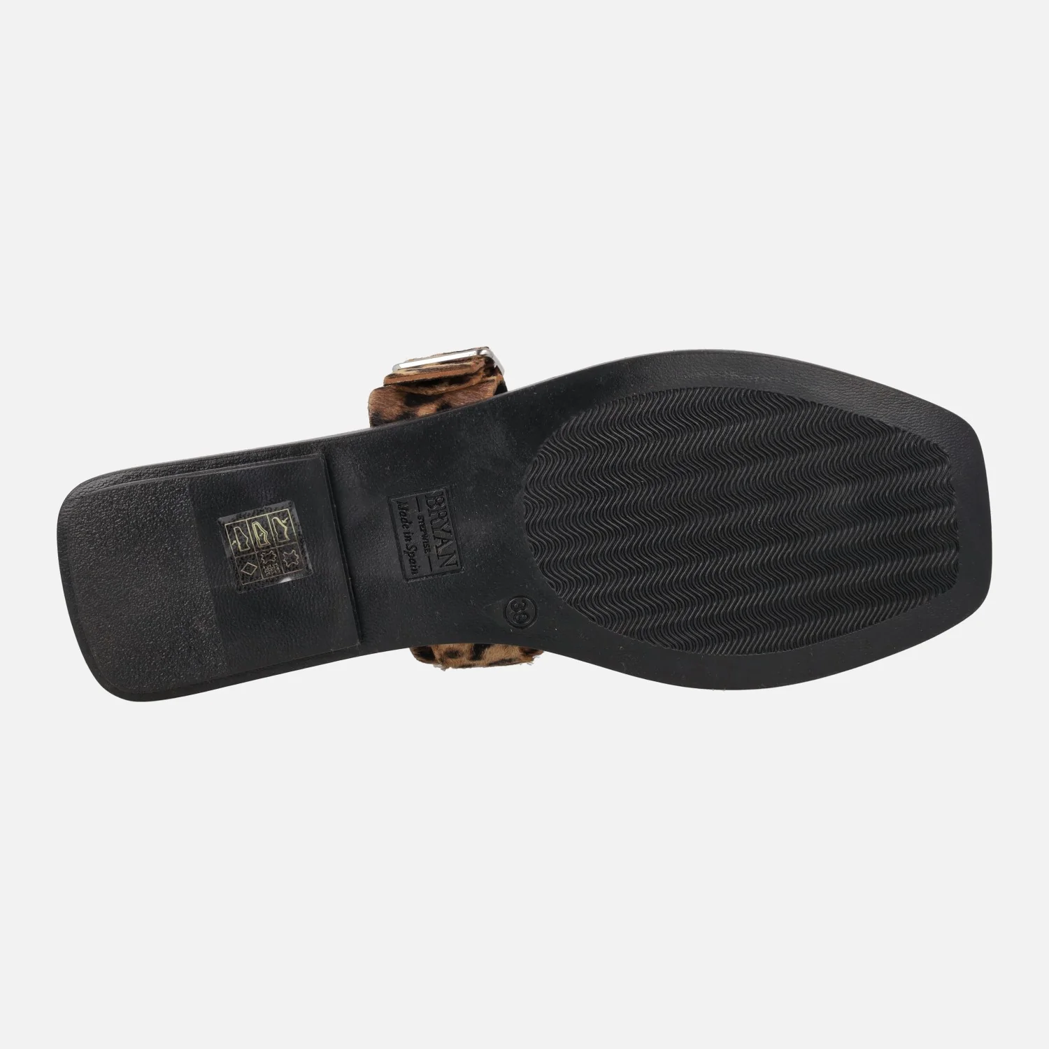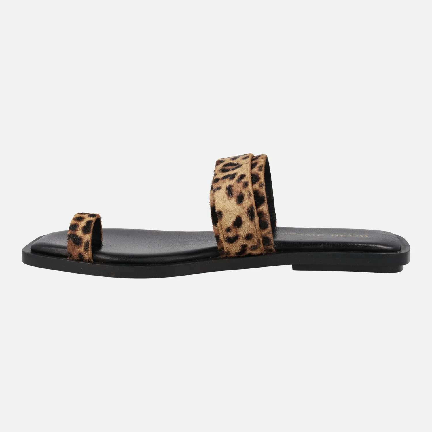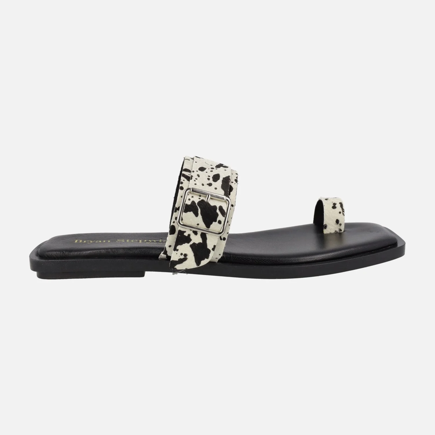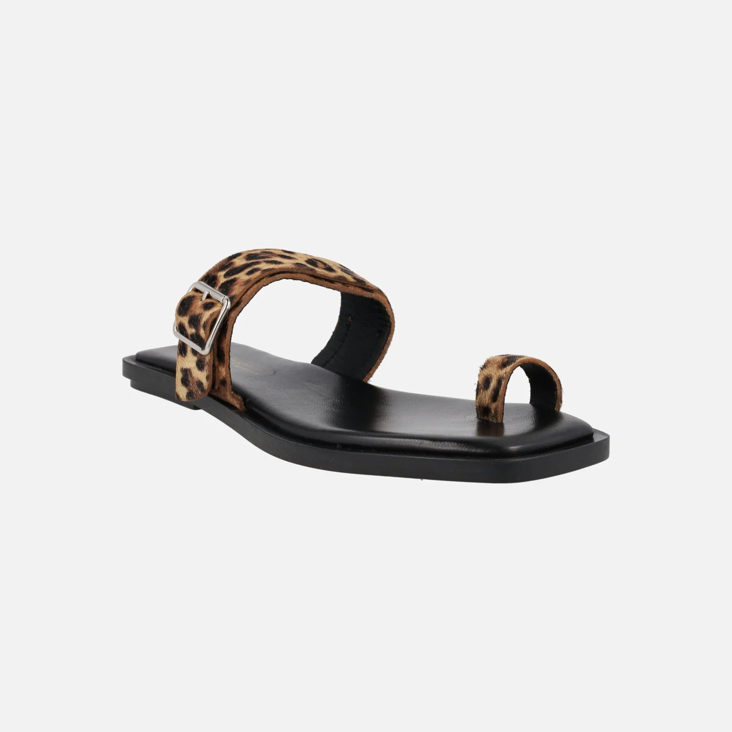 Sandalias planas de dedo de la marca Bryan Stepwise, modelo 7302, disponibles en pelo vaca y pelo leopardo. Sandalias de piel con pieza delantera para dedo y tira al empeine con hebilla. Interiores forrados de piel y tejido. Piso sintético con 1,5 cm de tacón.