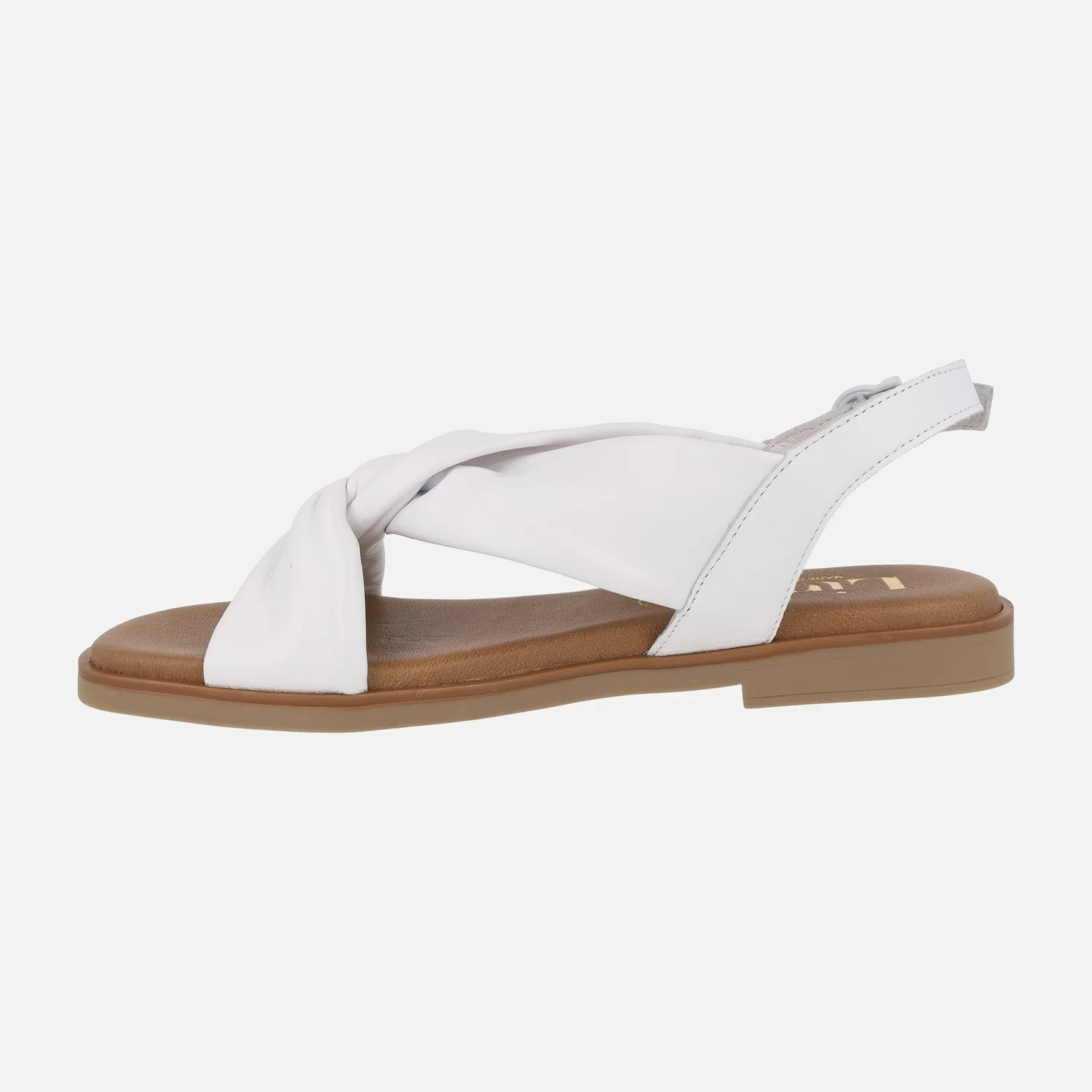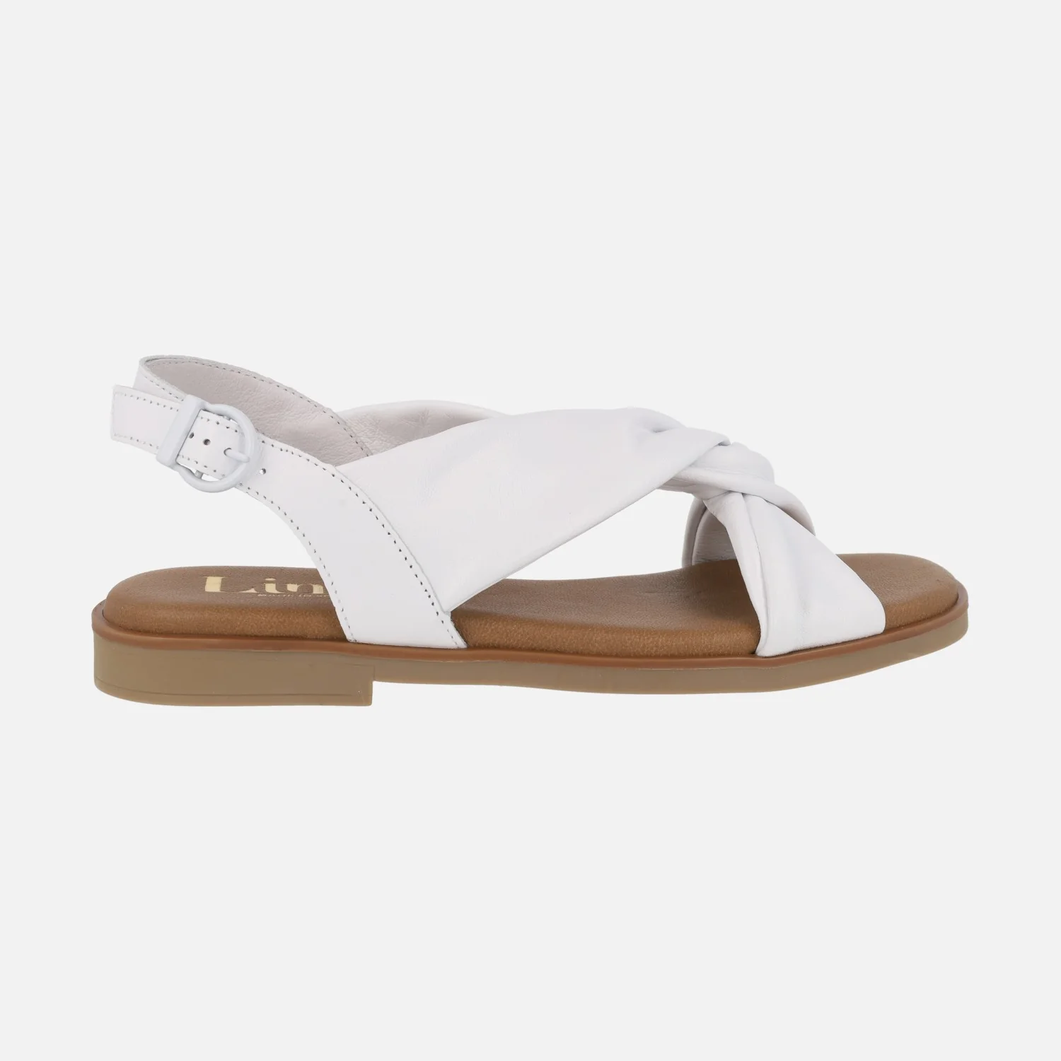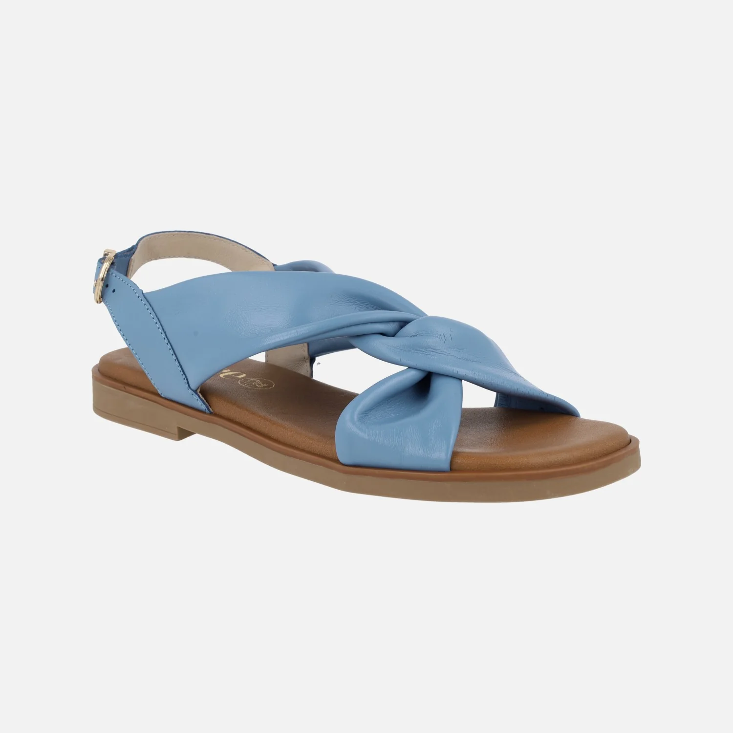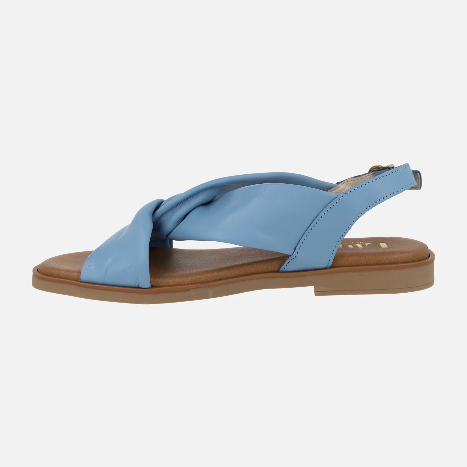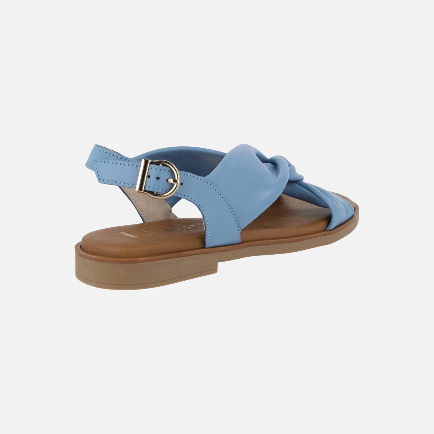 Sandalias planas para mujer de la marca Lince, modelo 42751, disponibles en azul celeste, blanco y negro. Sandalias de piel suave y maleable, formadas por piezas que se entrecruzan en la parte delantera. Forro y planta de piel. Piso de goma, con 2 cms de tacón.