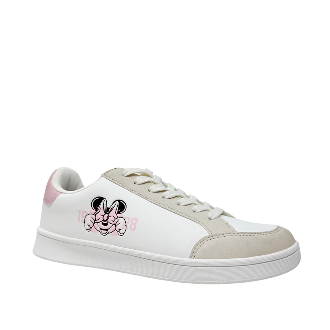Los sneakers Minnie para mujer color blanco mezclan estilo y comodidad. Elaborados en material sintético, son ideales para un look casual con toque divertido.