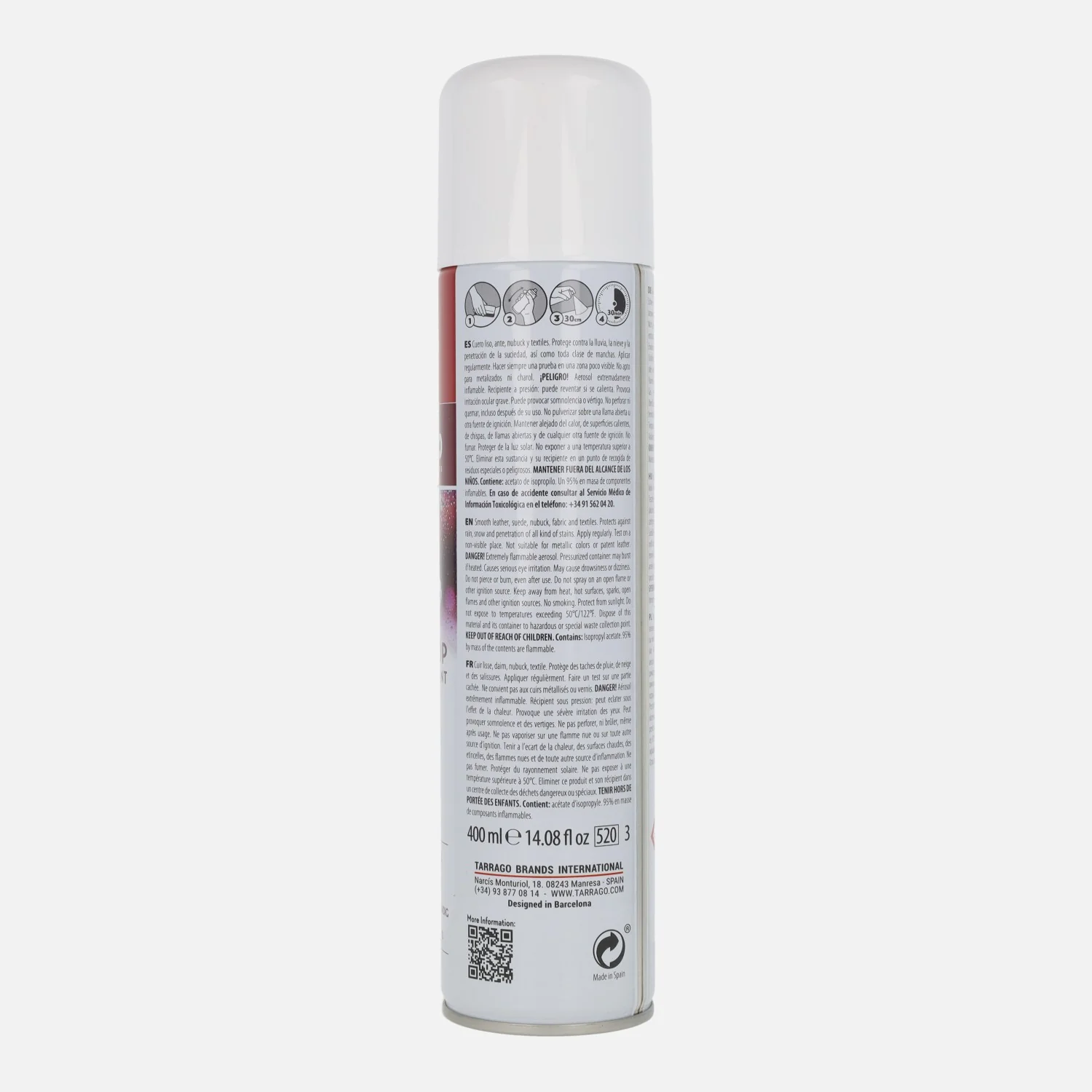 Spray impermeabilizante de 400 ml. Incoloro. Para pieles lisas, ante, nobuck y textil. Aplicar regularmente. (no válido para charol ni lycra).