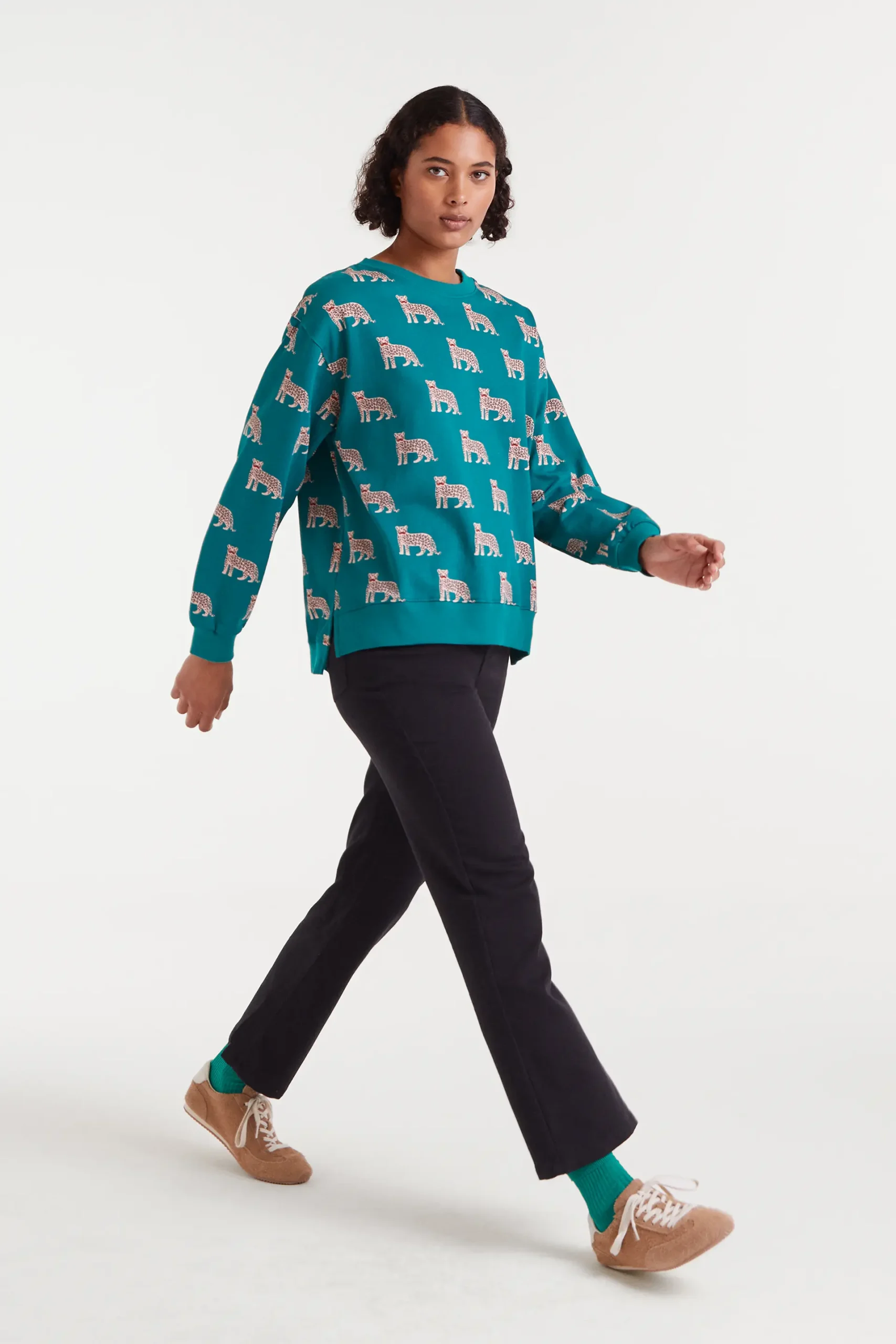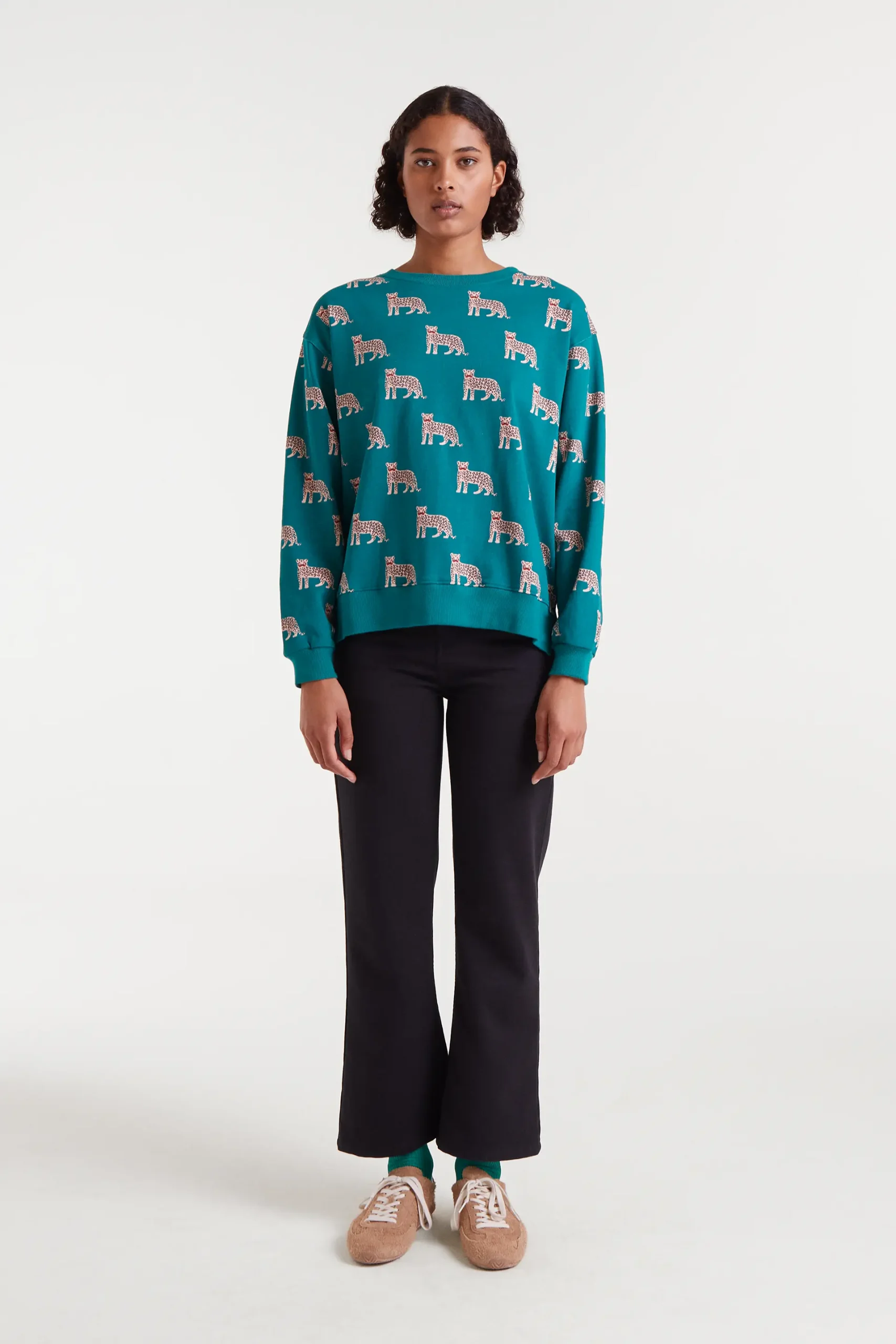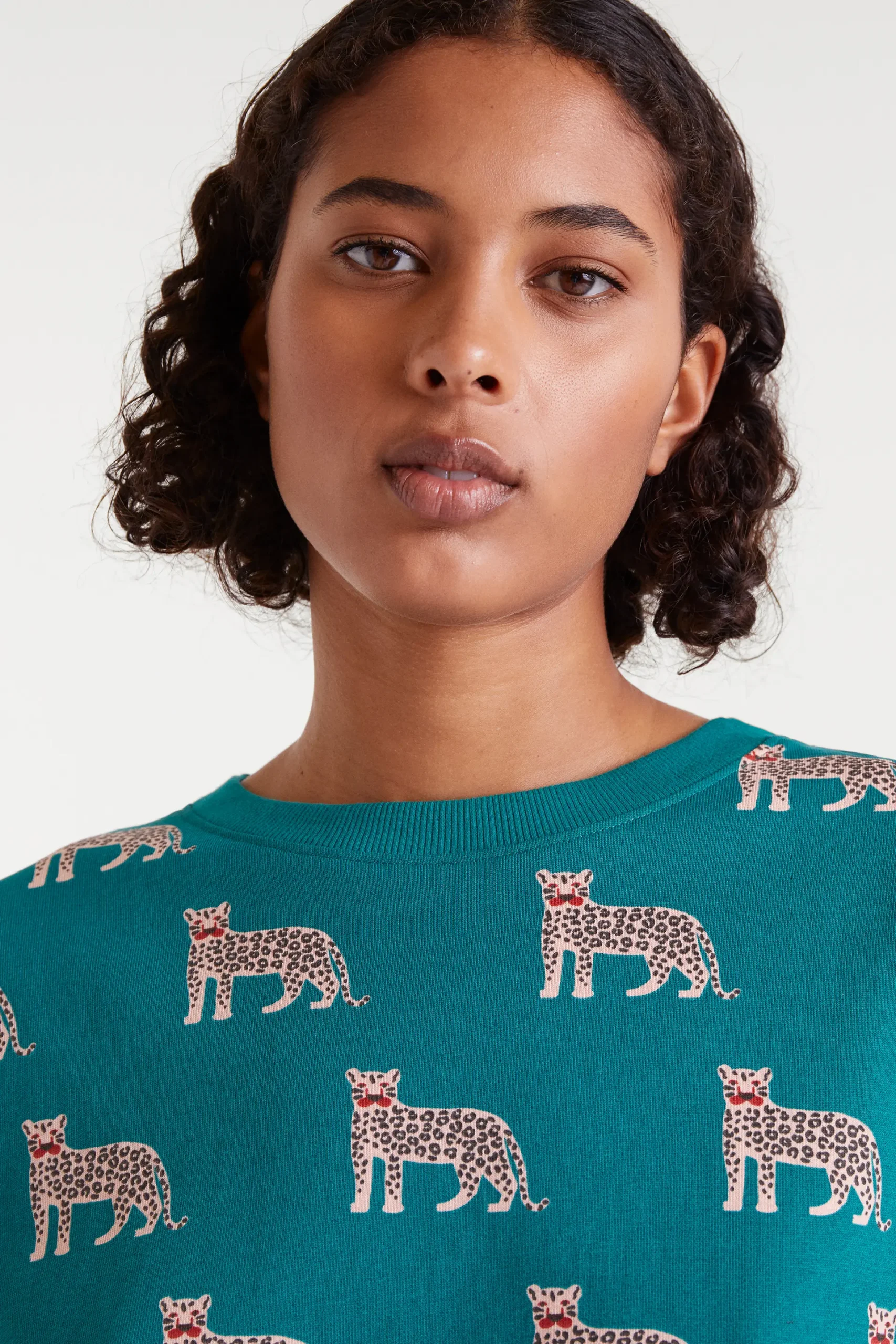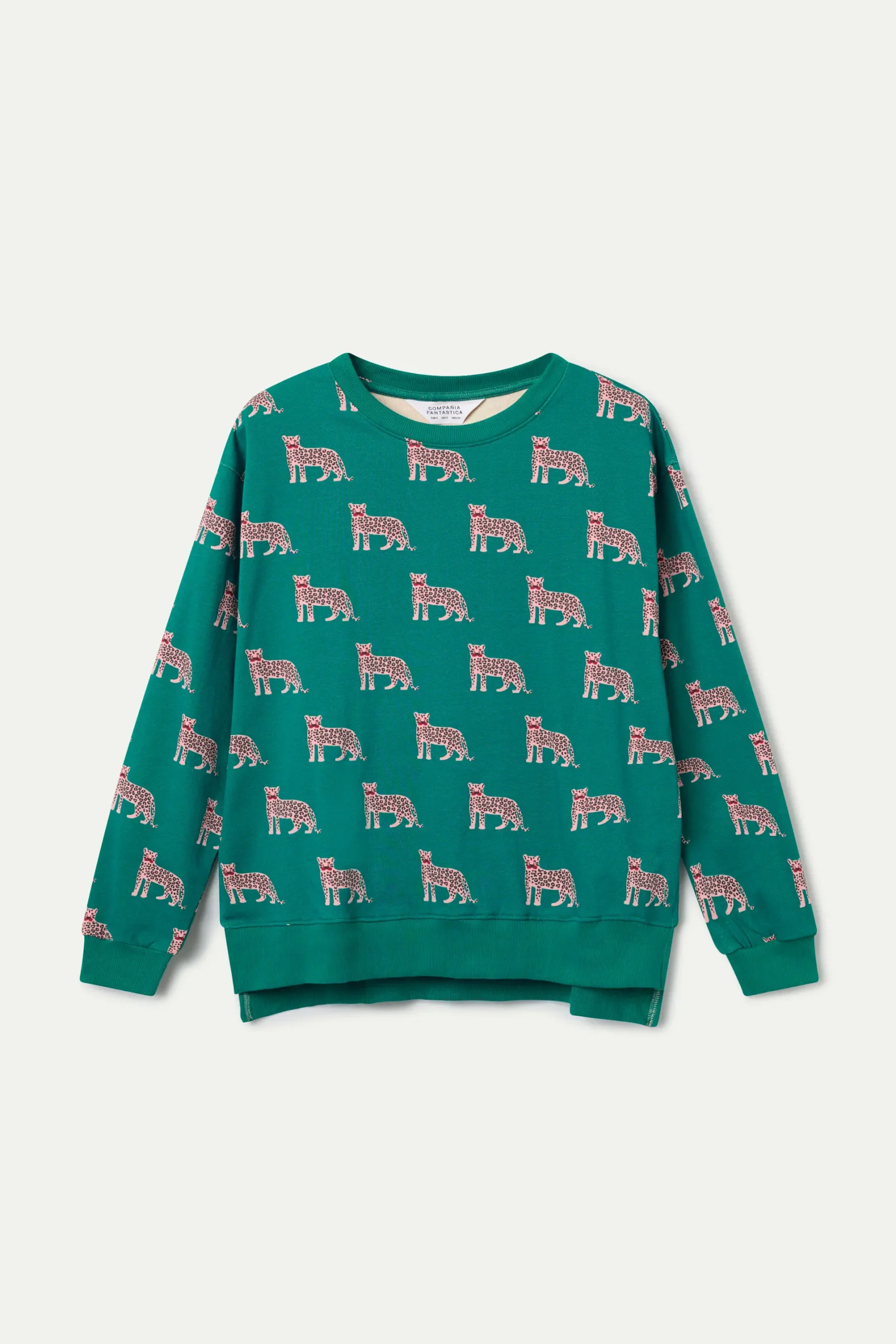 Sudadera con tejido estampado onca jaguar.Cuello redondo y manga larga. Hombro ligeramente caído. Detalle acabado en rib.