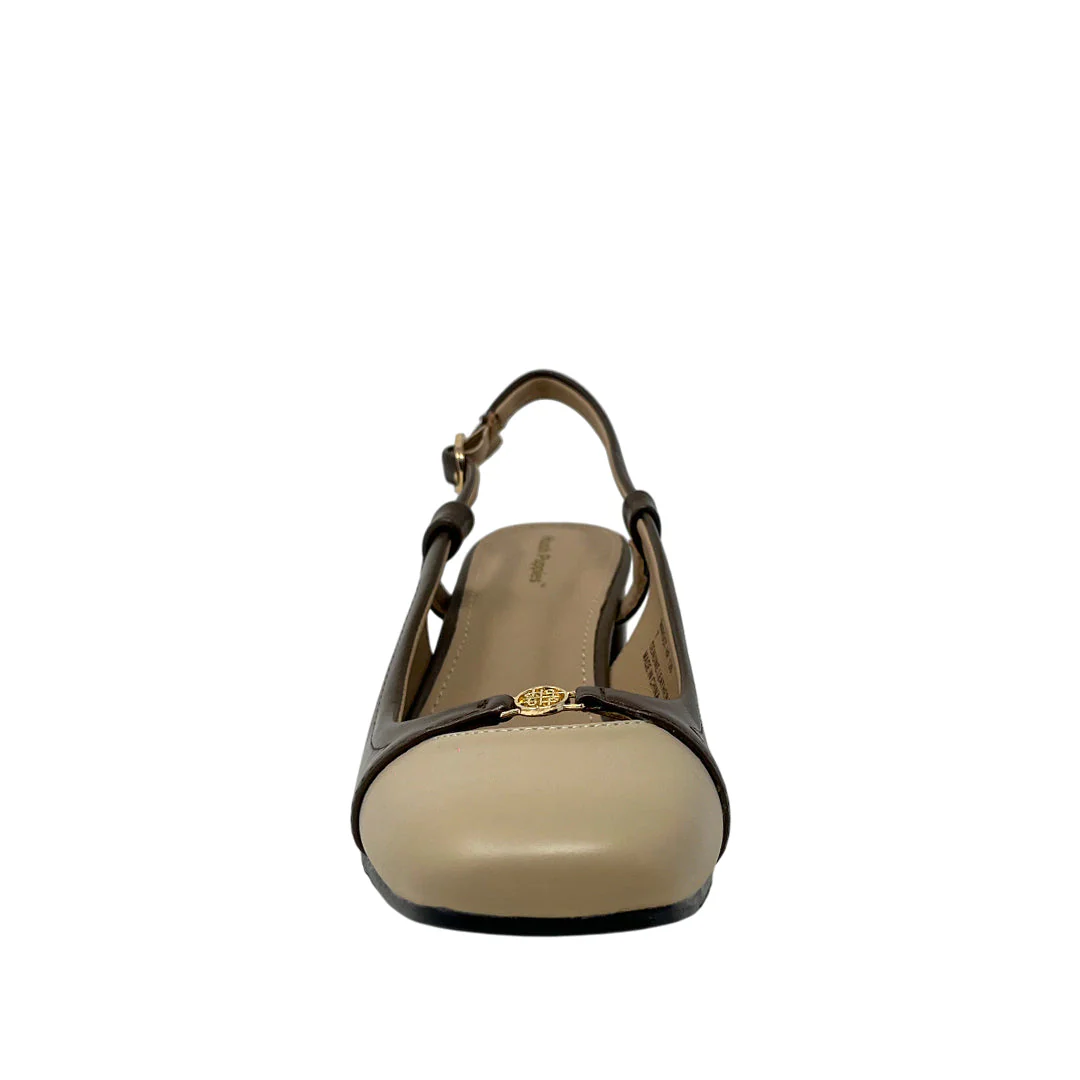Tacones slingback Margot para mujer color café, en cuero. Silueta slingback para ajuste seguro y fresco con durabilidad.