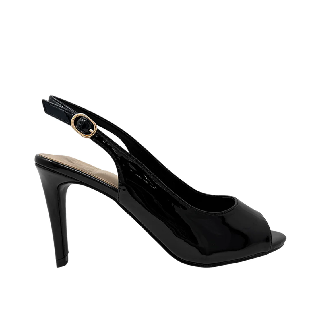 Los zapatos de tacón slingback Verena para mujer en color negro, confeccionados en material sintético de alta calidad, combinan sofisticación y elegancia. Con una altura de tacón de 9 cm, realzan la silueta y aportan un toque de glamour a cualquier outfit. Su diseño slingback garantiza un ajuste seguro y comodidad durante todo el día o la noche.