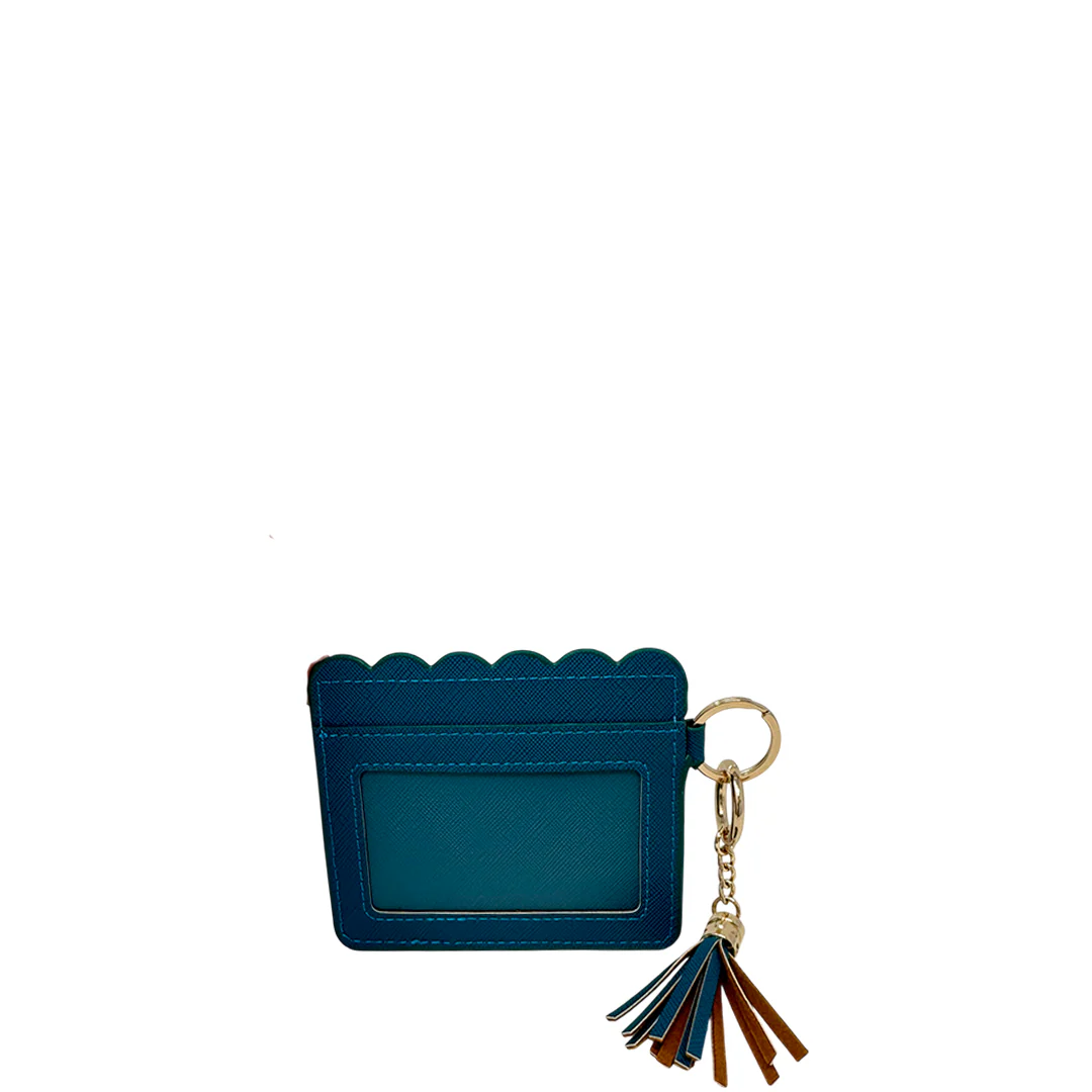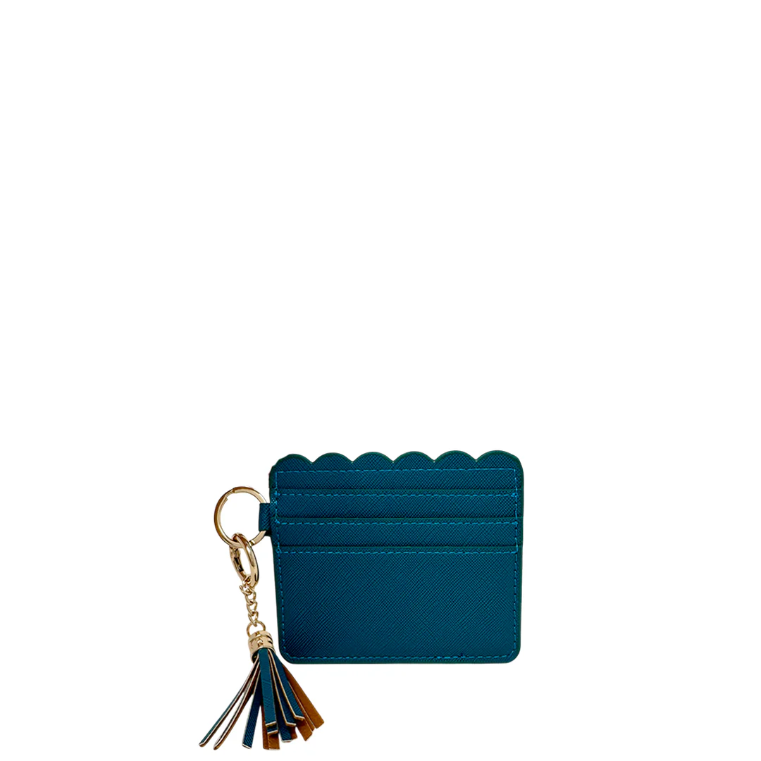 El tarjetero Andy, color azul, está hecho en material sintético resistente. Su perfil delgado cabe en bolsillos y minibolsos.