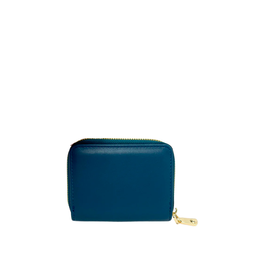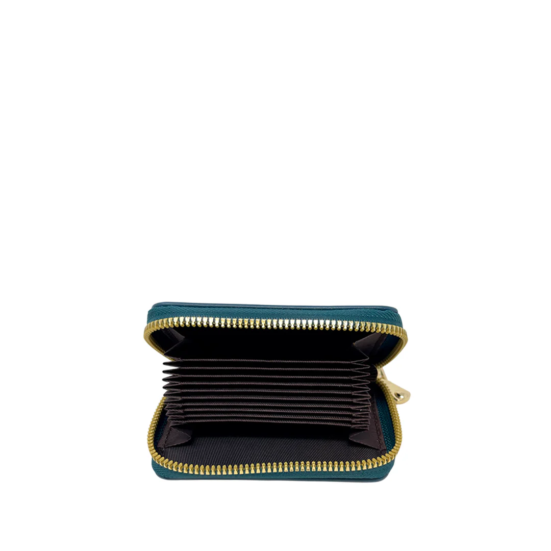 El tarjetero Gloria, color aqua, ofrece organización en un formato compacto de material sintético. Ideal para llevar lo esencial.