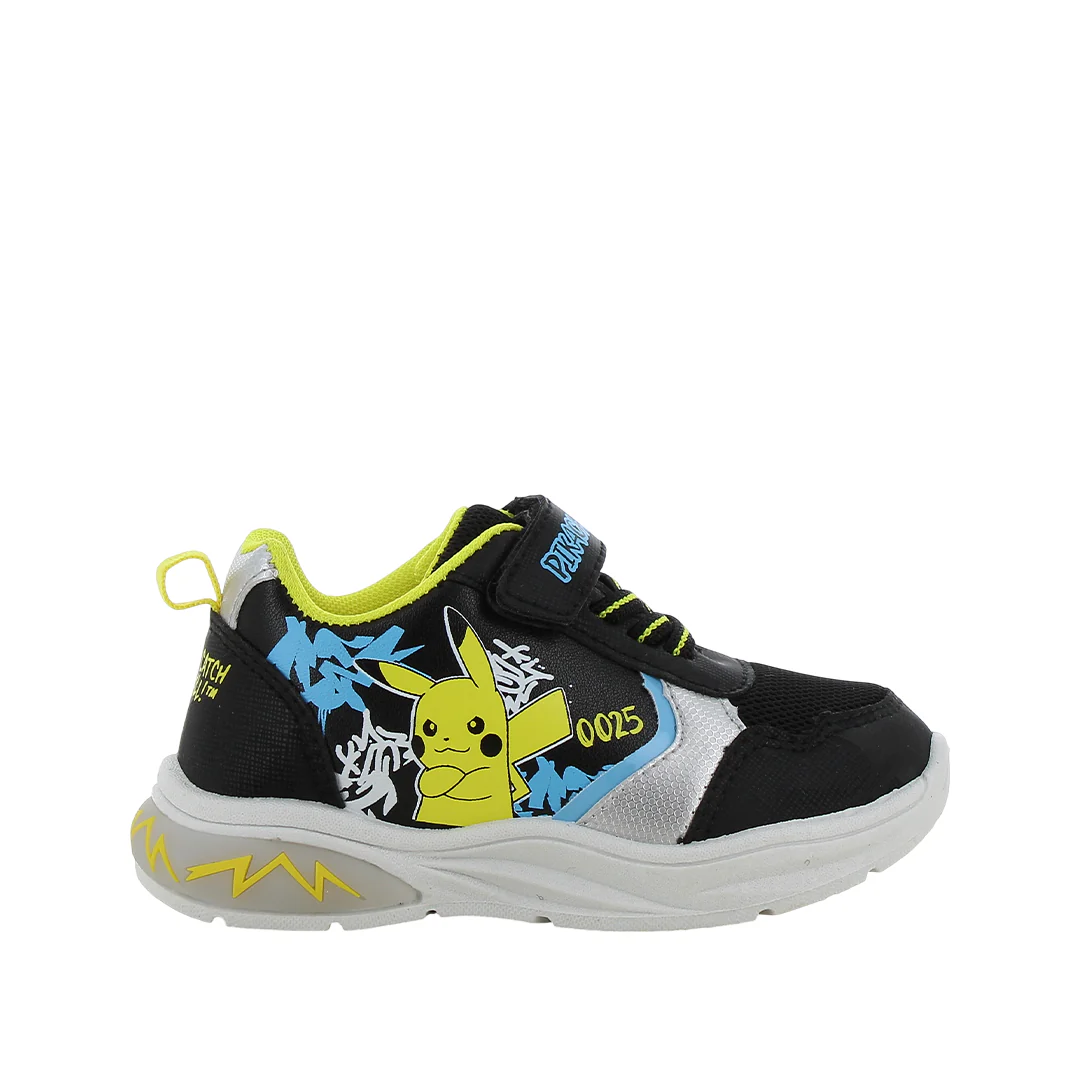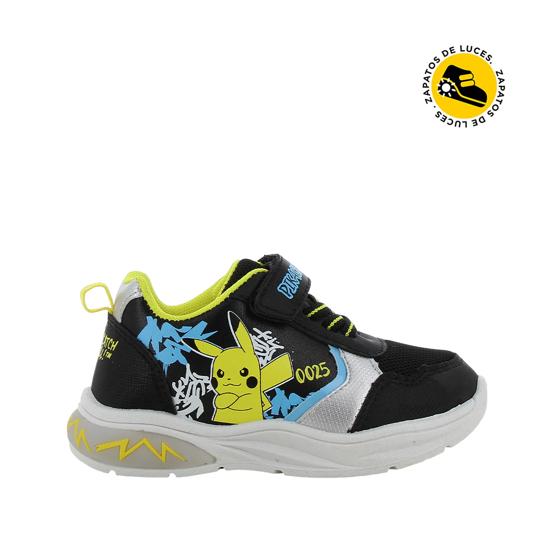 Tennis con luces Pikachu para niño color negro, material sintético. Propuesta con iluminación integrada y estilo llamativo para acompañar sus actividades cotidianas.