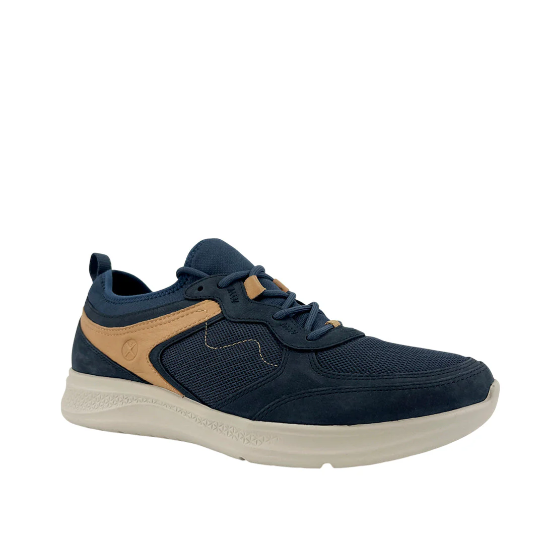 Los Tennis Elevate Hybrid Lace para hombre, en color navy, combinan estilo y tecnología. Incorporan The Body Shoe™ con forro antimicrobiano y absorbente de humedad, manteniendo tus pies frescos y sin olores. Su plantilla Bounce™ y la talonera 3D brindan amortiguación superior y confort duradero en cada paso.